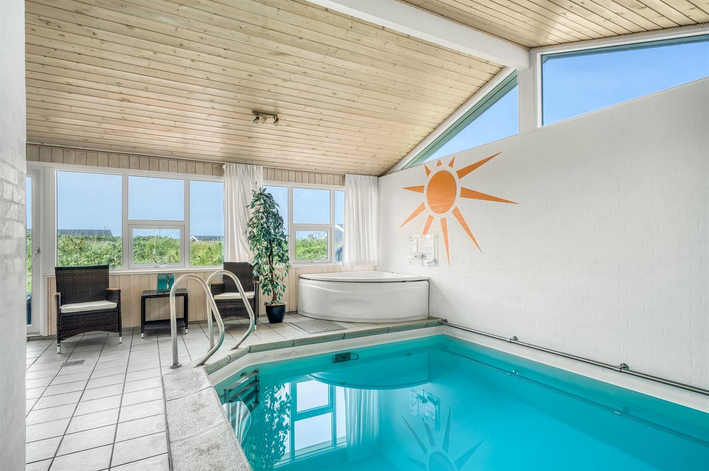 I den indendørs swimmingpool er der mulighed for leg og hyggeligt samvær. Swimmingpoolen måler op til 3,5 m i bredden, 5 m i længden og den er op til 1,5 m dyb. Vandet er mellem 24 og 28° C varmt. Swimmingpoolen har modstrømsanlæg. Der er gulvvarme i swimmingpoolområdet.