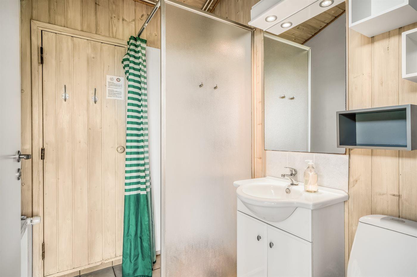 Der er 2 badeværelser med bruseniche og 2 toiletter I saunaen er der mulighed for afslapning.