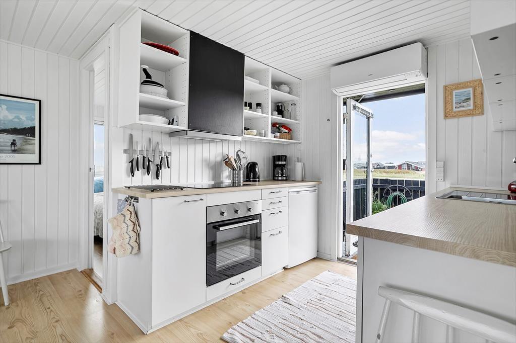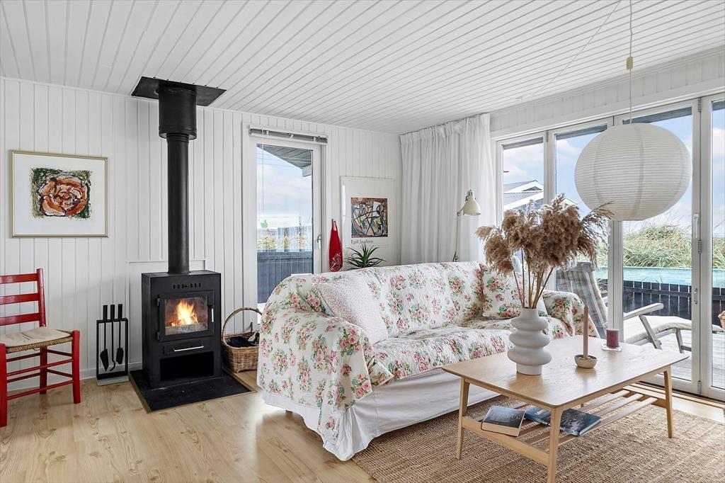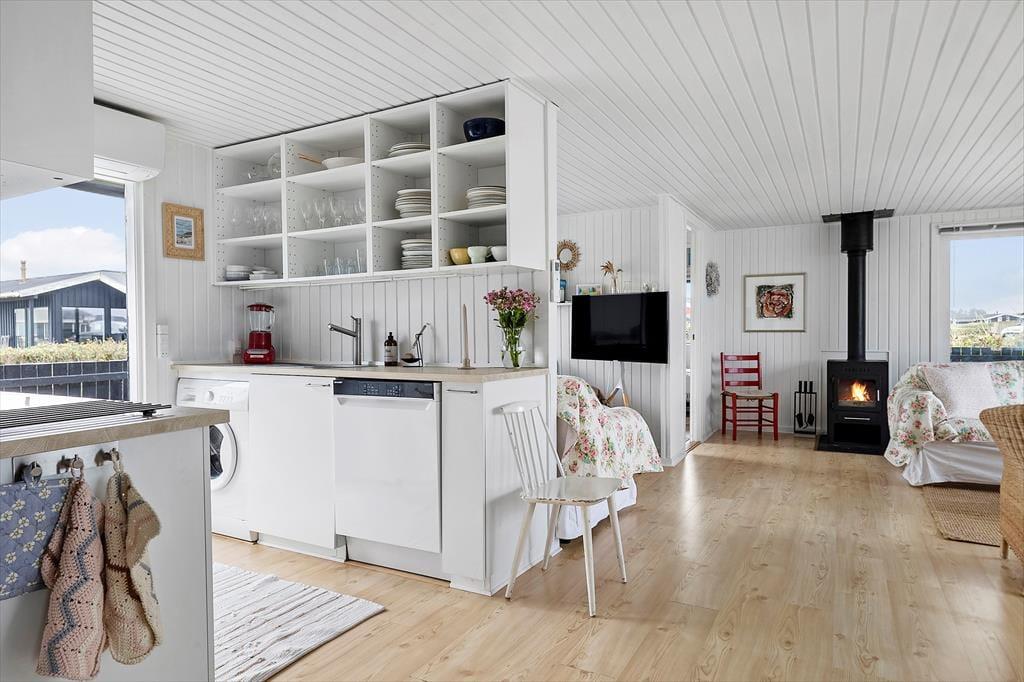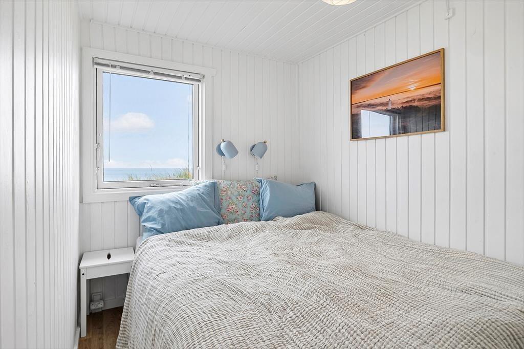 Langs med hele vestkysten må det være svært at finde en havudsigt, der overgår denne. Det imponerende syn kan nydes fra alle rum – og ikke mindst fra opholdsrummet, hvor flere store vinduer vender ud mod vandet. Udover det flotte vue giver det naturligvis også et dejligt lysindfald, som bidrager til den lette og indbydende atmosfære. I opholdsrummet er der for øvrigt brændeovn, og det åbne køkken er udstyret med nye hårde hvidevarer. Planløsningen består derudover af en entré, et badeværelse og tre soveværelser med i alt 5 sengepladser. Alt i alt er indretningen både hyggelig og praktisk, så ferielivet kommer til at foregå i gode rammer.
