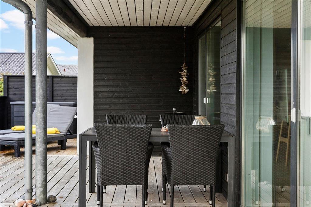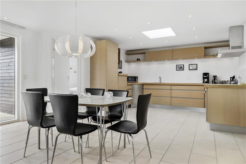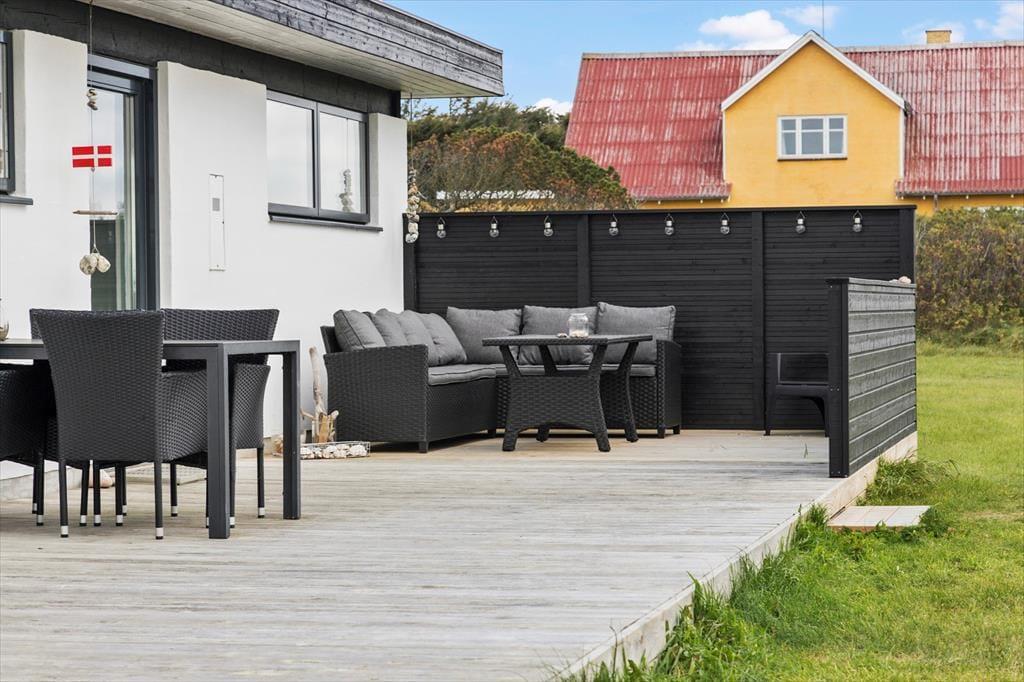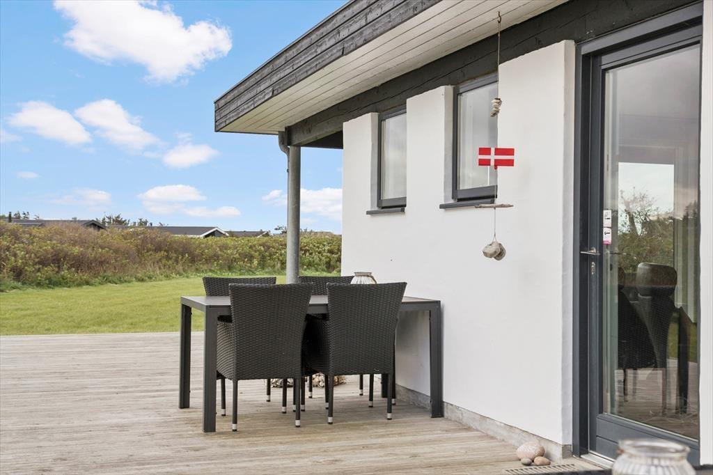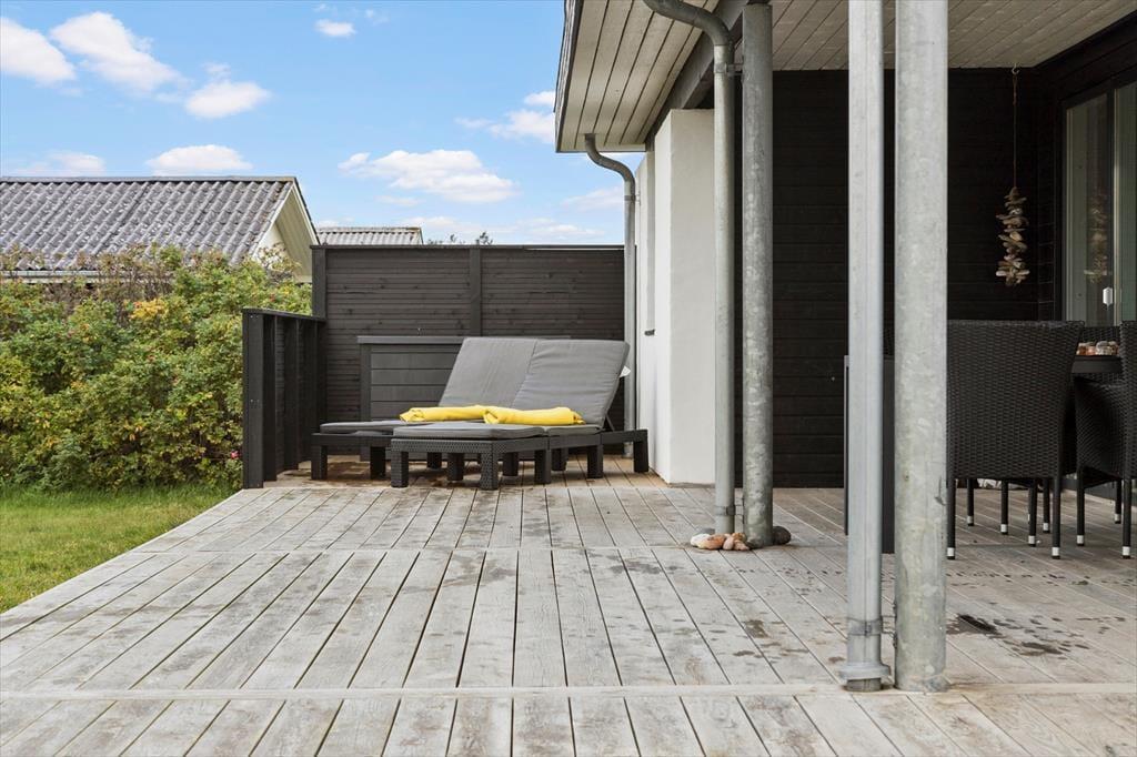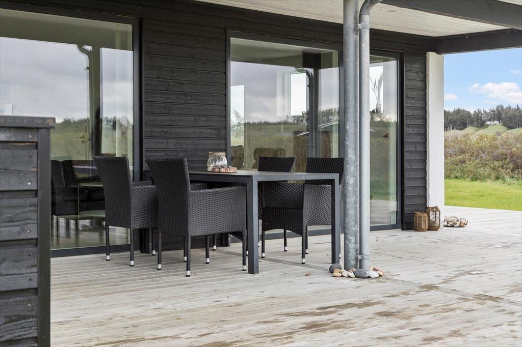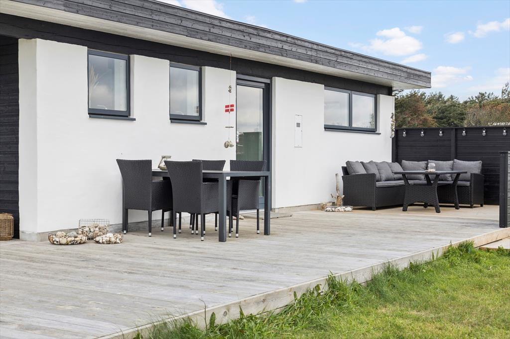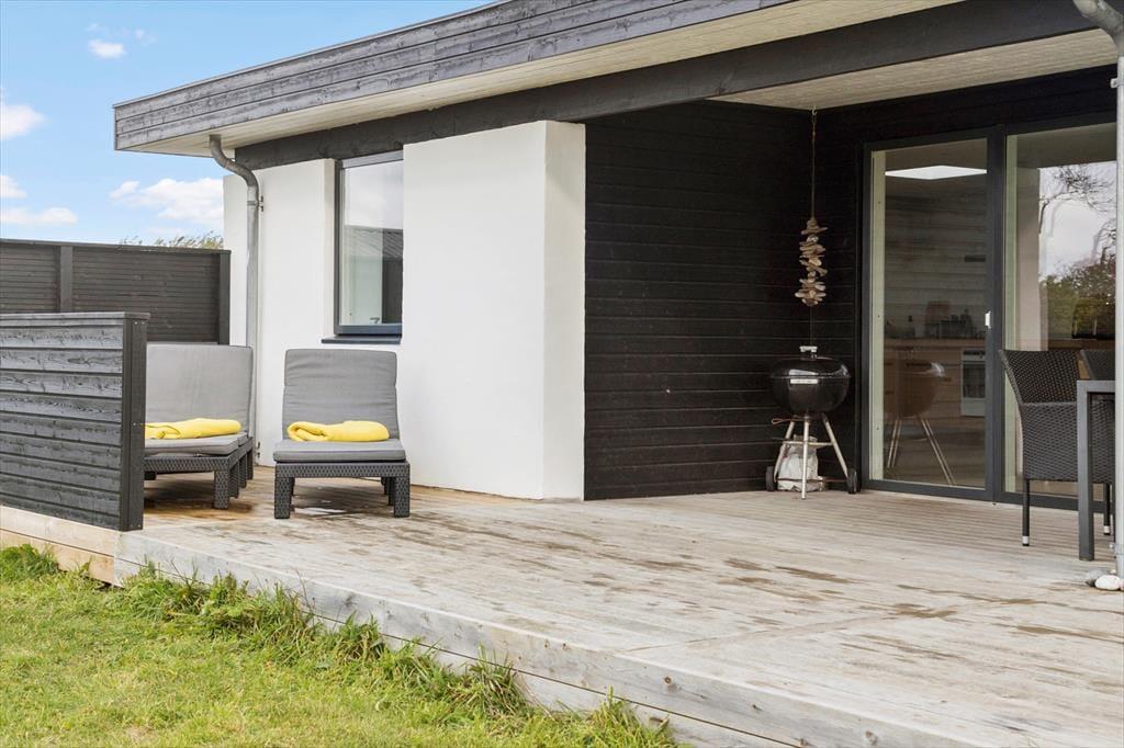 Også udendørsarealerne er velfungerende og med til at fuldende billedet af et skønt sommerhus i høj kvalitet. Den store naturgrund er velplejet, og fra terrasserne har man en flot udsigt over landskabet. Med gode havemøbler, liggestole og en stor grill til rådighed er der lagt op til mange hyggelige og forhåbentligt solrige stunder.