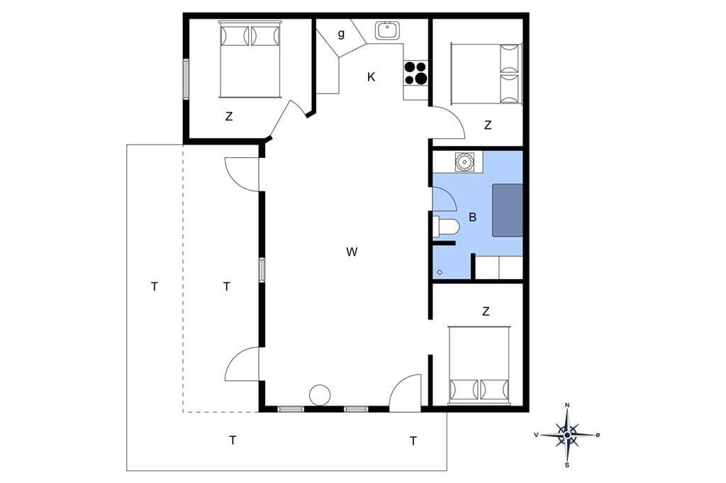Sommerhuset har nogle år på bagen, men har for nyligt gennemgået en stor og omfattende renovering; i dag står kun de oprindelige ydermure tilbage, mens alt indvendigt materiale er nyt og lever op til vore dages høje kvalitetskrav. Sommerhuset kan rumme op til seks overnattende gæster, de tre værelser har alle dobbeltsenge, så det er muligt for både familier og par at holde ferie i dette hus. Køkken, spiseafdeling og stue er samlet i ét stort og åbent rum, så alle kan være sammen, selvom man laver forskellige ting. Det store rum har en hyggelig og varm indretning med flotte møbler og brændeovn, og de store gulv til loft vinduer giver både en god udsigt til haven og lader samtidigt en masse af det fantastiske nordjyske lys skinne ind. Har man haft en lang dag ved stranden eller på tur rundt i området, er det skønt at ligge lidt i spabadet på det flotte badeværelse og lade kroppen få ny energi. Derudover har sommerhuset alt i hårde hvidevarer og andet moderne udstyr som kabel-tv og trådløst internet, så stort set alle behov kan opfyldes under et ophold i disse dejlige omgivelser.
