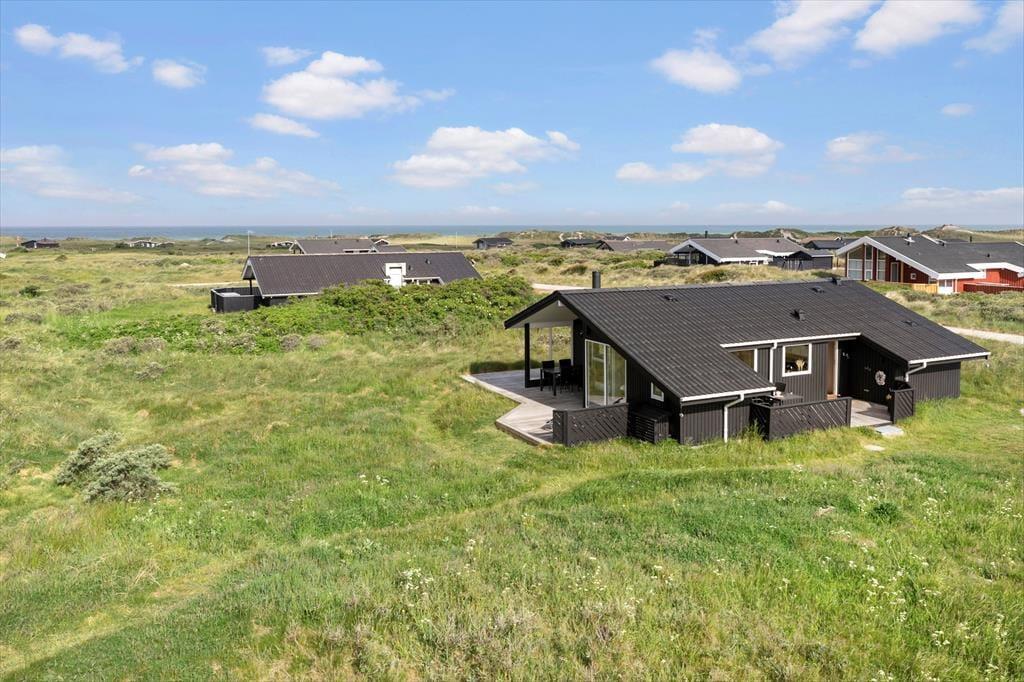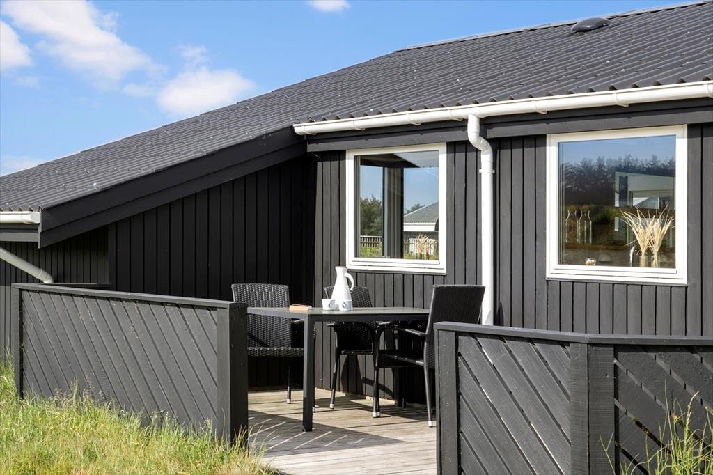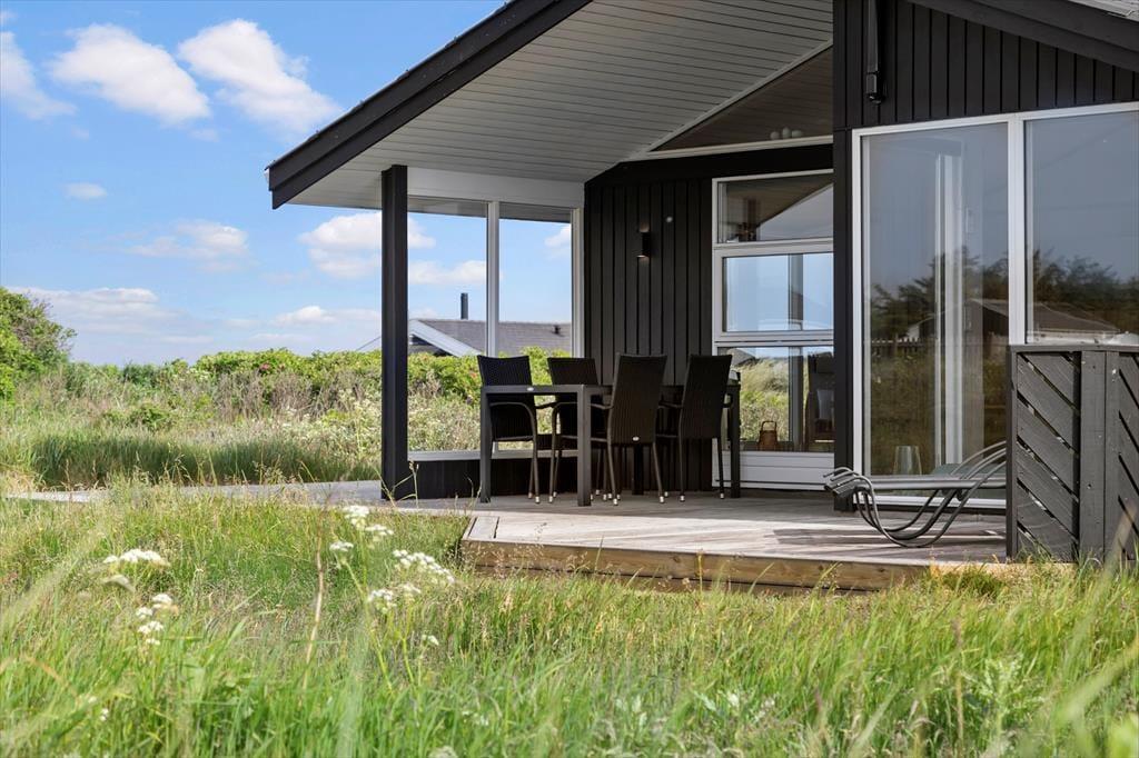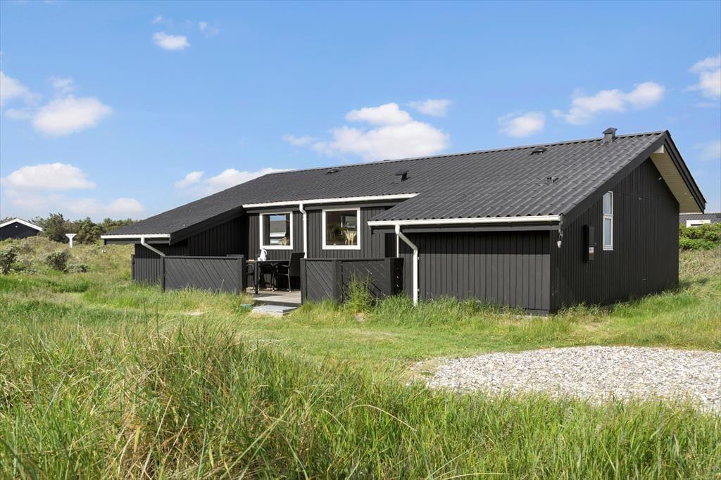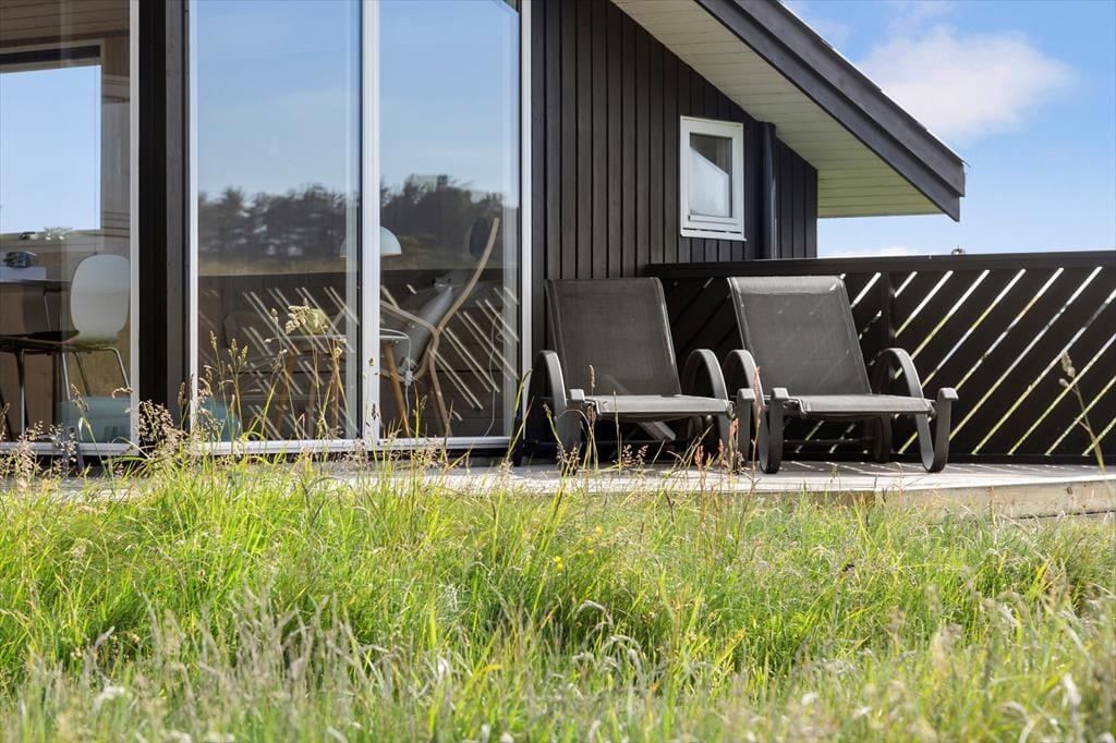 Fra den store naturgrund kan I se ud over det smukke landskab og endda nyde synet af Vesterhavet, der breder sig få hundrede meter væk. Den strandnære beliggenhed betyder, at I har frisk havluft i næseborene, når I leger i græsset eller slapper af på husets terrasser, hvoraf den ene er delvist overdækket. I har selvfølgelig havemøbler og liggestole til rådighed, og der er også en grill, så I kan afslutte dagen med et sommerligt måltid under åben himmel.