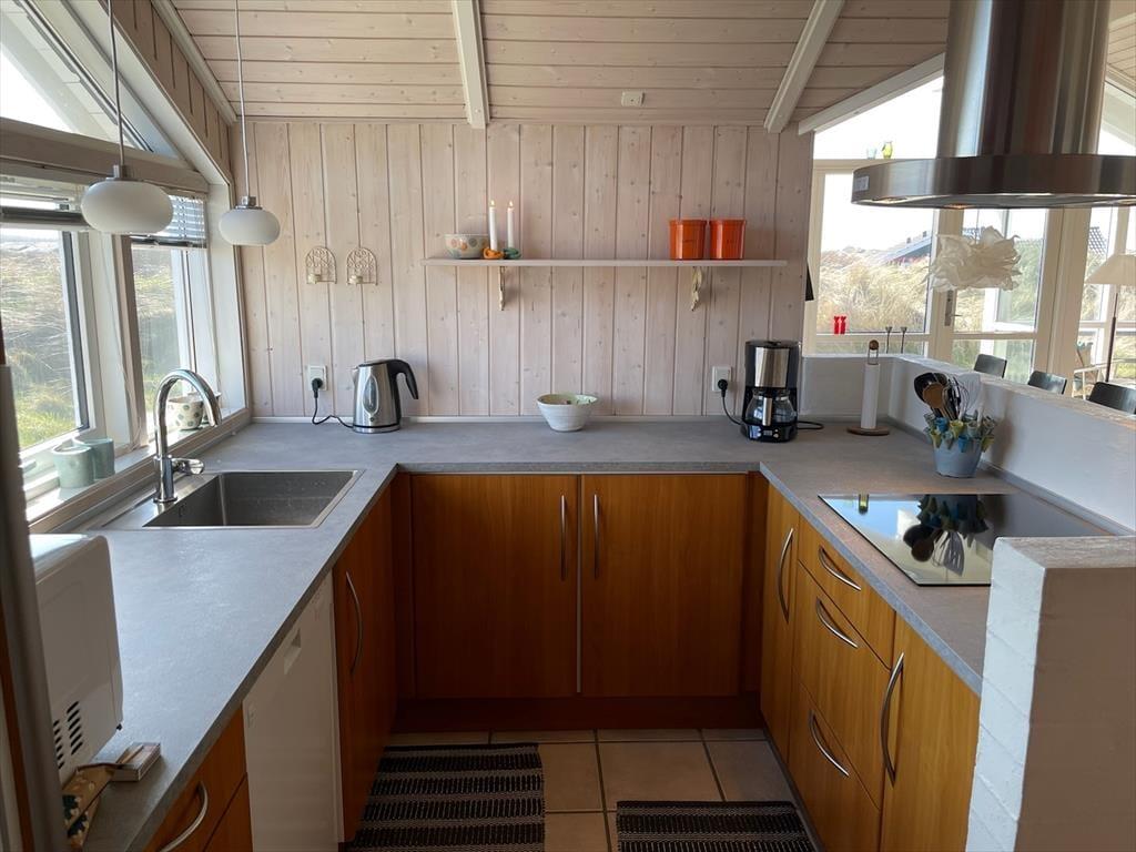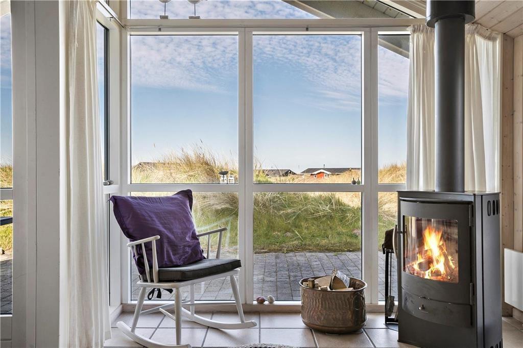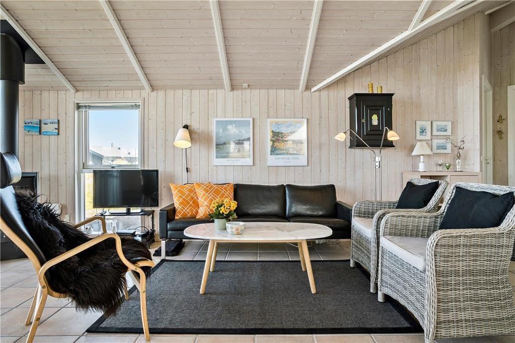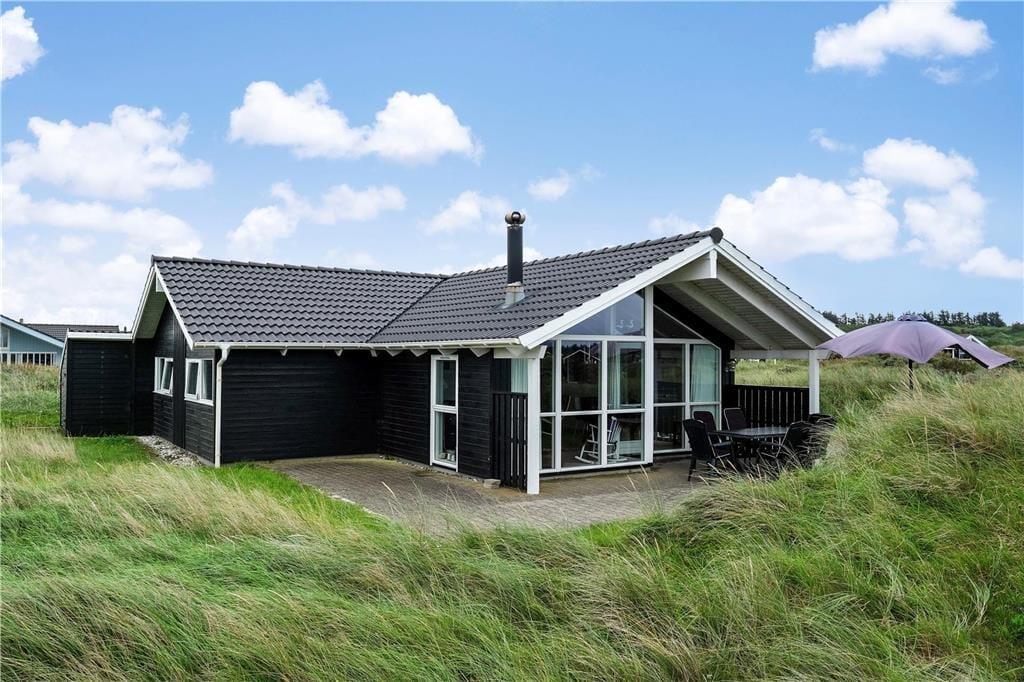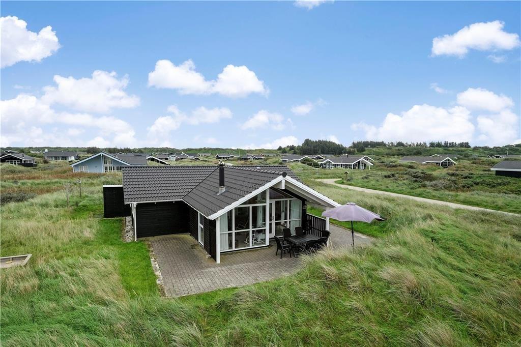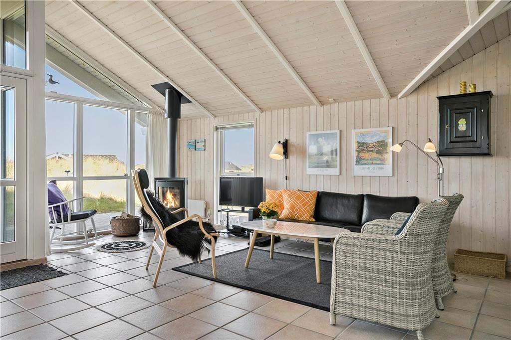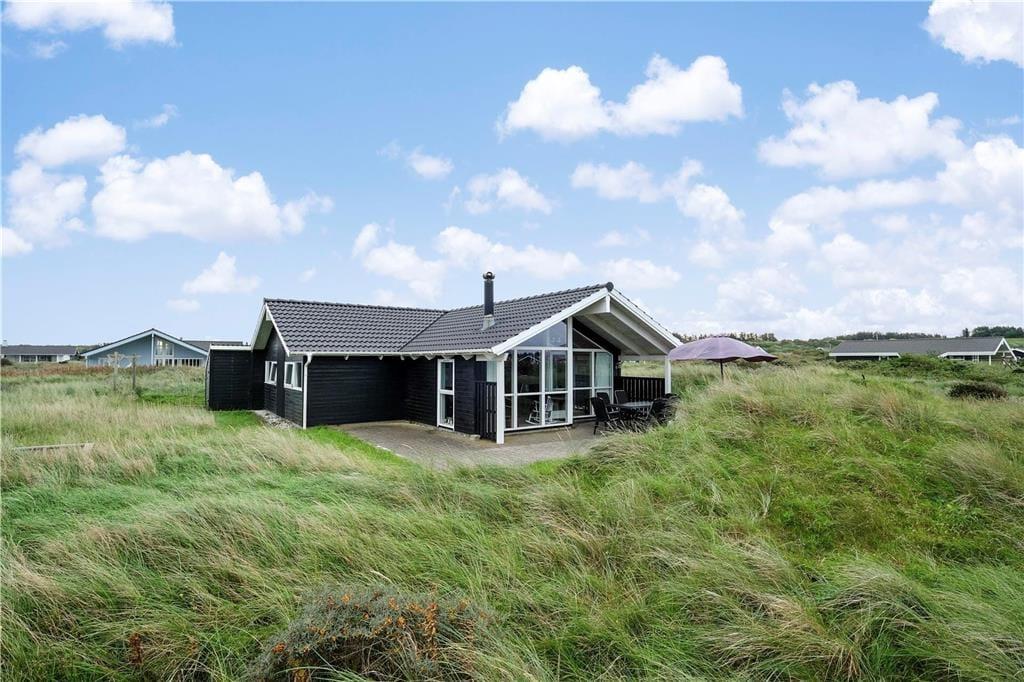 Dette flotte hus ligger i Nørlevs allerbedste område, hvor du får hav, klitter, lyng og noget af Danmarks smukkeste natur lige udenfor døren. Sid på den overdækkede terrasse og nyd solen mens du spejder ud over området, hvor du også har kig til Vesterhavet.