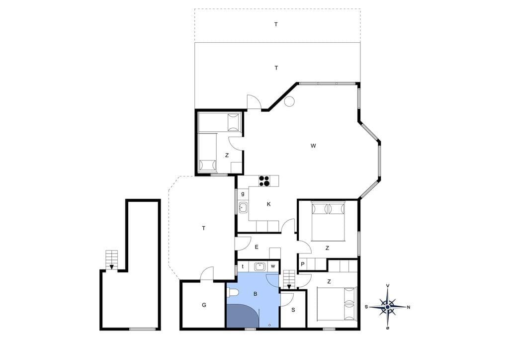 Sommerhuset ligger på en stor kuperet naturgrund. Der er flere terrasser rundt om huset så man enten kan krybe i skyggen eller nyde solen i fulde drag.