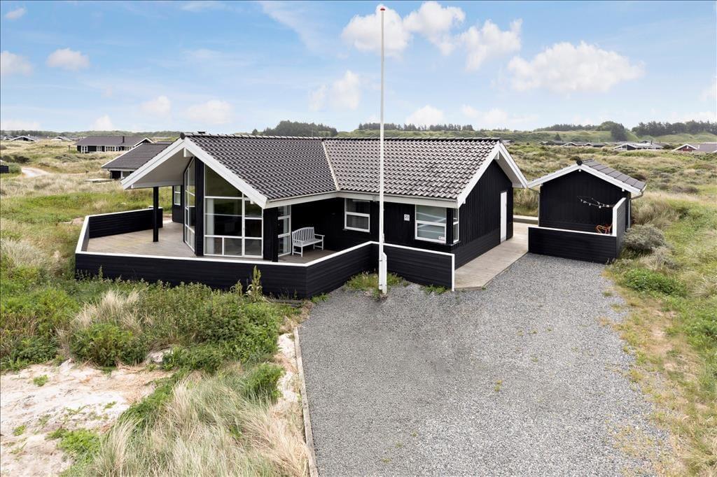 Sommerhusets to terrasser ligger godt placeret, så I nemt kan finde jer en dejlig opholdsplads med de rette mængder af sol – og herfra kan I endda nyde et smukt kig til havet. Begge terrasser er omkranset af plankeværk, og der er selvfølgelig havemøbler, liggestole og grill til rådighed, så I rigtigt kan nyde udelivet. Til de yngste feriegæster står der også et gyngestativ på den 1471 m2 store naturgrund. Ellers er grunden holdt helt enkelt og naturligt, så den nærmest smelter sammen med de flotte omgivelser. Som en ekstra bekvemmelighed er der mulighed for opladning af elbil direkte ved huset.