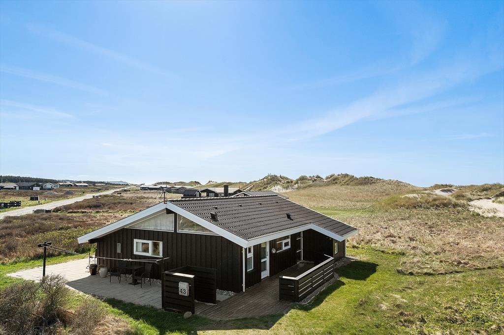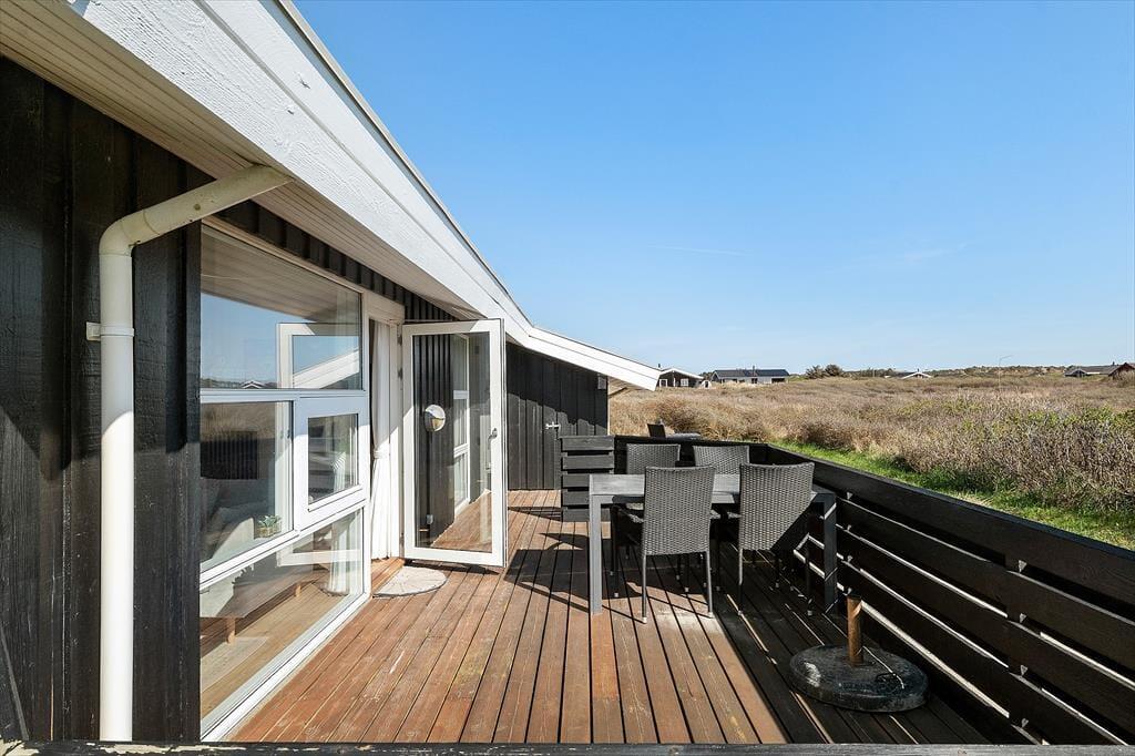 Ude i det fri har I to terrasser at vælge imellem, som begge byder på en dejlig udsigt og en fredsommelig atmosfære. Grunden er kæmpestor og holdt som naturgrund, så det er marehalm og andre vilde kystplanter, der breder sig på den anden side af terrassernes plankeværk. Vil I grille, er der mulighed for det, og ellers kan I bare læne jer tilbage i havemøblerne og nyde driverlivet.