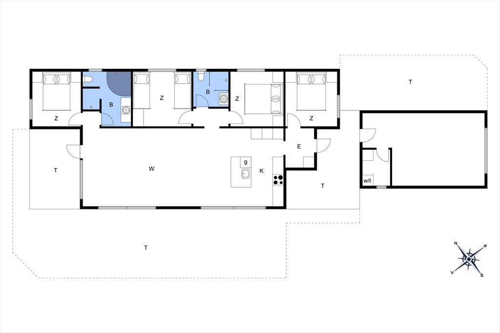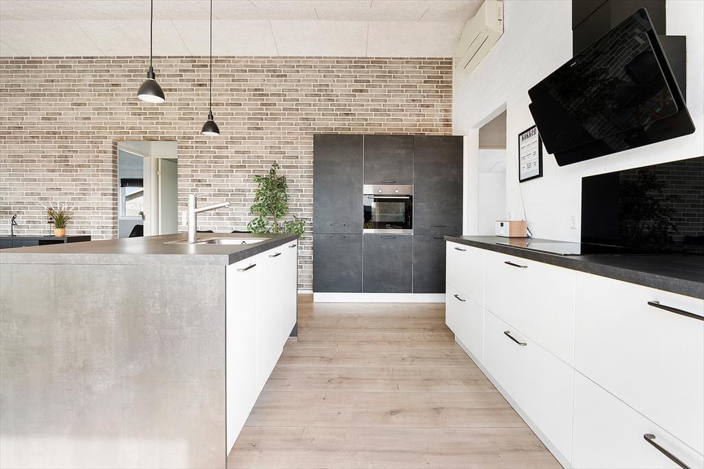 Sommerhuset, som er opført i 2019, står flot og skarpt med mørk facade, som store brydes af store vinduespartier. Det giver et glimrende lysindfald – og samtidig giver det jer en uhindret udsigt til de grønne omgivelser, når I hygger jer inden døre. De sociale hyggestunder kan blandt andet foregå i stuen, som på elegant vis er forenet med et veludstyret køkken. Det store opholdsrum er stilfuldt indrettet med moderne møbler, og planløsningens fire soveværelser og to badeværelser er holdt i samme flotte stil. Det ene badeværelse er udstyret med hjørnespa, så I kan forkæle jer selv med en wellness-aften, når I kommer hjem efter dagens ferieeventyr.