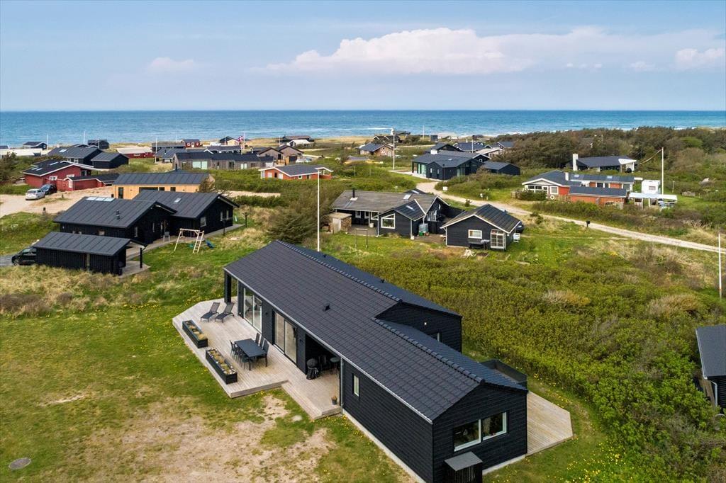 Alene beliggenheden er grund nok til at vælge dette sommerhus, for det ligger nemlig på en lukket vej mindre end 300 meter fra stranden. Den korte afstand til Vesterhavet er bestemt ikke eneste fordel ved huset, for det er en moderne og luksuriøs feriebolig med spabad, billardbord i aktivitetsrummet og mange andre lækre detaljer.