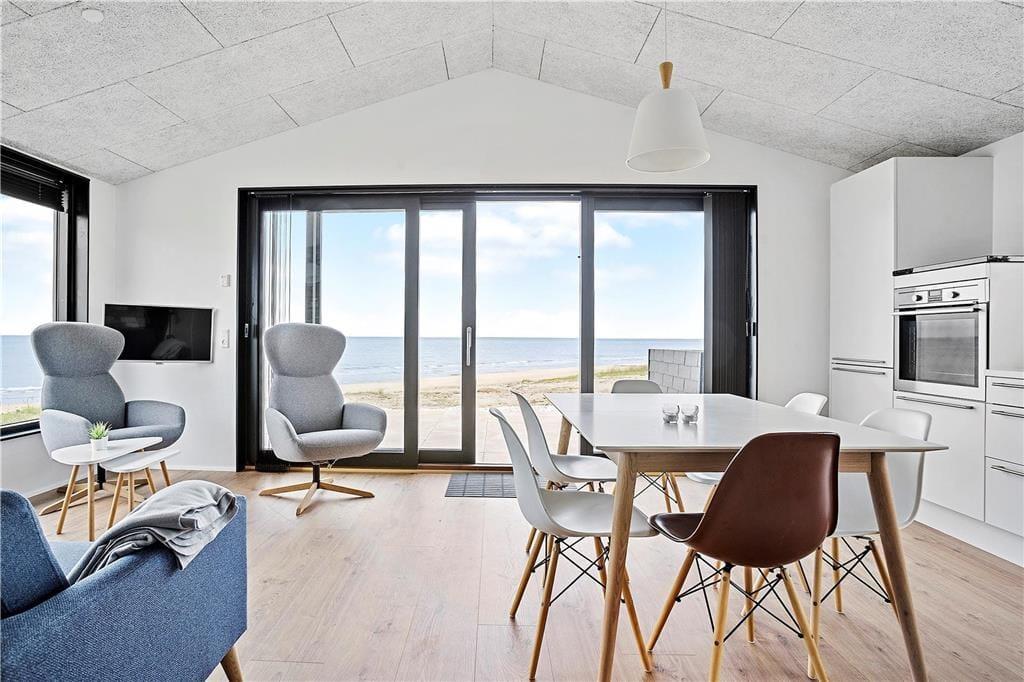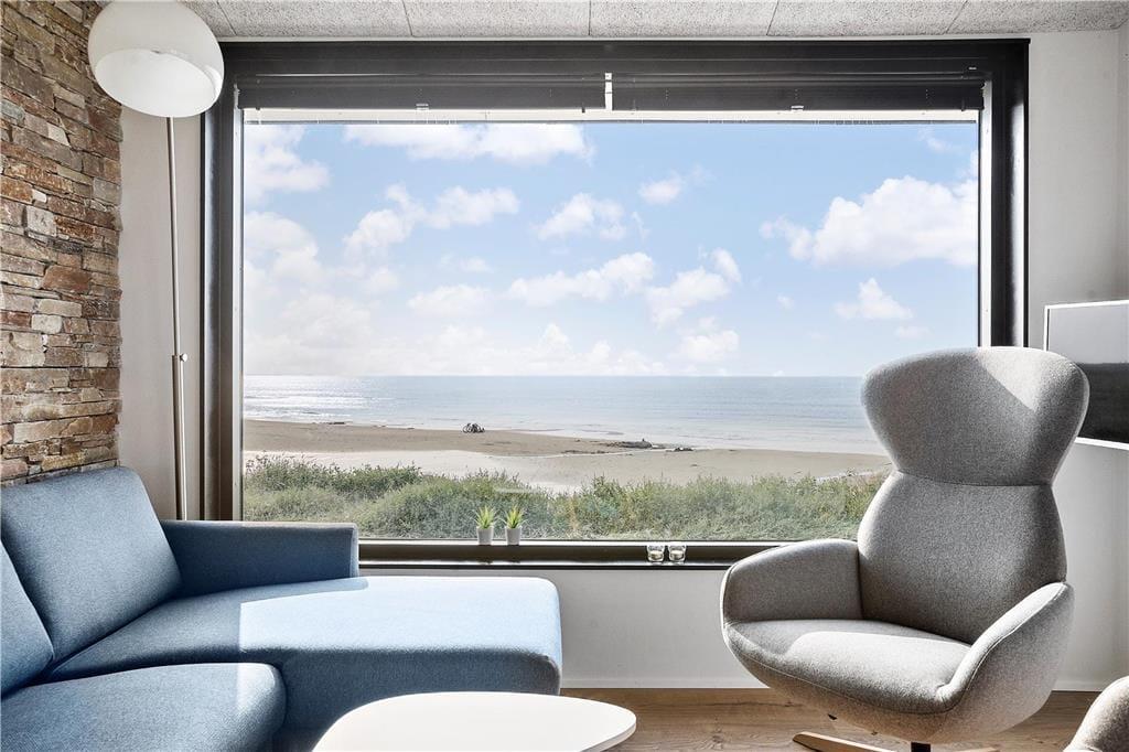 Udsigten imponerer her fra første klitrække, hvor dette moderne sommerhus er placeret. Her på Morgenvej bor I lige ud til Nørlev Strand, og fra både stuen og terrassen kan I skue langt ud over den smukke kyststrækning og det mægtige Vesterhav.