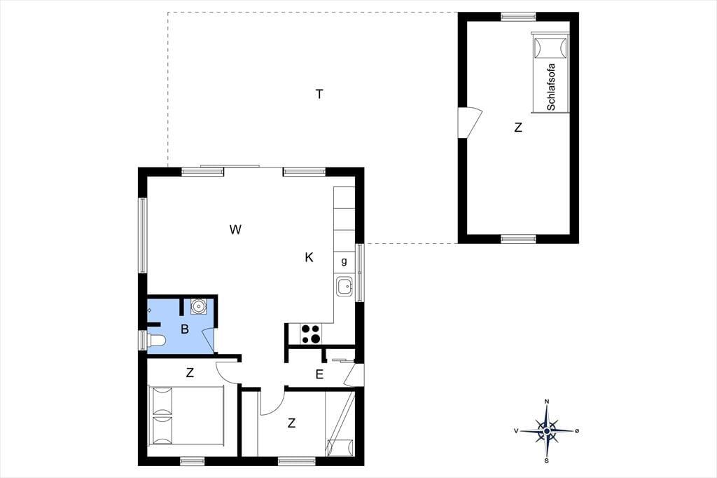 Fra stuen træder I direkte ud på den store terrasse, der breder sig mellem sommerhuset og annekset. En del af terrassen skærmes af en lav mur, men I kan også sætte jer der, hvor havudsigten er helt uhindret. Havemøbler, liggestole og grill er selvfølgelig til rådighed, så sommerlivet på terrassen kommer til at foregå på særdeles komfortabel vis.