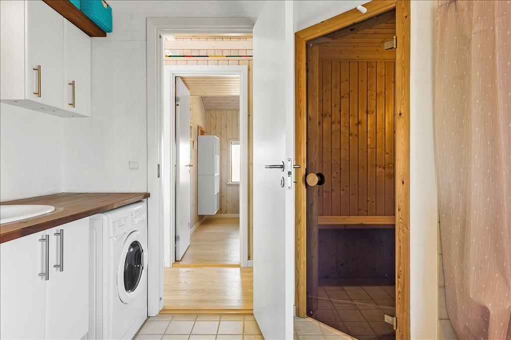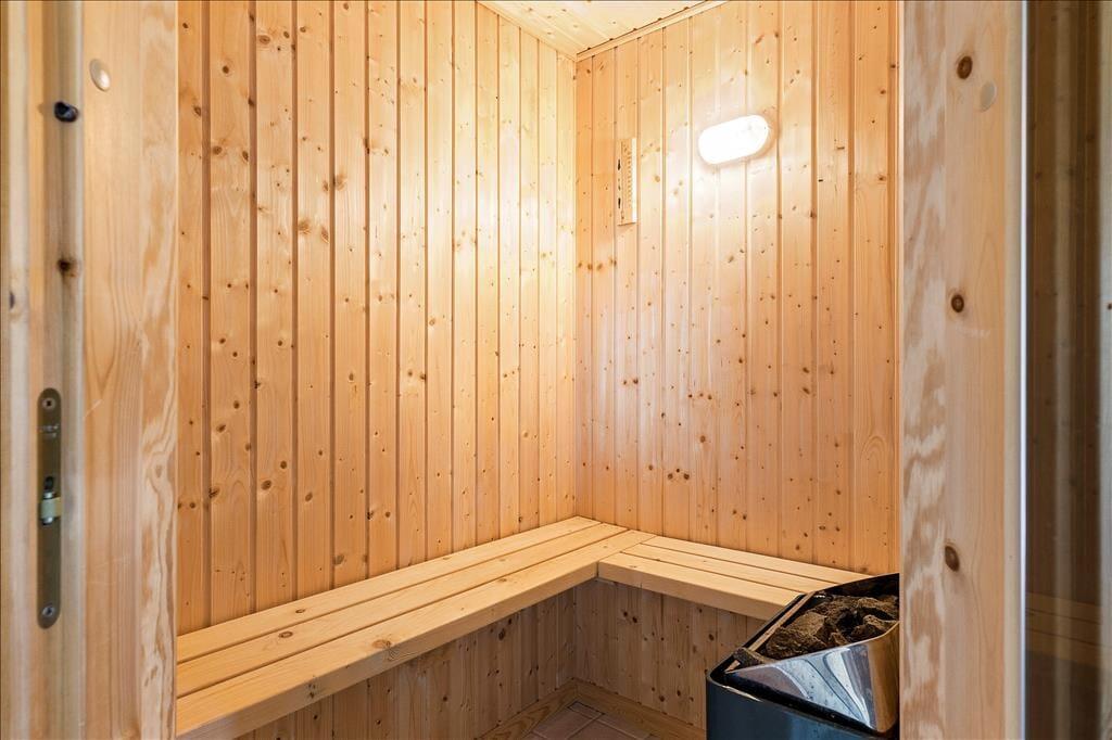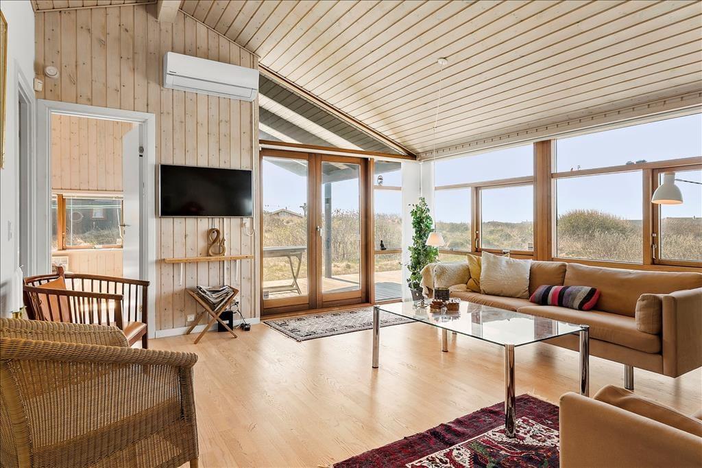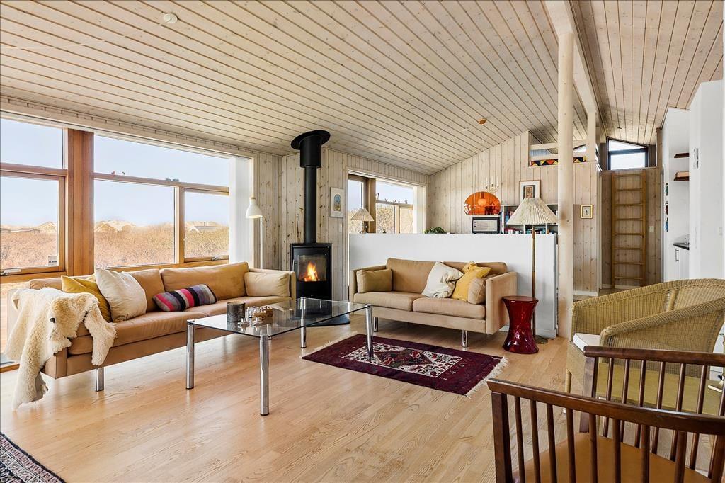 Spabad og sauna, brændeovn i stuen og flot udsigt til klitterne: Det hører alt sammen med til sommerhuspakken, når I holder ferie på Kystmarken 13 ved Nørlev Strand.
