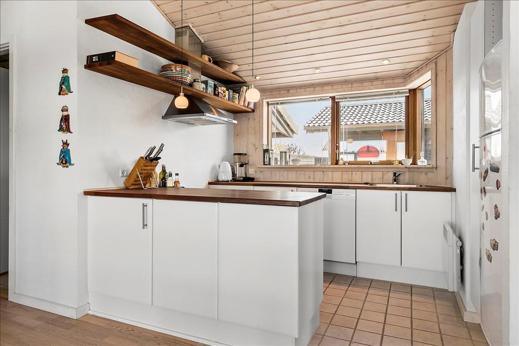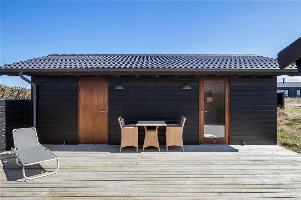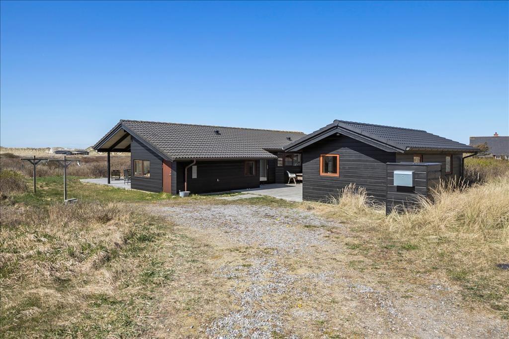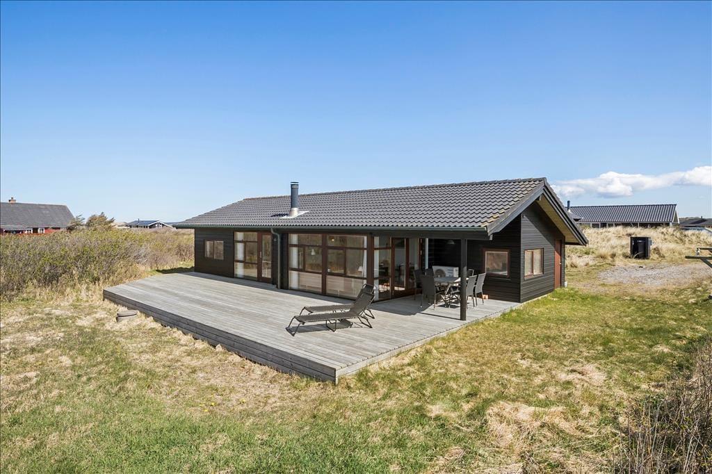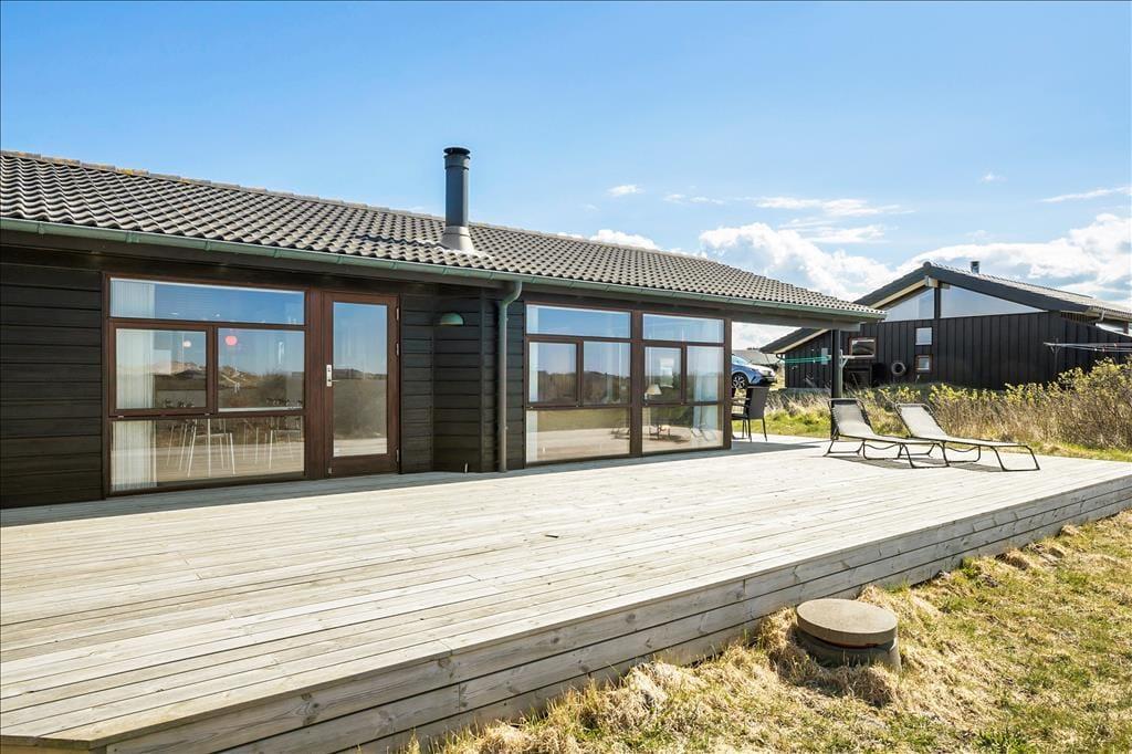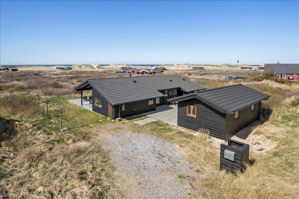 Her på adressen kommer I til at nyde livet i flotte og rummelige omgivelser. Det moderne indrettede sommerhus måler 92 m2, mens annekset på 15 m2 er et godt supplement – og så er den smukke udsigt til det åbne klitlandskab med til at understrege fornemmelsen af at have plads til store armbevægelser. Udsigten er særligt flot i sommerhusets opholdsafdeling, hvor køkken-alrummet og en stue med brændeovn ligger i åben forbindelse. Fra opholdsafdelingen har I direkte forbindelse til alle øvrige rum, der kort fortalt består af tre soveværelser og to badeværelser, hvoraf det største er udstyret med sauna, spabad og vaskemaskine.
