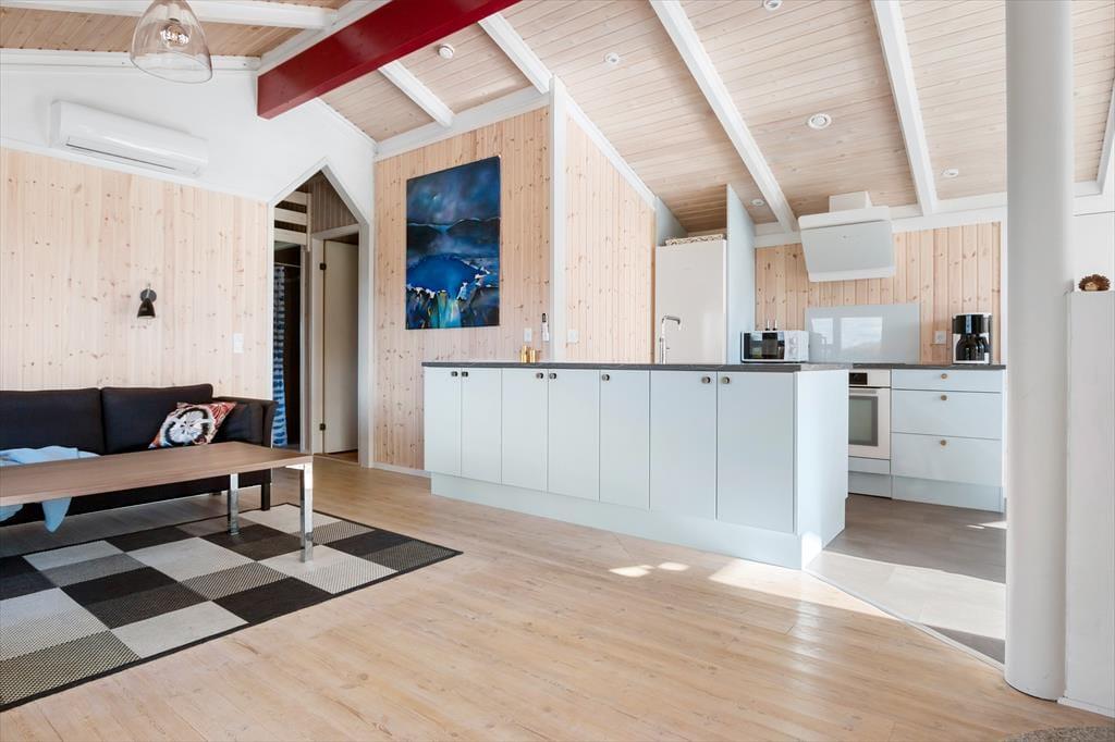 Det 119 m2 store sommerhus er blevet renoveret i 2021, og det er komfortabelt indrettet og fremstår meget velholdt.