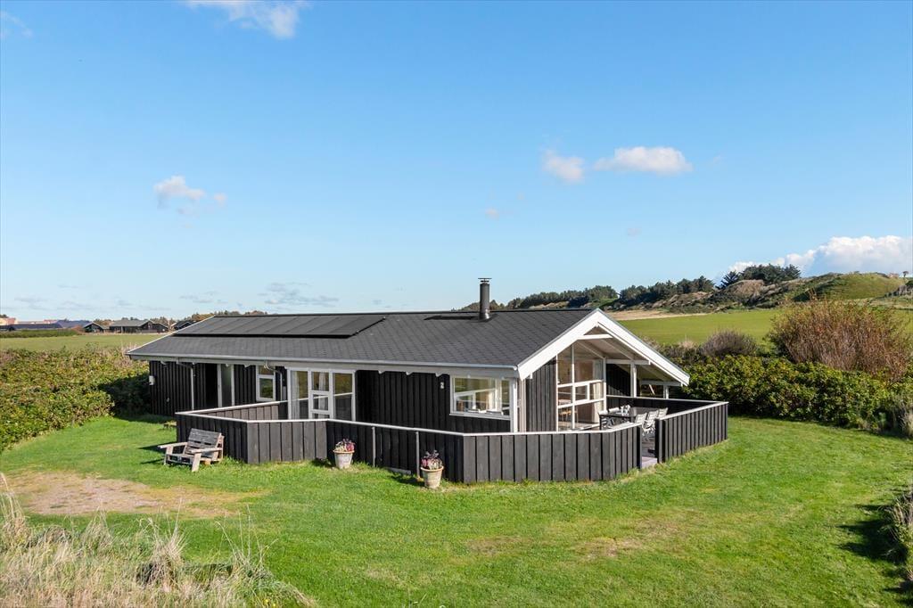 På den lille, lukkede Jævndøgnsvej ligger sommerhuset ud mod et åbent landskab og meget tæt på Lien og Skallerup Indlandsklitter. Dyrelivet er rigt i området, så det kan sagtens være, at I ser rådyr eller harer pile af sted, når I tager på vandretur i de naturskønne omgivelser. Fra sommerhuset har I cirka 600 meter til stranden, så hvis I vil nyde udsigten over Vesterhavet eller dyppe jer i bølgerne, kan I være dernede på få minutter. Skallerup Seaside Resort har I også i kort gåafstand, og få kilometer væk ligger Lønstrup.