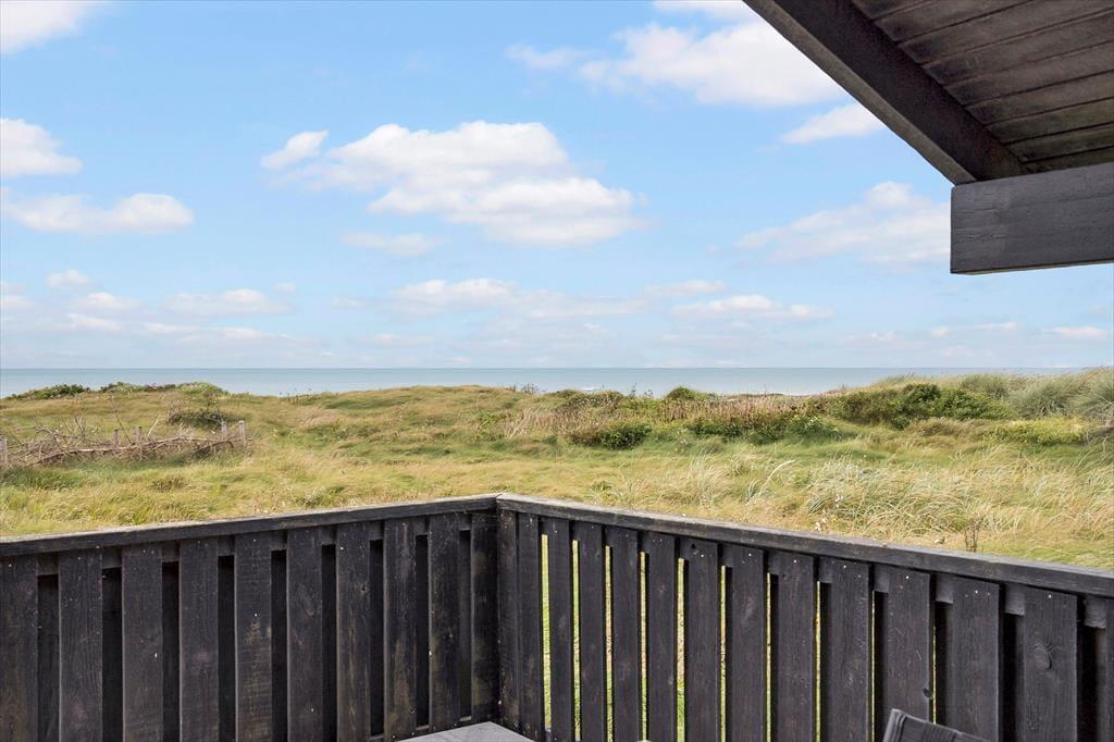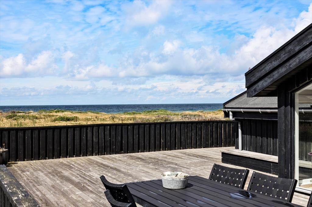Det er noget helt særligt at holde ferie bare 30 meter fra stranden, for du er i nærkontakt med naturens kræfter her ved vestkysten – og det mærkes for alvor på terrassen, hvor du får havudsigten ind sammen med lyden af bølgernes brusen og den friske, salte havluft. Et ophold her kan garanteret få dig helt ned i gear, og hvis du trænger til at fordybe dig i en spændende krimi eller bare sidde helt roligt og hyggesnakke med dine kære, gælder det bare om at slå sig ned i havemøblerne. Træterrassen er stor og delvist overdækket, og den sydvestvendte orientering betyder, at den er solrig en stor del af dagen.