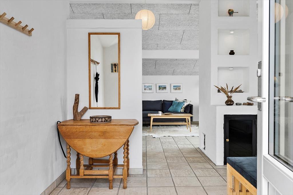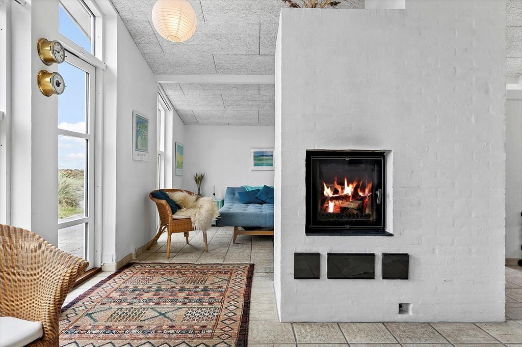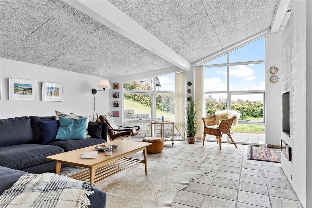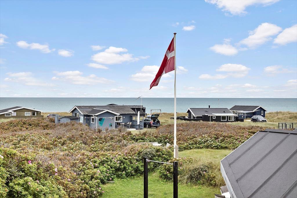 Vejen, I bor på, hedder Ved Stranden – og I befinder jer ganske rigtigt få skridt fra Nørlev Strand, som er en af vestkystens dejlige, hvide sandstrande med god plads til at lege, spille strandspil og gå tur. Er det vejr til at bade, er der ikke noget så skønt som et dyp i Vesterhavet, og solnedgangene over vandet er helt spektakulære. Få minutters gang fra sommerhuset finder I HAVS, der blandt andet har en dejlig café og udlejning af surfudstyr og cykler. Nær Nørlev Strand ligger der for øvrigt et ridecenter, og I Skallerup Seaside Resort kan I hygge jer med wellness, bowling, badeland og meget mere. En tur til den hyggelige kystby Lønstrup kan bestemt anbefales, og I kan også fortsætte videre ned langs kysten til naturperlen Rubjerg Knude.