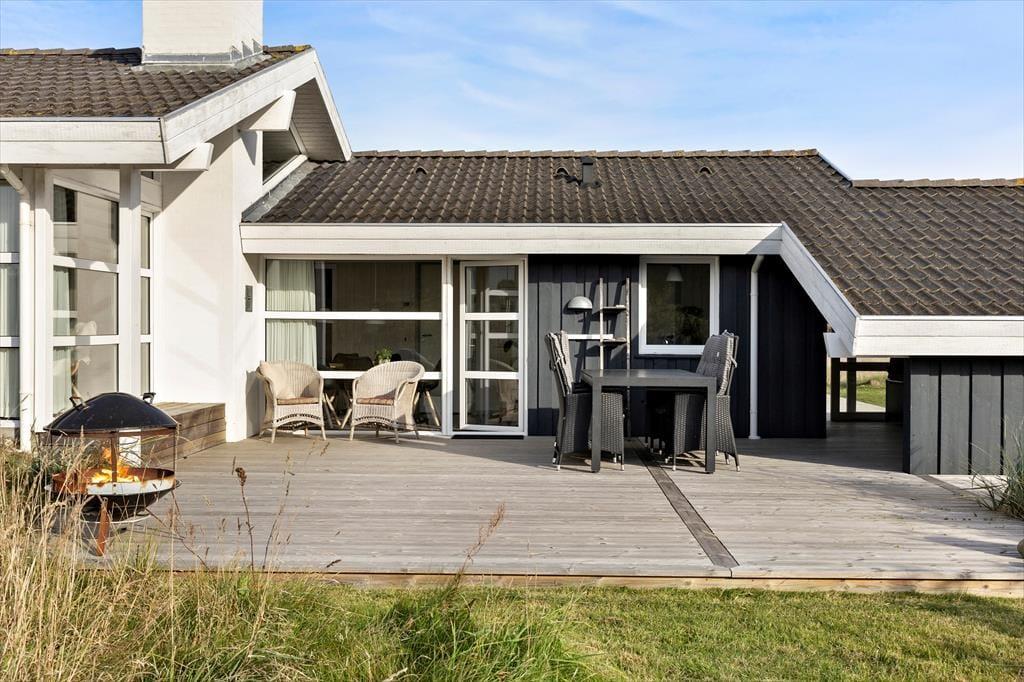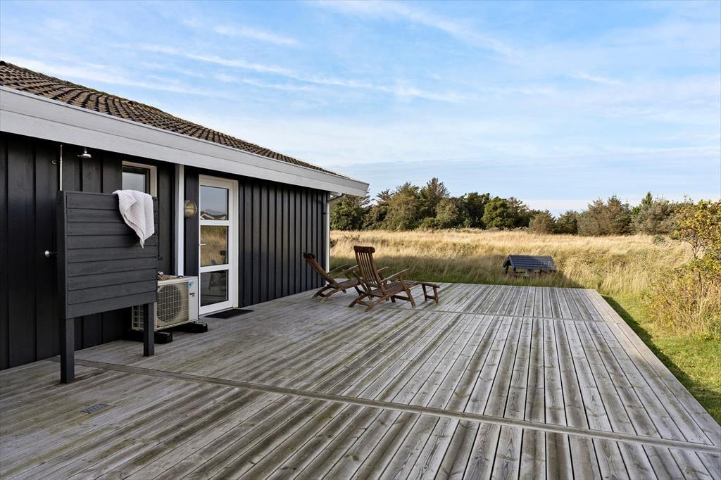 Når solen lokker jer ud i det fri, har I flere skønne opholdspladser at vælge imellem, for der er nemlig store træterrasser på begge sider af huset. I har selvfølgelig havemøbler og liggestole til rådighed, og der er både kul- og gasgrill, hvis I vil udfolde jeres kulinariske evner i det fri. I hvert fald kan de frisktilberedte lækkerier ikke smage meget bedre, end når de indtages her i den salte havluft og med udsigt til den bakkede natur.