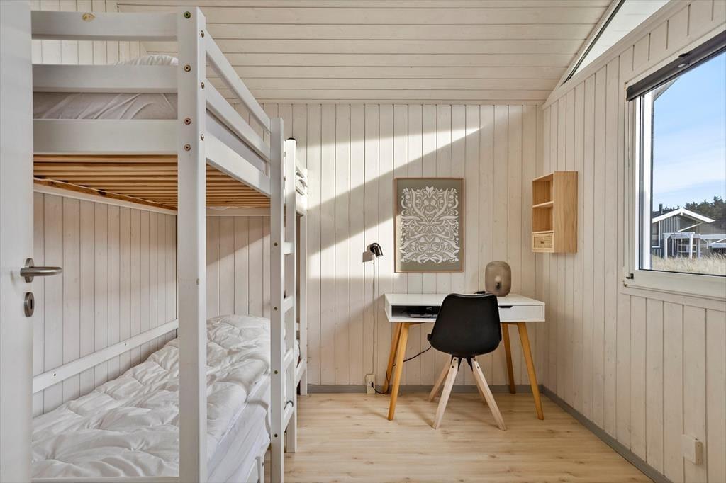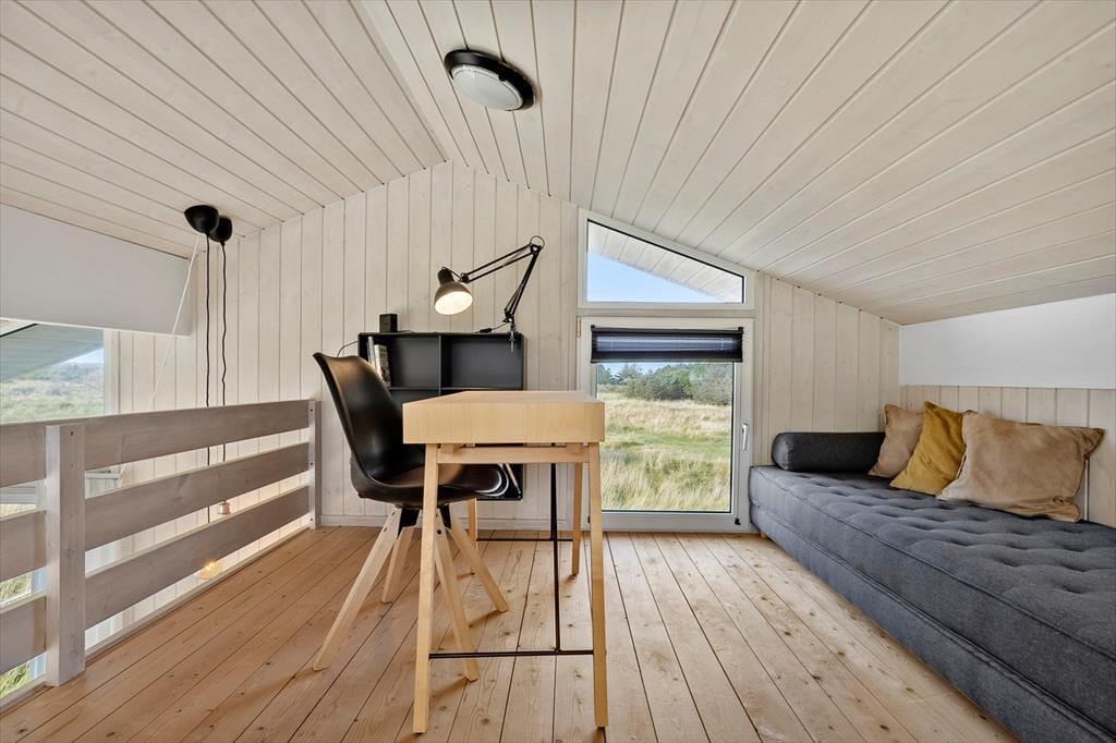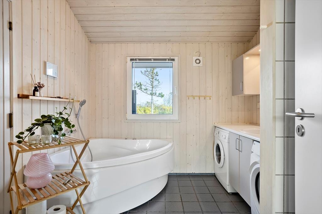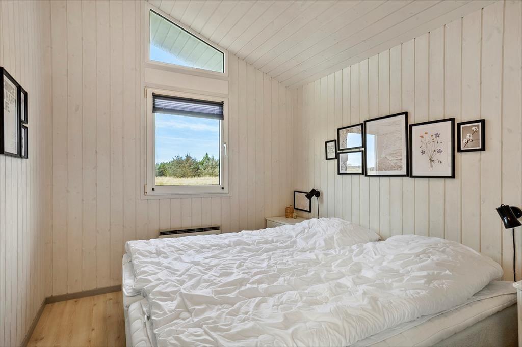 Selvom der er meget at se og opleve i lokalområdet, er det fristende bare at blive hjemme i sommerhuset, for det er nemlig et utroligt dejligt eksemplar med en rar atmosfære og en glimrende planløsning til seks personer. Foruden tre soveværelser er der et gæstetoilet og et badeværelse inden døre, og sidstnævnte er udstyret med et hjørnespabad, så I kan forkæle jer selv med wellness og total afslapning. I stuen, der ligger et par trin hævet i forhold til køkken-alrummet, er der stort fladskærms-tv med Chromecast, og indbygningspejsen er smart placeret, så I kan se flammerne fra sofaafdelingen såvel som fra spisebordet. Gennem de store vinduer har I udsigt til indlandsklitterne, både når I står i det åbne køkken og slapper af i stuens sofaafdeling, og selv fra hemsen har I kig til det smukke landskab.