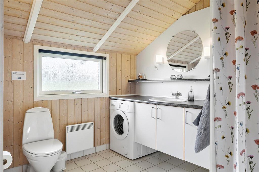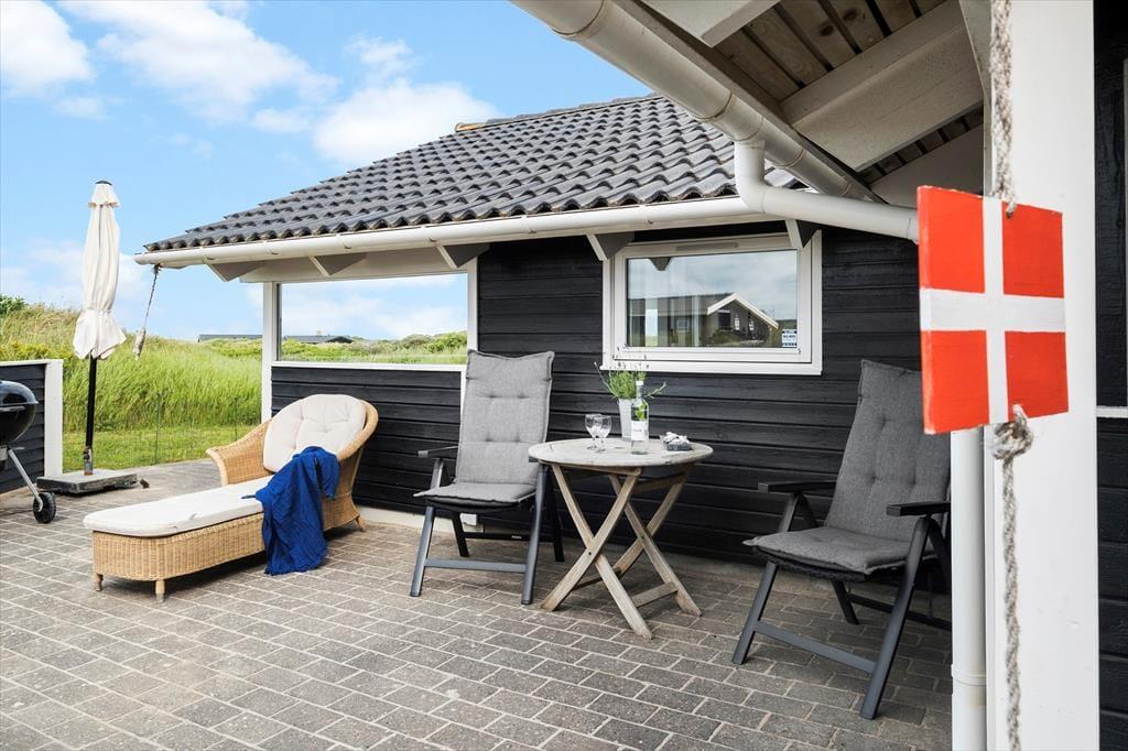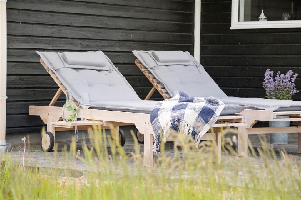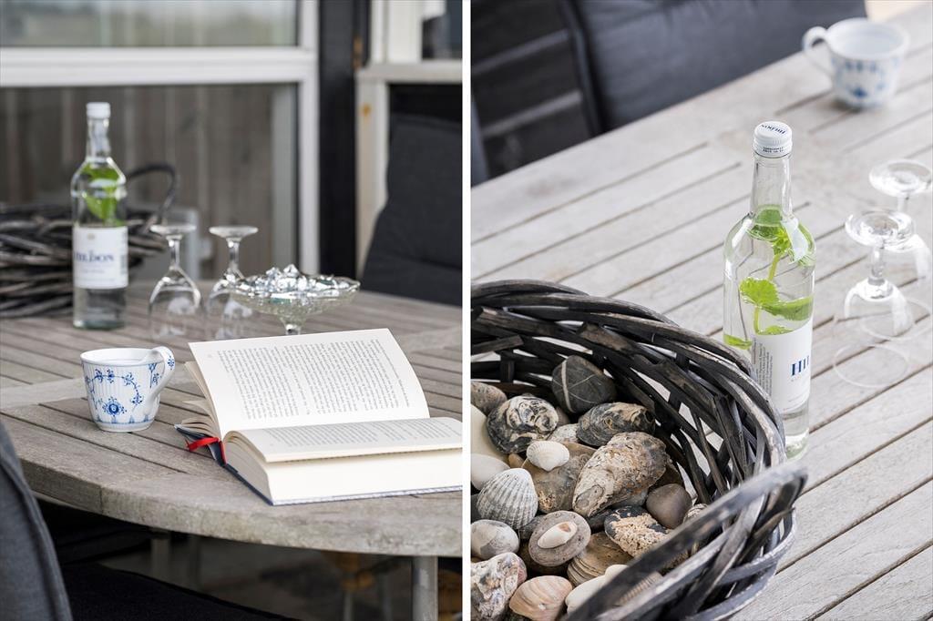 Udendørs strækker det store terrassemiljø sig mod syd og vest, omgivet af den rolige naturgrund. Her kan du nemt finde dit eget lille hjørne i solen eller søge ly i det overdækkede område, alt efter din præference. Havemøbler og liggestole står klar til at blive brugt, og med en grill til rådighed kan du nyde dine måltider udendørs, mens du suger til dig af de smukke og fredelige omgivelser.