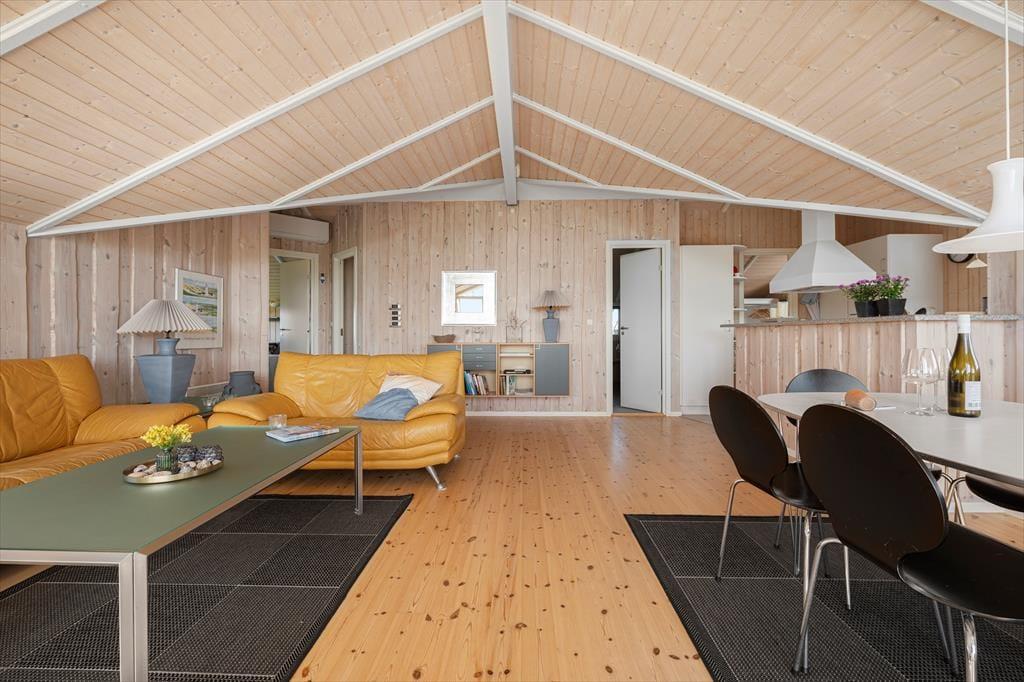 Dette skønne feriehus i Nørlev udstråler en atmosfære af total afslapning og ro. Velindrettet og velholdt, det byder på alt, hvad du har brug for til en fredelig tilbagetrækning. Forestil dig at sidde foran den knitrende brændeovn i stuen, omgivet af varme og hygge, mens du nyder synet af det maleriske kystlandskab gennem vinduerne. Køkkenet og stuen smelter sammen til et indbydende opholdsrum, perfekt til lange samtaler over middagsbordet eller afslapning i sofaens blødhed ved siden af brændeovnen. Med tre komfortable soveværelser og et badeværelse er der masser af plads til at rumme seks personer, hvilket gør det til det ideelle tilflugtssted for en familie eller en gruppe venner.