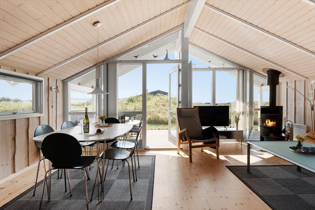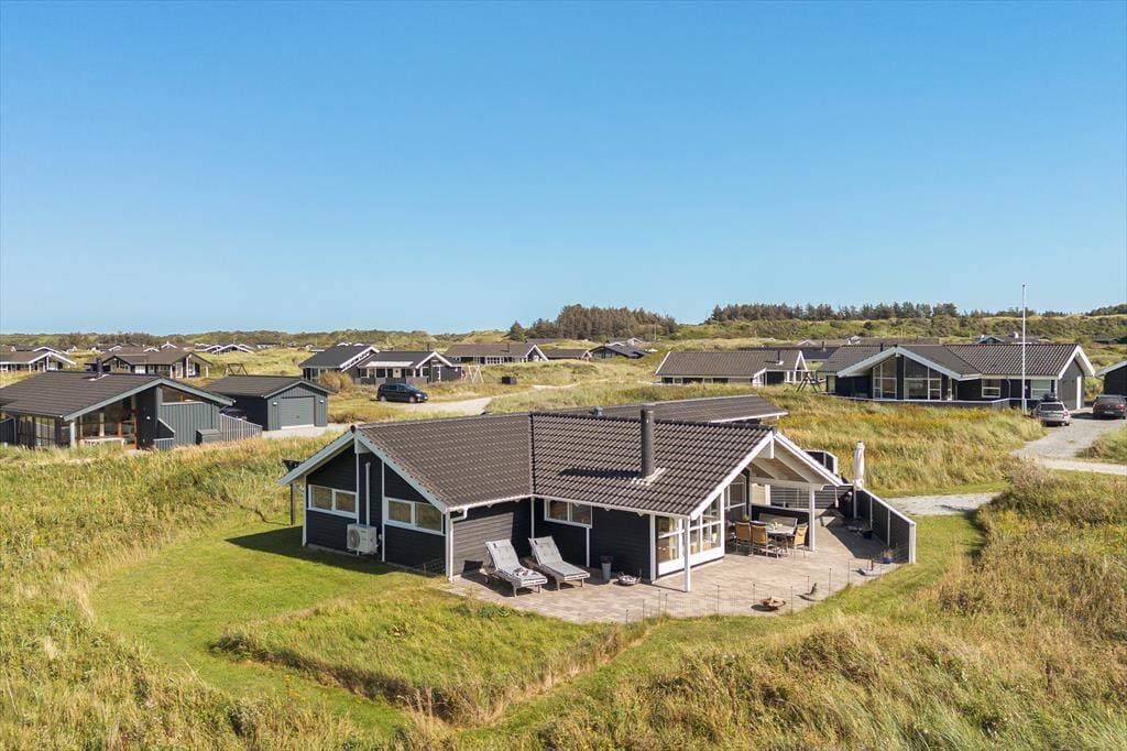 Beliggenheden er perfekt for dem, der søger forbindelse til naturen. Med udsigt over det åbne landskab og Vesterhavet lige uden for døren, er stranden kun en kort gåtur væk. Her kan du nyde en forfriskende dukkert eller se solen gå ned over horisonten. Hvis du er til vandsport, kan du deltage i et surfkursus hos HAVS eller bare slappe af med en kop kaffe og en bid mad. Der er også mulighed for cykeludlejning eller en tur på hesteryg for at udforske det naturskønne område. Alt i alt tilbyder dette feriehus en perfekt blanding af komfort, ro og naturskønhed, der gør det til det ideelle tilflugtssted fra hverdagens travlhed.