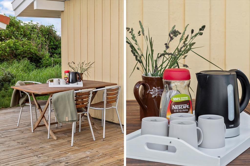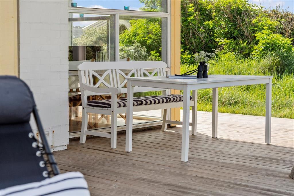 Rundt om sommerhuset venter der flere dejlige solkroge og opholdspladser på terrasserne, så det er nemt at finde det helt rette sted at sidde på alle tider af dagen. Naturgrunden giver dig en skøn og fredfyldt ramme om driverlivet, og mod nord breder det åbne landskab sig, så du kan lade blikket vandre, mens du selv sidder roligt og nyder solen og den friske, salte luft. Om aftenen kan du grille familiens aftensmad, mens børnene gynger og leger på grunden, og når måltidet er spist, kan I blive ude for at nyde den smukke solnedgang over klitterne – hvis ikke I smutter helt ned på stranden for at se den fra første parket.