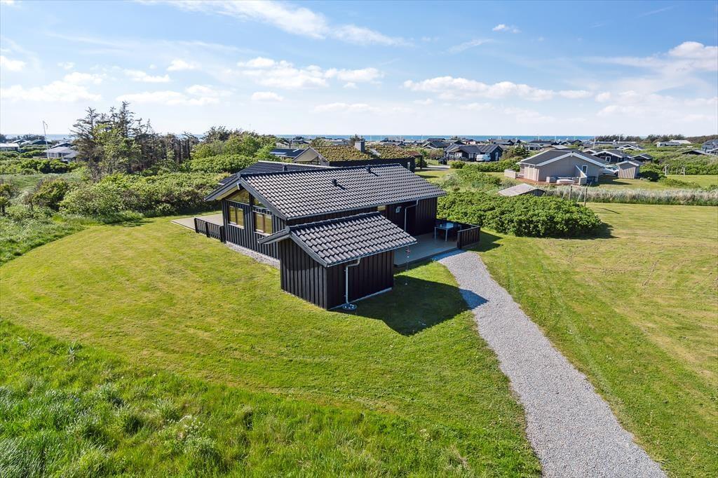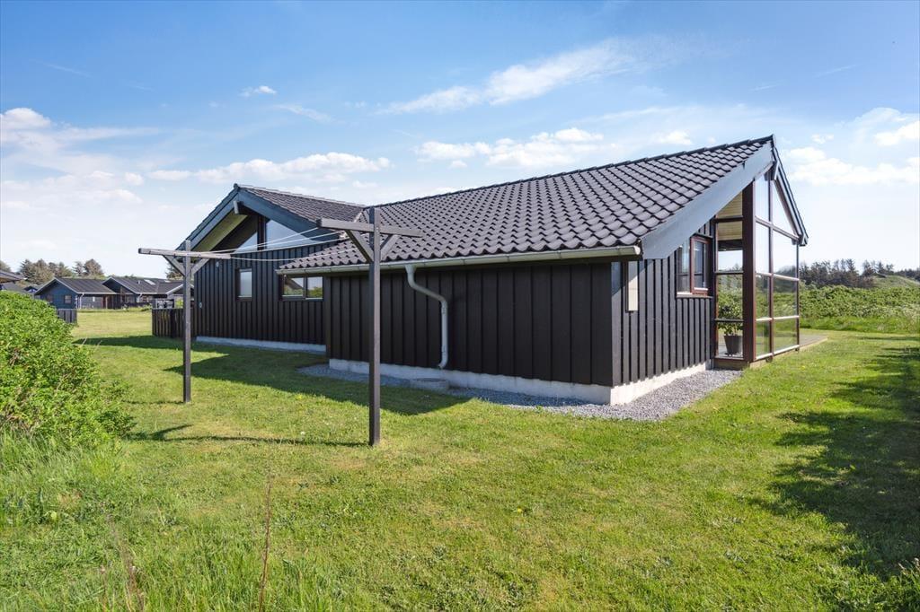 Udendørs kan du se frem til et dejligt terrassemiljø, der både byder på solrige opholdssteder og skygge under den overdækkede del. Her kan du drikke morgenkaffen i frisk havluft eller tilberede aftensmaden på grillen, mens solen går ned bag klitterne. Den naturskønne grund giver en dejlig fornemmelse af ro, og takket være den korte afstand til stranden kan du nemt tage en afstikker til vandkanten.