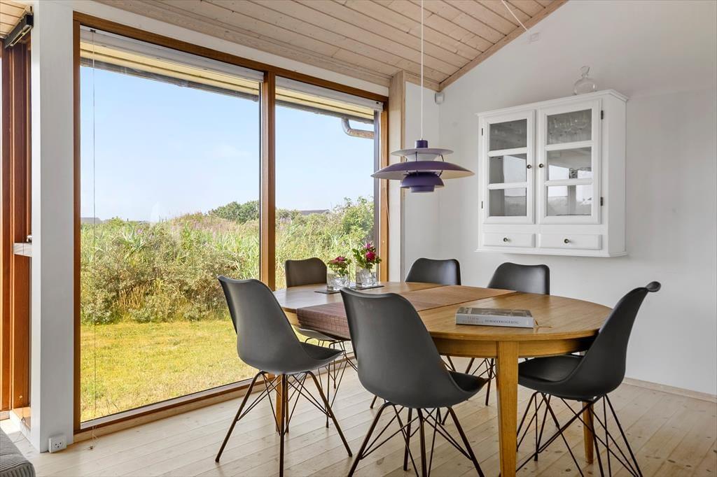 Den fredelige beliggenhed gør livet udenfor til en sand fornøjelse. Sommerhuset ligger godt tilbagetrukket, så du virkelig mærker, hvordan tempoet falder, og stilheden tager over. På den overdækkede terrasse er det oplagt at nyde morgenkaffen, mens solen stiger op over klitlandskabet og fuglene vågner i krattet omkring dig. Her er læ for vinden og plads til både afslapning og måltider i det fri – og på lune sommeraftener bliver terrassen hurtigt familiens foretrukne samlingspunkt. Når solen står højt, kan du finde en solplet med en liggestol og lade tankerne drive, mens du nyder duften af græs, lyden af havets brusen i det fjerne og den friske vestenvind. Det er ægte feriestemning – og det hele starter lige uden for døren.