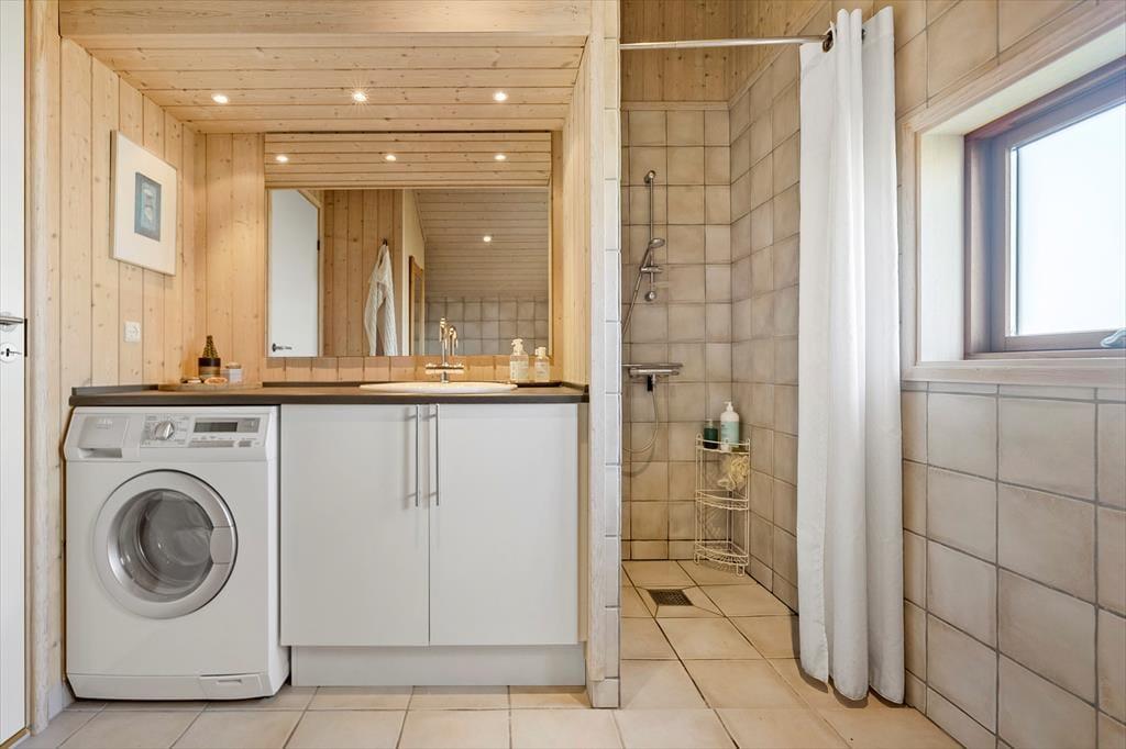 Indenfor venter dig en lys og indbydende indretning, hvor store vinduespartier trækker både dagslys og naturen helt ind i opholdsrummet. Det åbne og rummelige samlingspunkt mellem stue og køkken skaber en afslappet atmosfære, hvor I nemt kan være sammen om både madlavning og hyggestunder i sofaen. Her er det let at læne sig tilbage med en god bog, spille et brætspil med familien eller bare lade blikket vandre ud mod de grønne omgivelser. Det er svært ikke at føle sig hjemme med det samme. Huset har to badeværelser, og på det ene kan du forkæle dig selv med et afslappende spabad – perfekt til at runde dagen af med varme bobler og ro i sindet. Alt i alt danner de indendørs rammer den perfekte kulisse for både rolige feriedage og hyggeligt samvær – og hunden er selvfølgelig også velkommen.