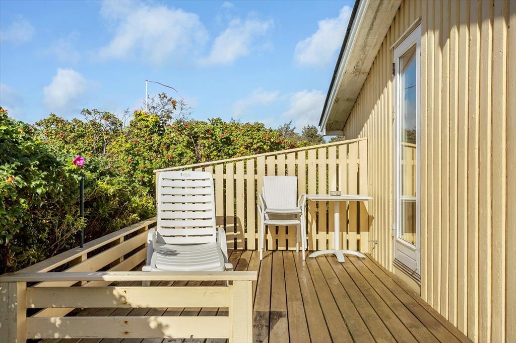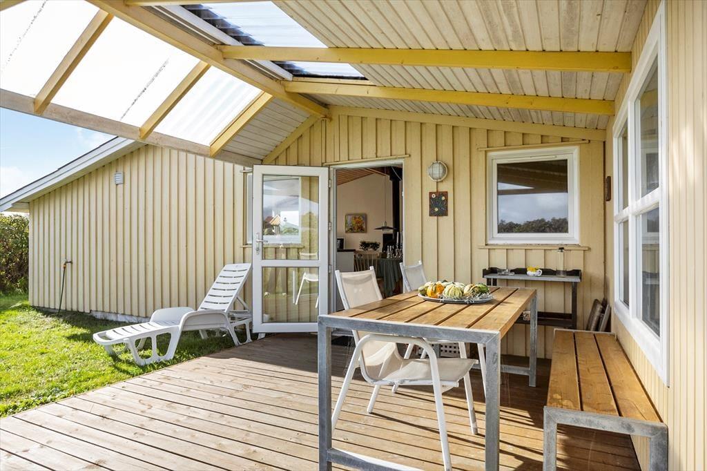 Sommerhuset har en stor have, hvor både børn, voksne og hunde kan boltre sig frit. Rundt om huset er der hele tre terrasser, så du kan følge solen fra morgen til aften – eller finde skygge, når sommerens varme tager til. Den overdækkede terrasse indbyder til lange middage under åben himmel, selv når duggen falder, og havemøblerne giver dig rig mulighed for at læne dig tilbage og bare nyde stilheden. Når du sidder herude, kan du høre fuglene synge og mærke den friske havluft, som er en fast følgesvend i Nørlev. Haven er stor nok til leg og aktiviteter, men den er samtidig et fredeligt sted, hvor du kan finde ro, fordybelse og feriefølelse.
