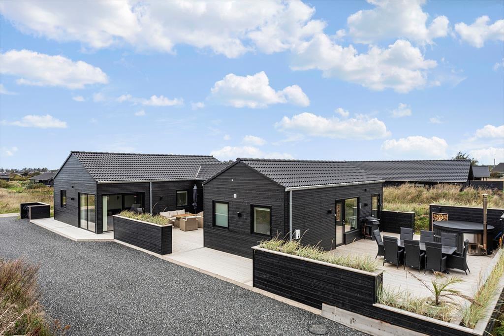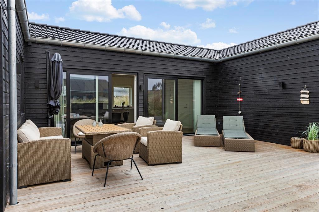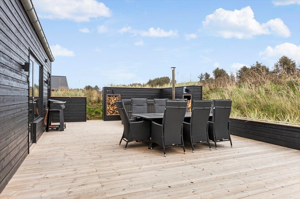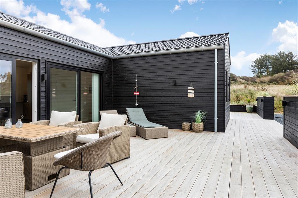 Det er ikke kun indenfor, at ferien føles lidt mere eksklusiv. Sommerhuset har nemlig flere store og velanlagte terrasser, som omkranser huset og gør det nemt at følge solen dagen igennem – eller finde skygge, hvis det er det, du trænger til. Terrasserne er møbleret med lækre havemøbler og liggestole, så du kan læne dig tilbage og nyde tilværelsen med en god bog eller et glas vin. Og som prikken over i’et står der et vildmarksbad klar til dig – et oplagt sted at stige ned i det varme vand, mens aftenhimlen farves rød over klitterne. Der er en særlig ro på Klittjørnen, og du vil hurtigt opdage, hvor befriende det føles at være så tæt på naturen uden at gå på kompromis med komfort og luksus. Her er der plads til både leg, latter og lange middage under åben himmel – med Nørlev Strands karakteristiske fred og naturskønhed som bagtæppe.