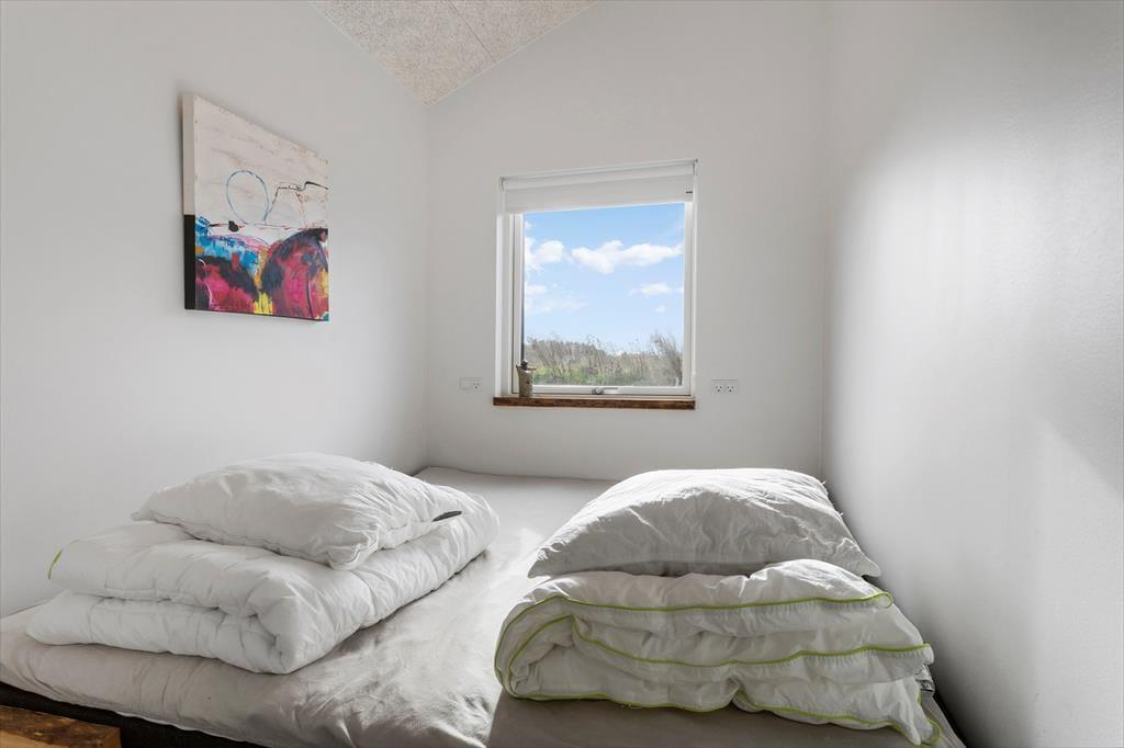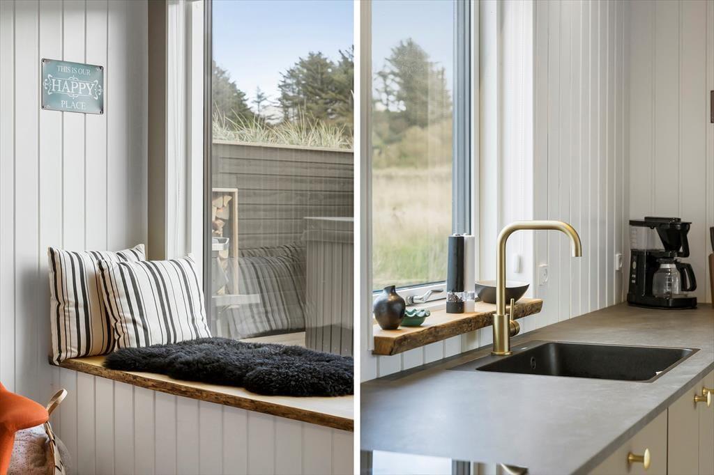 Indenfor i sommerhuset mærker du straks den rolige og luksuriøse stemning, som strømmer ud af den gennemtænkte indretning. Hele huset er opført i kvalitetsmaterialer og har gulvvarme under fødderne, så komforten er i top – uanset årstiden. Det moderne opholdsrum samler køkken, spiseplads og stue i ét lyst og luftigt rum, hvor de store skydedøre lukker naturen helt ind og skaber en glidende overgang mellem inde og ude. Møblerne er stilfulde og indbydende, og du får lyst til at smide dig i sofaen med en kop kaffe, mens du nyder det fredelige udsyn til klitlandskabet. Når dagen går på hæld, kan du trække dig tilbage til det rummelige master bedroom, der har sit eget luksuriøse badeværelse med dobbeltbruser – perfekt til afslapning efter en lang dag under åben himmel. Alt i alt er huset et sted, hvor æstetik og funktionalitet går hånd i hånd, og hvor du virkelig kan trække stikket og finde ro.