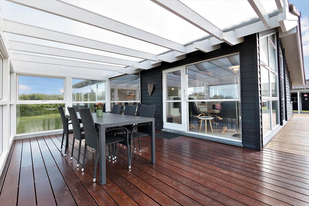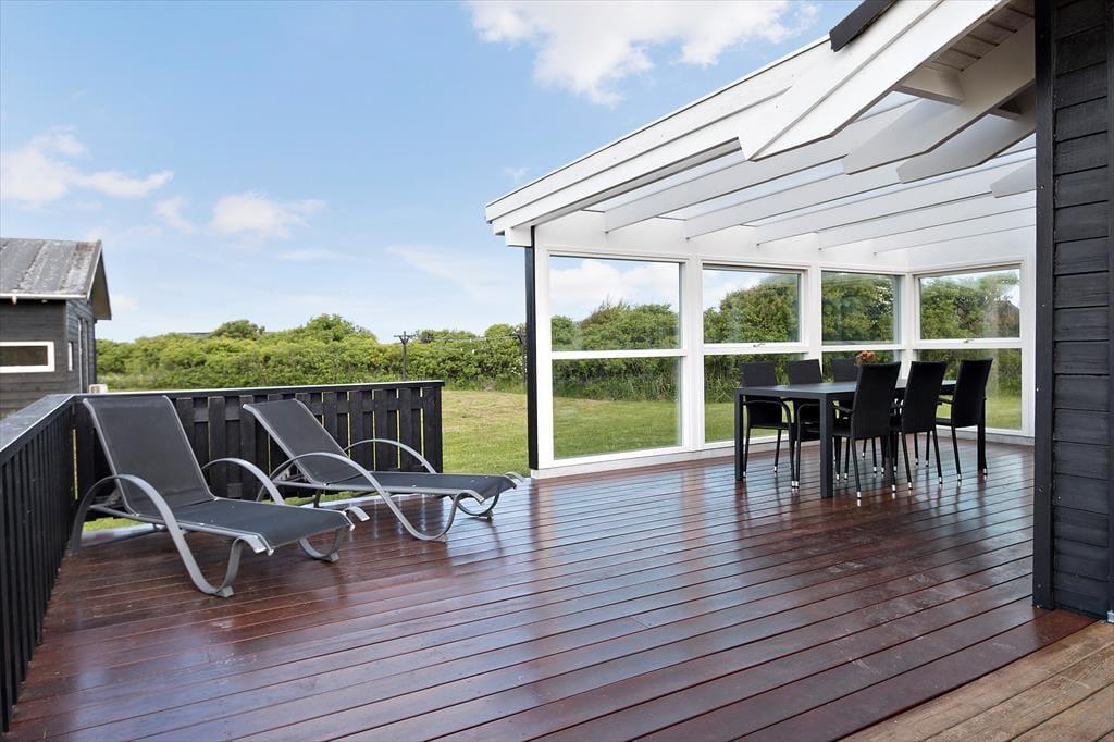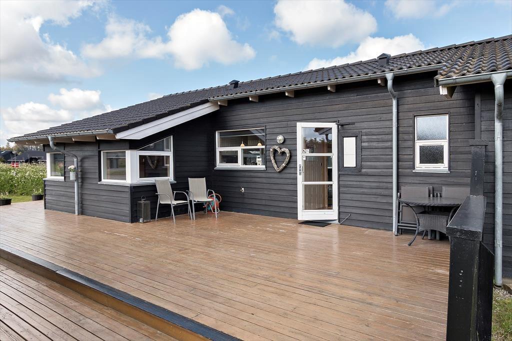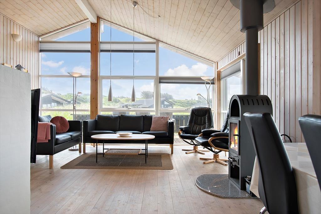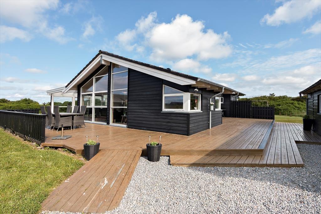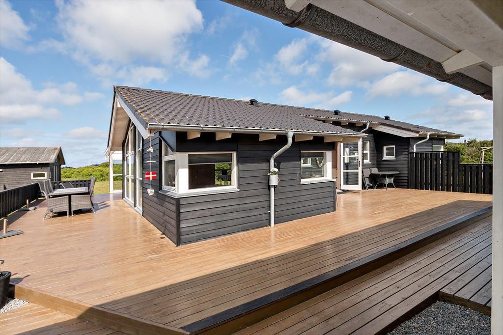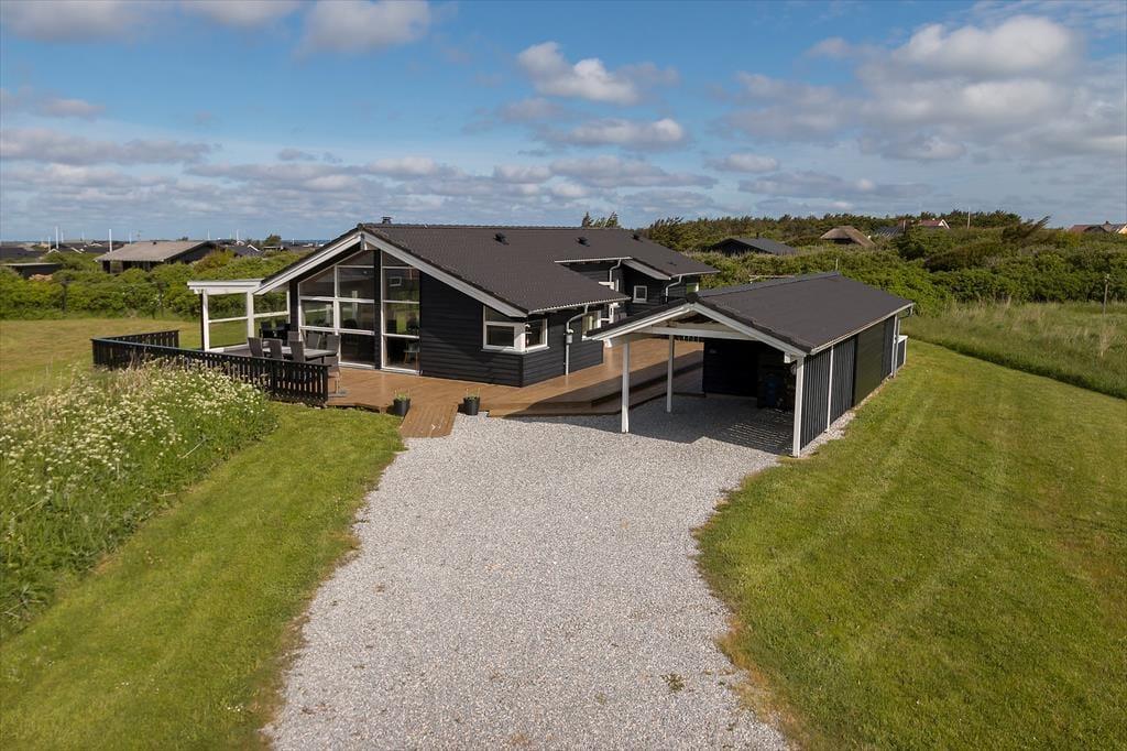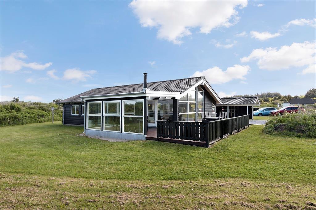 Sommerhuset ligger med en fantastisk udsigt til de fascinerende indlandsklitter. Der er store og rummelige terrasser rundt om huset, så man har mulighed for at følge solen hele dagen. Huset ligger på en stor naturgrund med masser af plads til hele familien at boltre sig på.