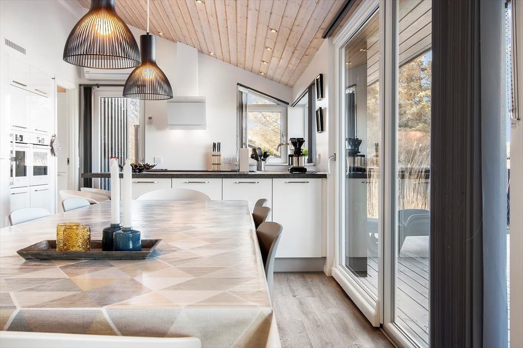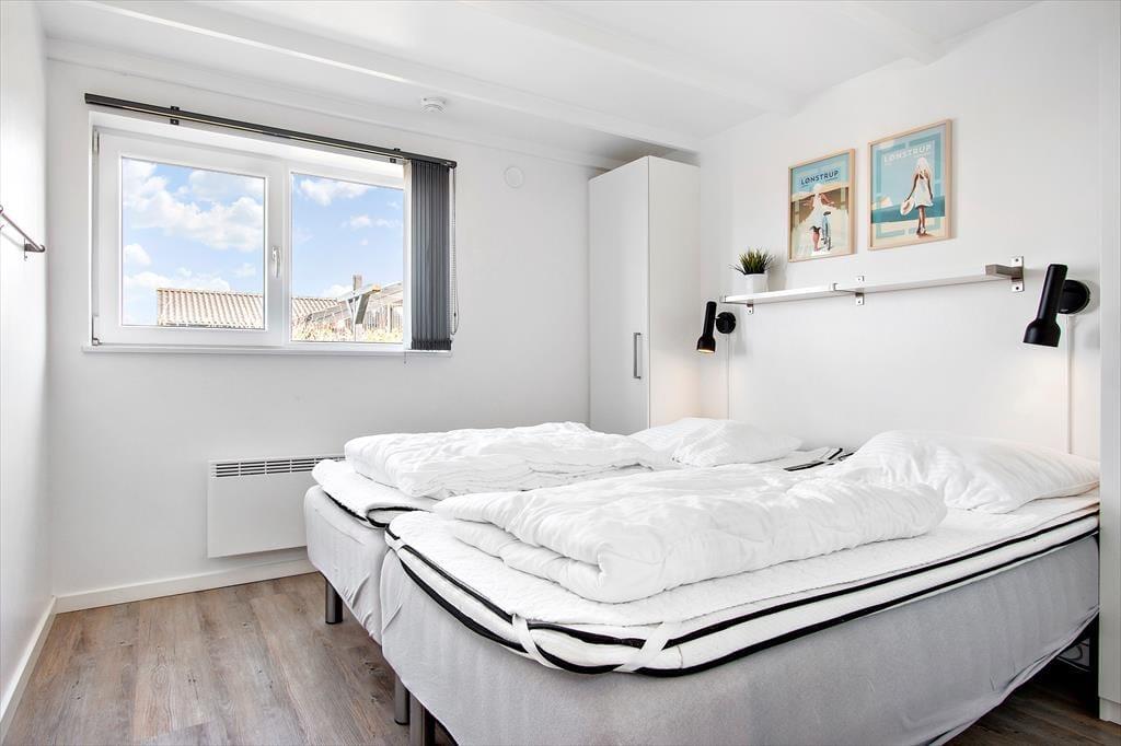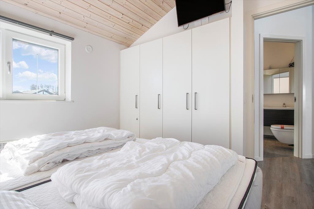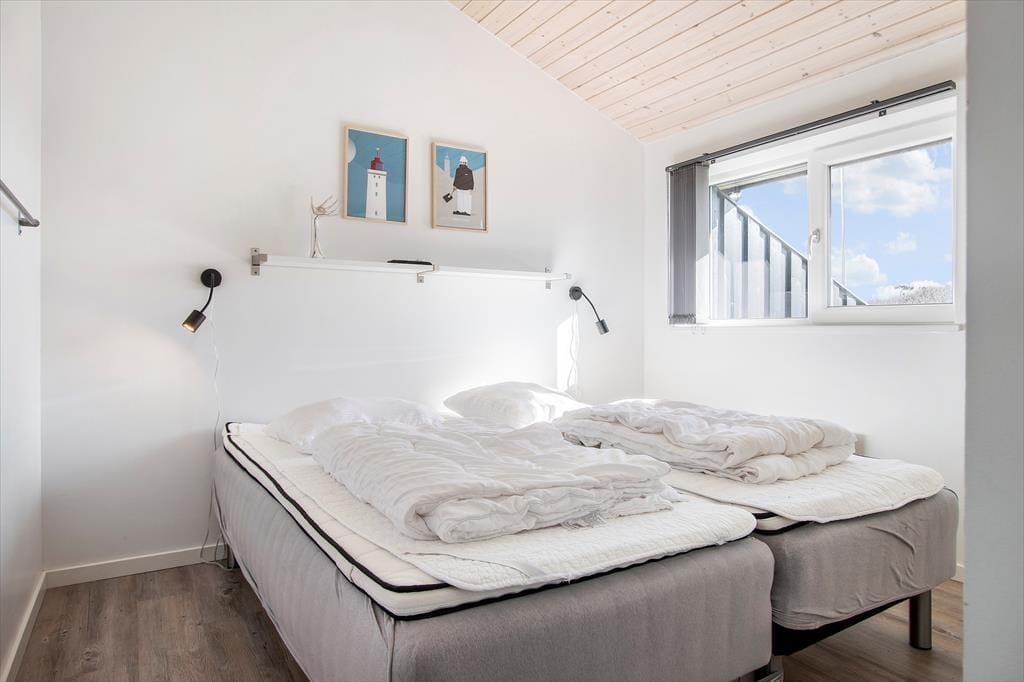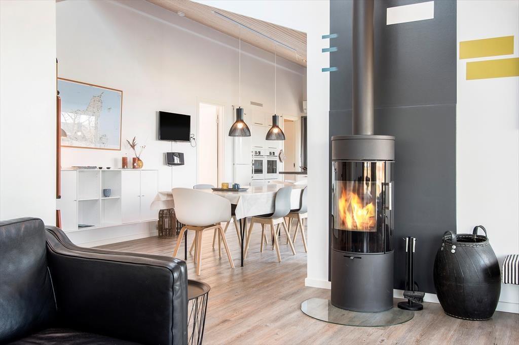 Sommerhuset er indrettet med et åbent køkken mod stuen og spisestuen, så hele familien kan være sammen om de fleste aktiviteter fra madlavning over kortspil og til afslapning i sofaen med en god film. De tre store soveværelser har alle dobbeltsenge, som kan skilles ad, hvis man ønsker det, og med to store badeværelser, hvoraf det største haret stort familiespabad (430 liter vand) samt to brusere, får man ikke probelmer med kø om morgenen. Derudover har sommerhuset en ekstra vask og vaskemaskine og tørretumbler i entreen og en skøn hems med et dejligt lys fra de store ovenvinduer, en dobbelt sovesofa og tv; det helt ideelle rum til større børn og teenagere. Sommerhuset er moderne indrettet med stilfulde møbler. Til familiens legebørn er derbåde et poolbord samt et airhockeybord i stuen, og er man til de mere stille aktiviteter, kan man tage en stille stund foran de store vinduer og nyde udsigten over det smukke landskab og Vesterhavet. Sommerhuset har en del moderne udstyr, som både gør ferien nem og afslappet, bl.a. en varmepumpe med køl, som hele tiden sikrer en behagelig temperatur, køkkenet har to ovne, der er i alt fire fjernsyn, og over hele huset kan man bruge det trådløse internet, hvis man husker pc eller tablet hjemmefra. Alt i alt byder dette skønne og moderne sommerhus på de bedste rammer for en dejlig ferie i Nordjylland.