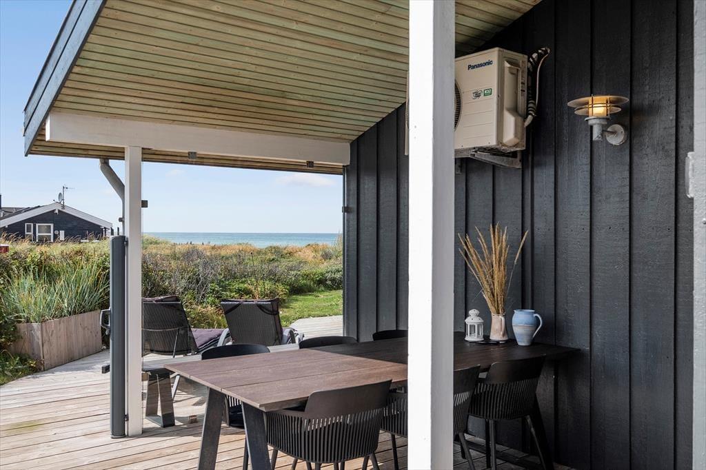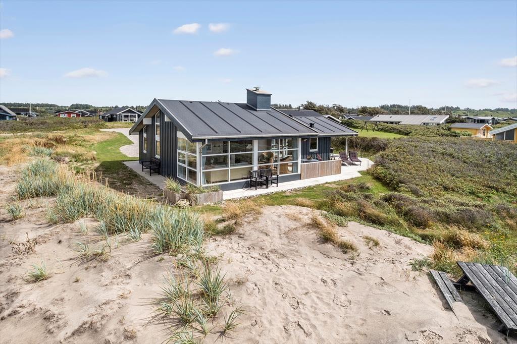 Grunden er en klitgrund omkranset af hybenroser og havtorn, som delvist skærmer mod både vind og indkig. Det store og rummelige areal foran huset er velegnet til både boldspil og leg. Eller måske til en god gyngetur i en af de bekvemme gynger, der findes foran huset. Der er gode terrasser med lækroge, så udendørslivet kan nydes, selvom vestenvinden engang imellem får lyst til at drille lidt.