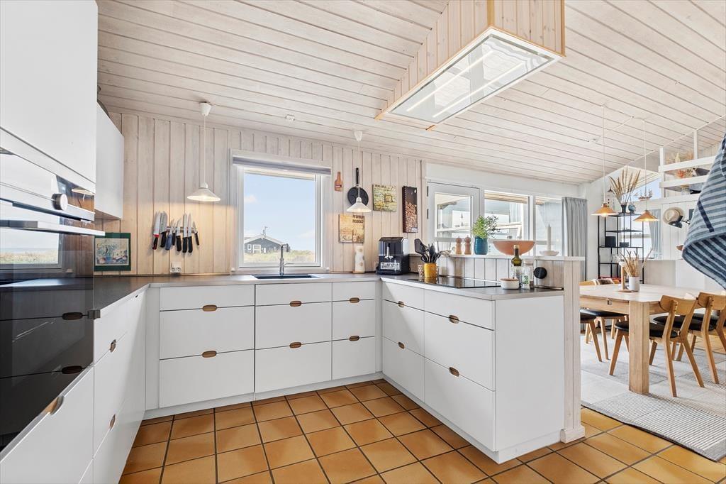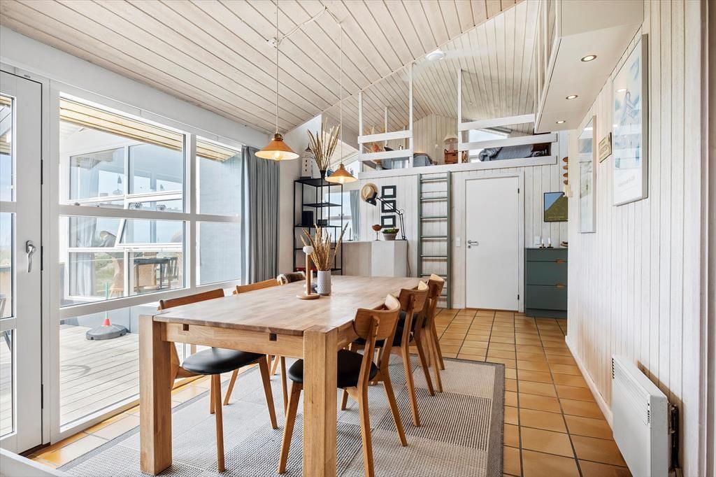 Huset er indrettet med både plads og hygge på samme tid. Køkken og spiseafdelingen er ud i et, og vinkelret på spisestuen er der to trin op til stuen med sofakrog og den mest fantastiske udsigt. Mellem de to afdelinger er der en skøn brændeovn, som kan bidrage til både varme og aftenhygge. Huset har 3 soveværelser samt to gode sovepladser på hemsen, hvorfra man kan se ud over køkkenet og området. Hvis man er heldig kan man fra hemsen få et førstehåndsindtryk af, hvad menuen står på til morgenmad.