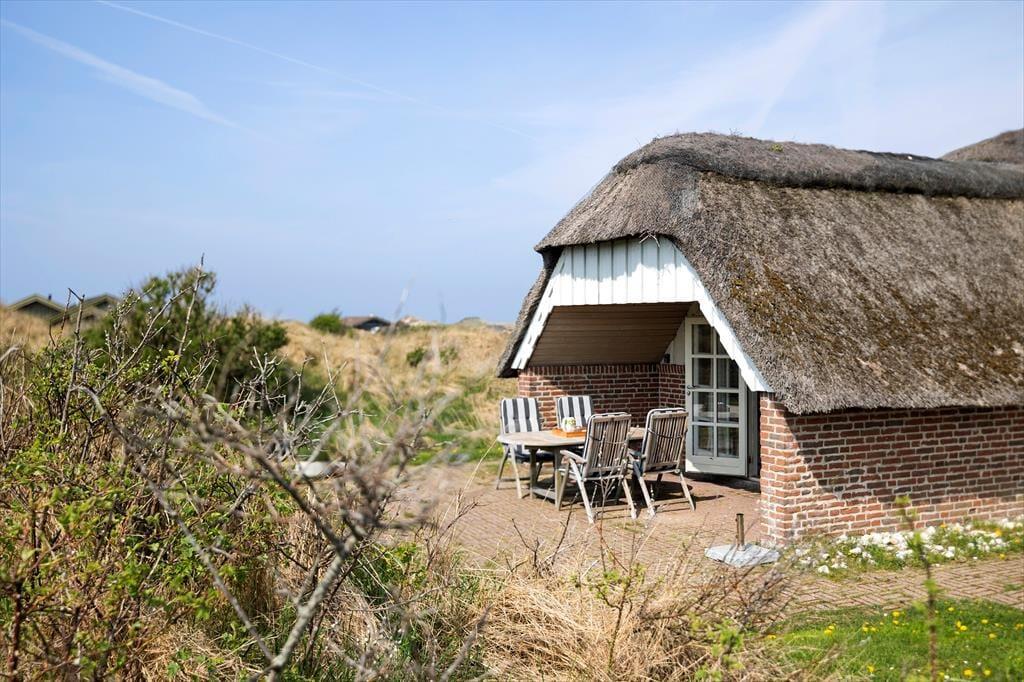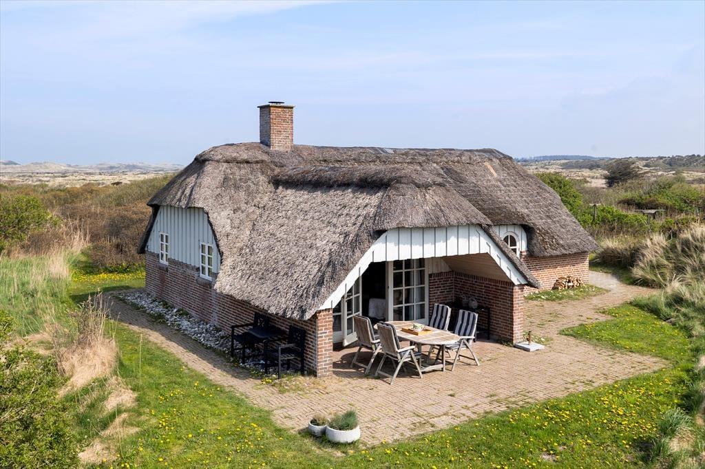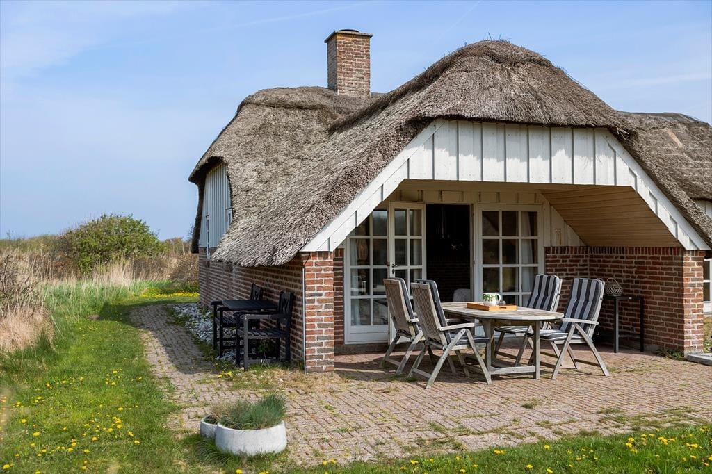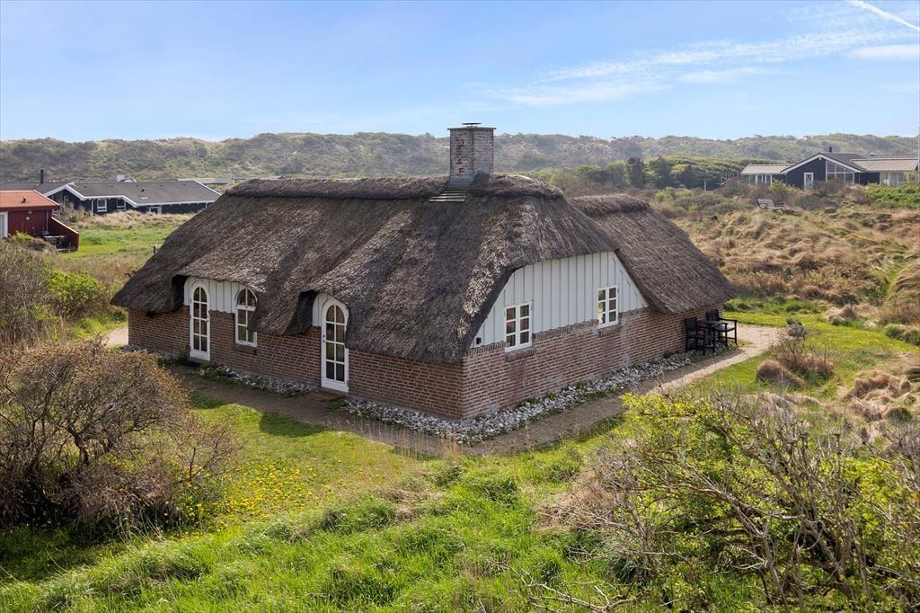 Dette pragtfulde, stråtækte feriehus ligger direkte op til fredet område og tæt på havet. Huset ligger tilbagetrukket og smukt, så her er virkelig basis for en ferie i rolige omgivelser – og helt privat.