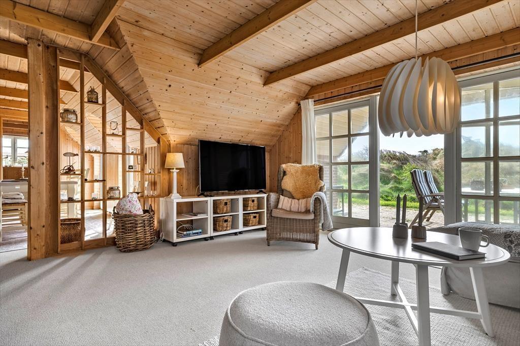 Huset er beliggende lige i kanten af et fredet naturområde, så vandreturen kan begynde lige uden for døren. Der er også gode muligheder for at nyde sommerlivets glæder med badning og strandliv ved den nærliggende Nørlev Strand. Hvis man vil supplere de skønne oplevelser i naturen med noget mere aktivt, er der kun kort afstand til Skallerup Seaside Resort med pool og aktiviteter for både børn og voksne. Hvis det er byliv med cafebesøg og kunsthåndværk af høj kvalitet, der trækker, er der ganske få kilometer til Lønstrup by, som virkelig oser af atmosfære. Sæt jer på en af byens hyggelige cafeer og nyd tilværelsen og hinanden med torve og stræder som den perfekte ramme om jeres ferie.