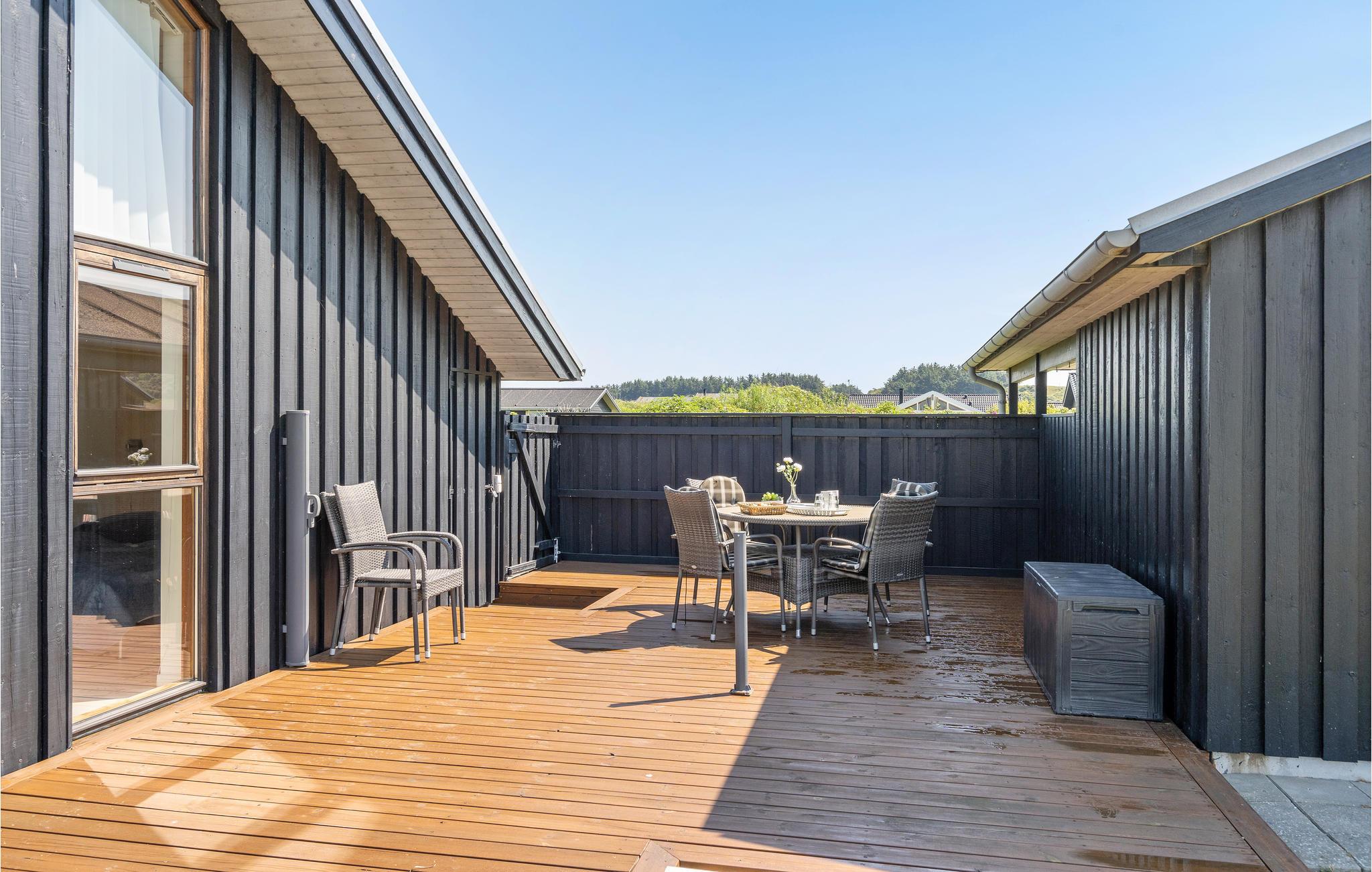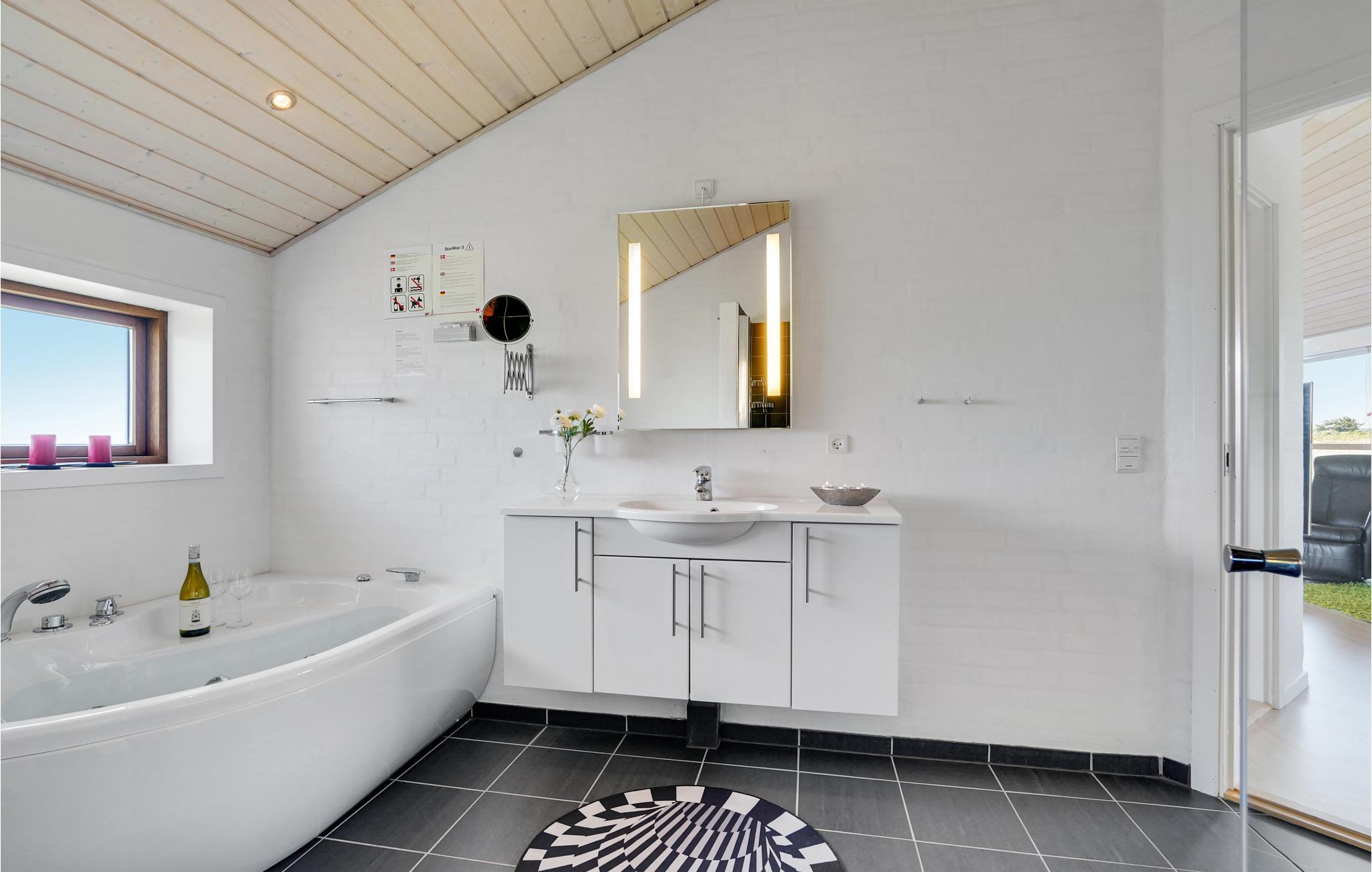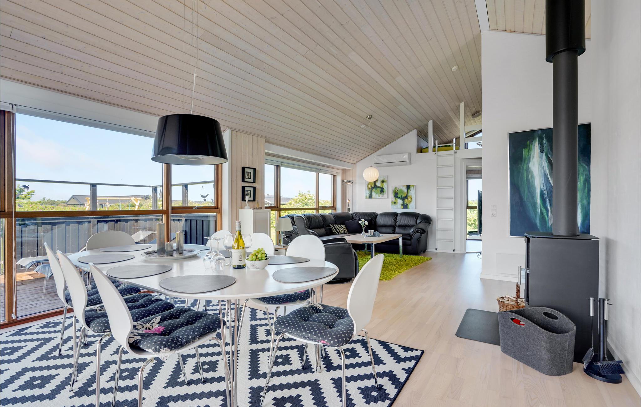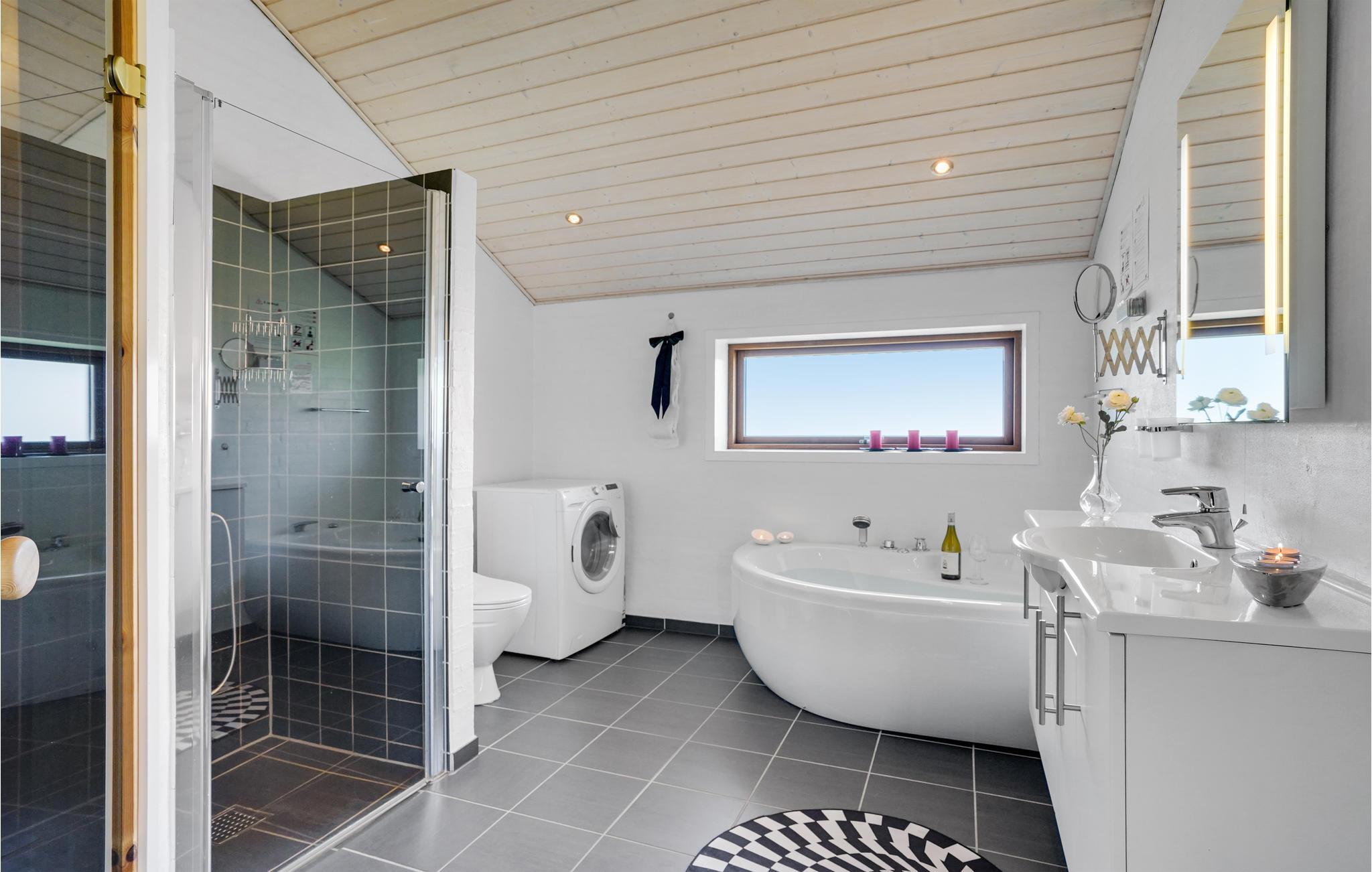 Velkommen til dette indbydende sommerhus, der kan rumme op til 6 personer med 3 soveværelser og 2 badeværelser. Det byder på alle moderne bekvemmeligheder, og især den rummelige opholdsstue er designet, så I kan tilbringe dejlige timer sammen her. Sæt jer godt til rette i sofaerne, lyt til den knitrende ild i pejsen og nyd udsigten fra de store vinduer. Der er et spabad til 2 personer, hvor I kan slappe af og komme helt ned i gear.