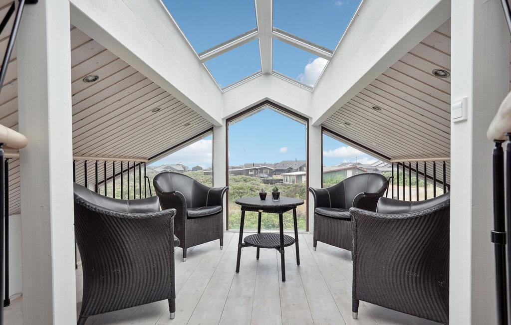 Glæd jer til en fantastisk ferie i dette lyse og indbydende sommerhus. De store vinduespartier sørger for smukt naturligt lysindfald, og lader jer samtidig kigge ud på den smukke natur, der omgiver huset. Fra stuen går en vindeltrappe op til ekstra opholdsstue på "førstesalen" hvor man kan sidde og nye den smukke havudsigt og solnedgangen over Vesterhavet. Efter en aktiv dag på stranden, kan I se frem til at slappe af i spabadet og komme helt ned i gear. Rundt om huset er der fine terrasser hvor udelivet kan nydes hele dagen. Huset er en perle, der henvender sig til den kræsne kunde, der værdsætter lækker indretning og god kvalitet.