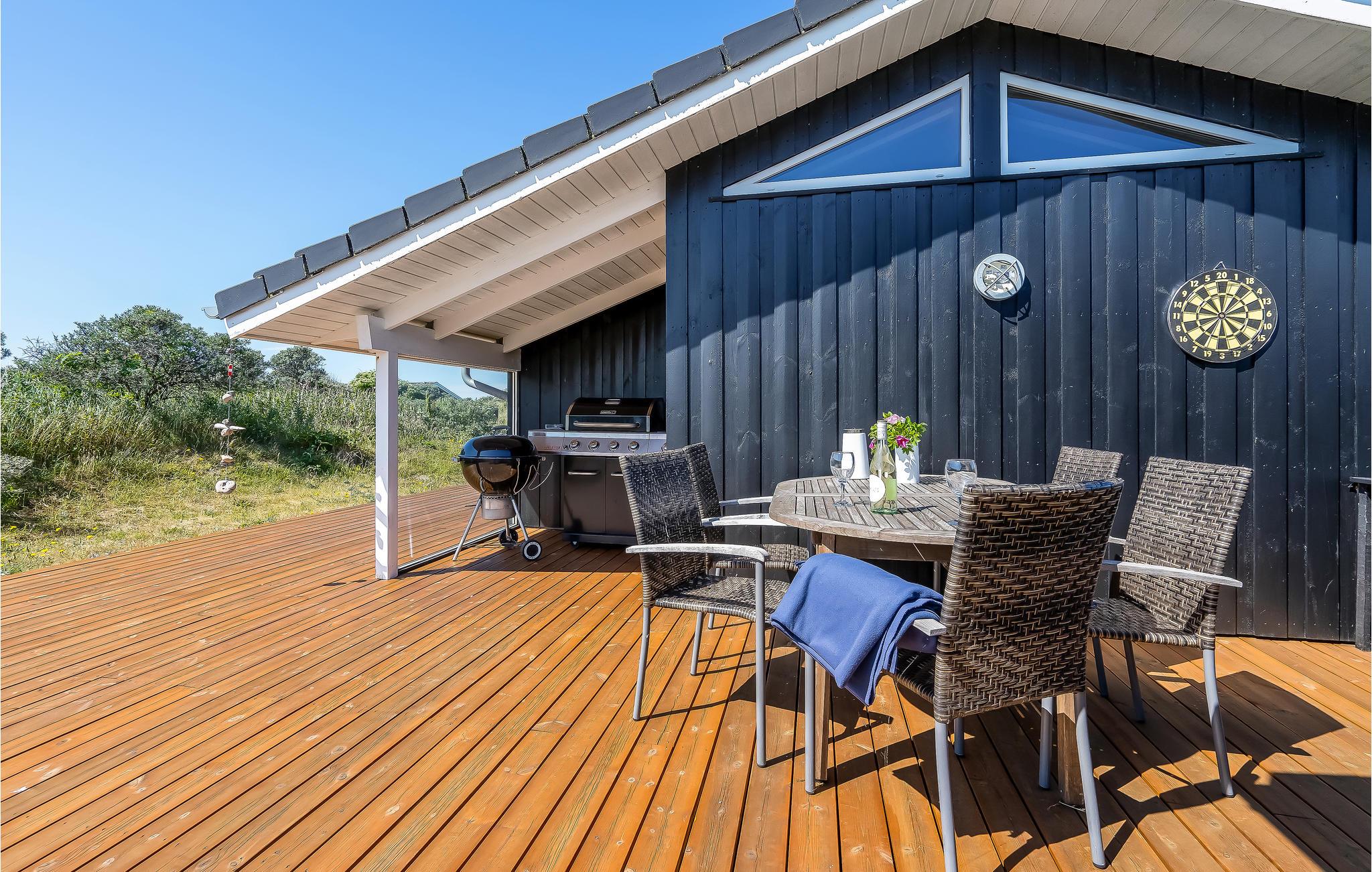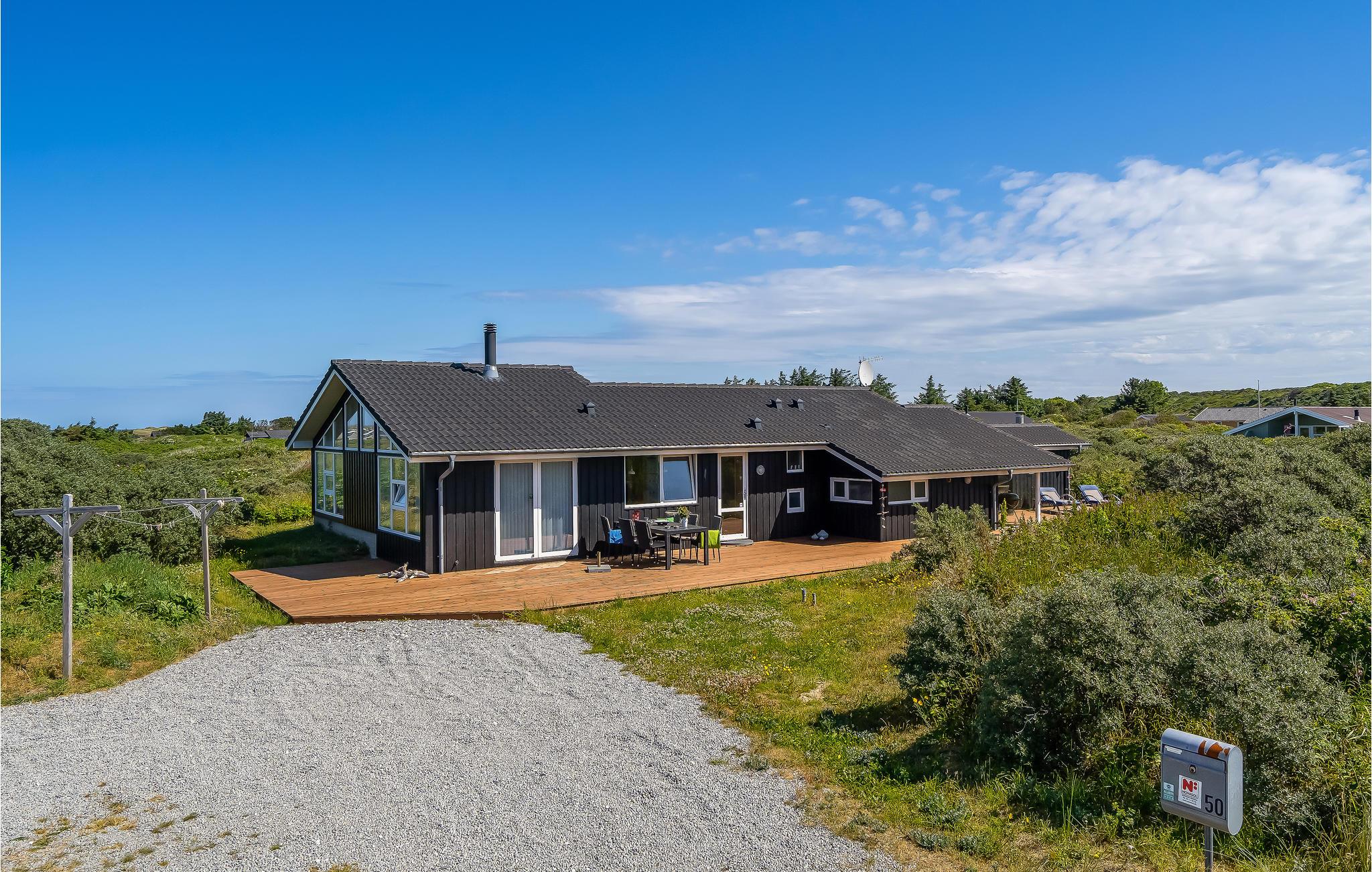 I det pragtfulde Nørlev med den specielle fauna og det kuperede terræn, ligger dette sommerhus få minutters gang fra det skønne Vesterhav. Huset ligger for enden af vejen, så der er ingen forbigående trafik, og ingen tætte naboer, så det ligger pænt ugenert. Huset er opført i gode materialer og stilsikkert. Huset er lækkert indrettet, og har store panoramavinduer i bl.a. den hævede opholdstue, hvorfra I har en flot udsigt. Der er en særskilt spiseafdeling i åben forbindelse med det veludstyrede køkken. Der er store solterrasser mod øst, syd og vest. En virkelig perle for de gæster som søger luksus i ferien. Huset ligger ikke langt fra Skallerup Seaside Resort.