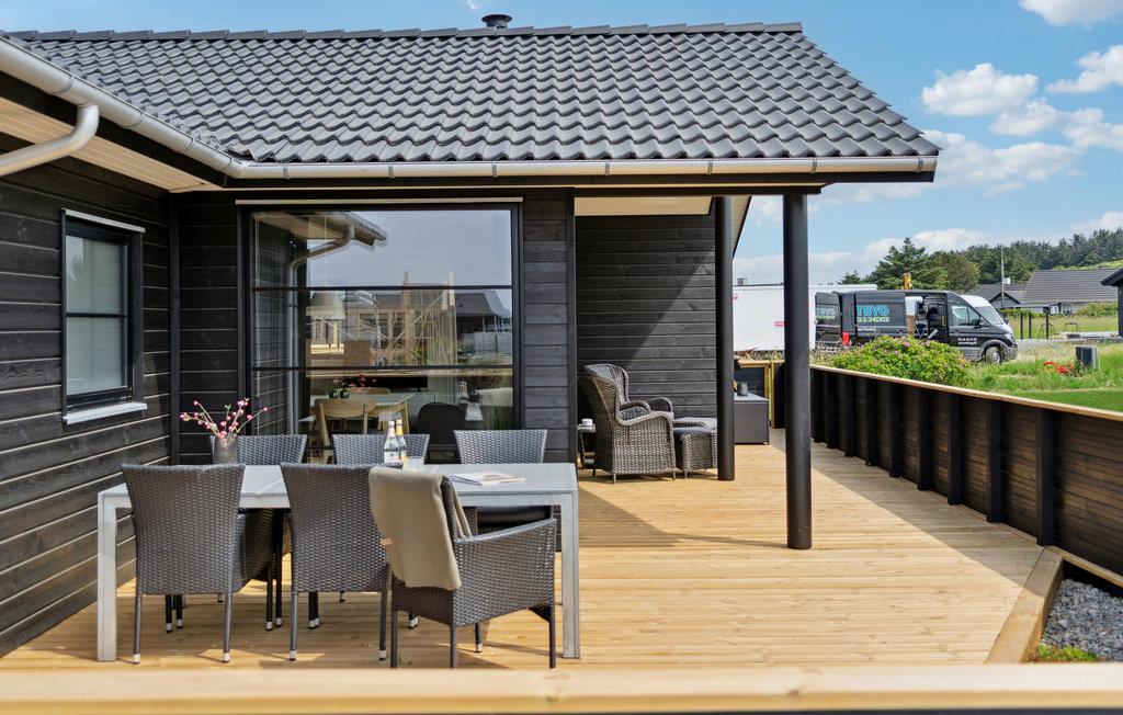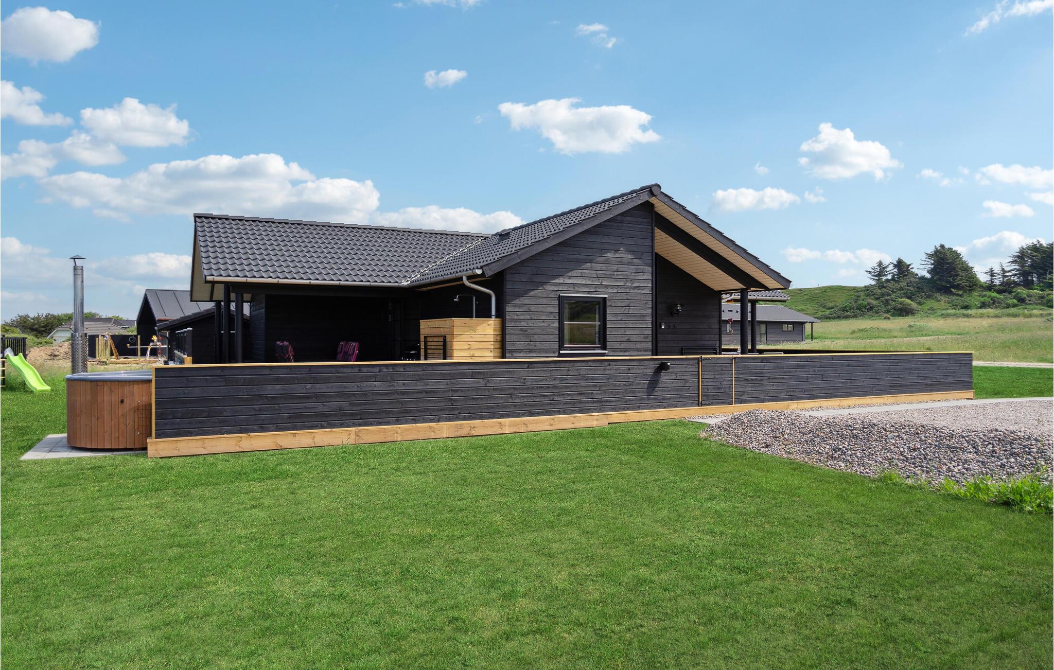 Moderne sommerhus med udendørs wellness nær Vesterhavet og smukke naturomgivelser.