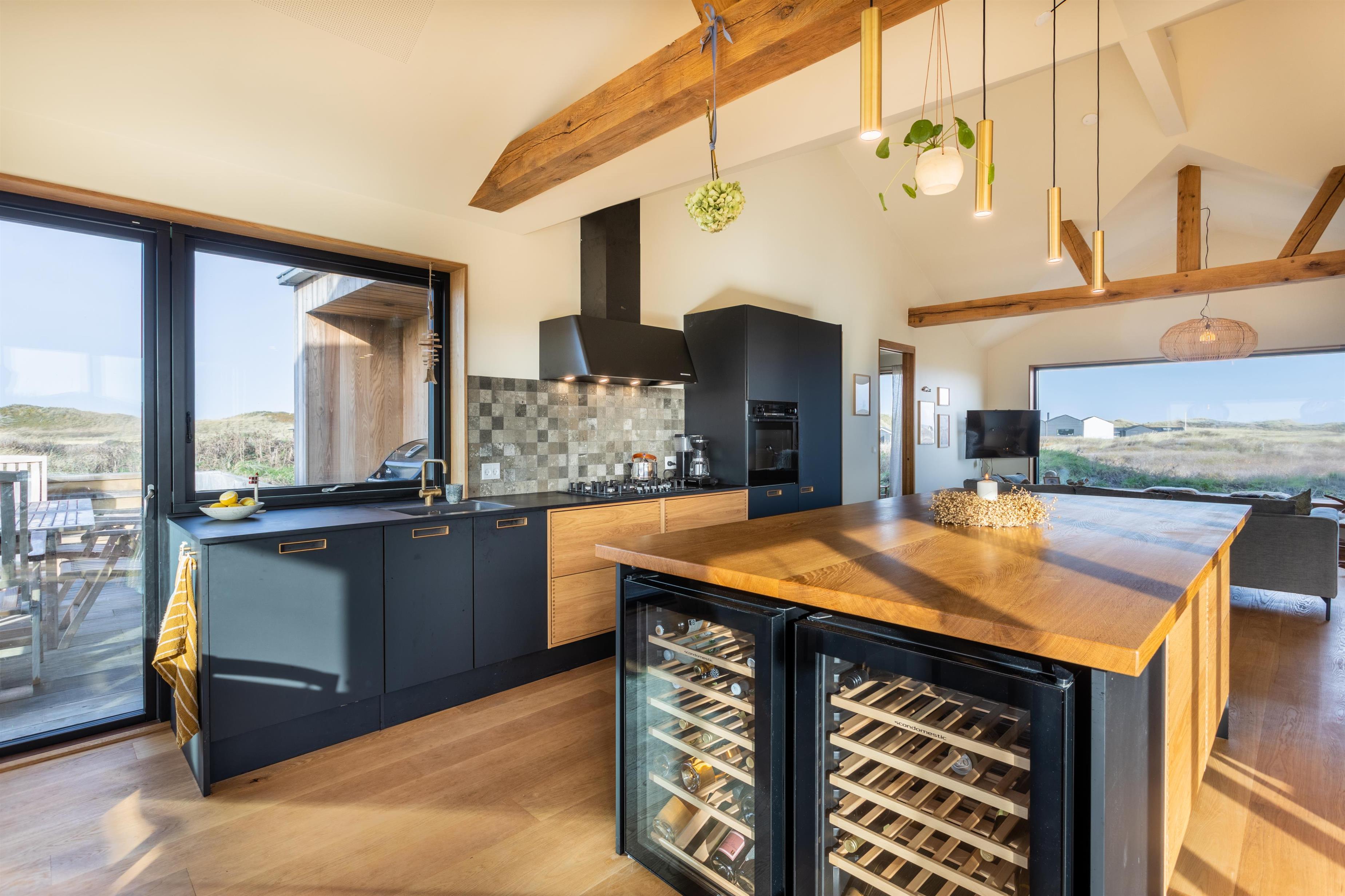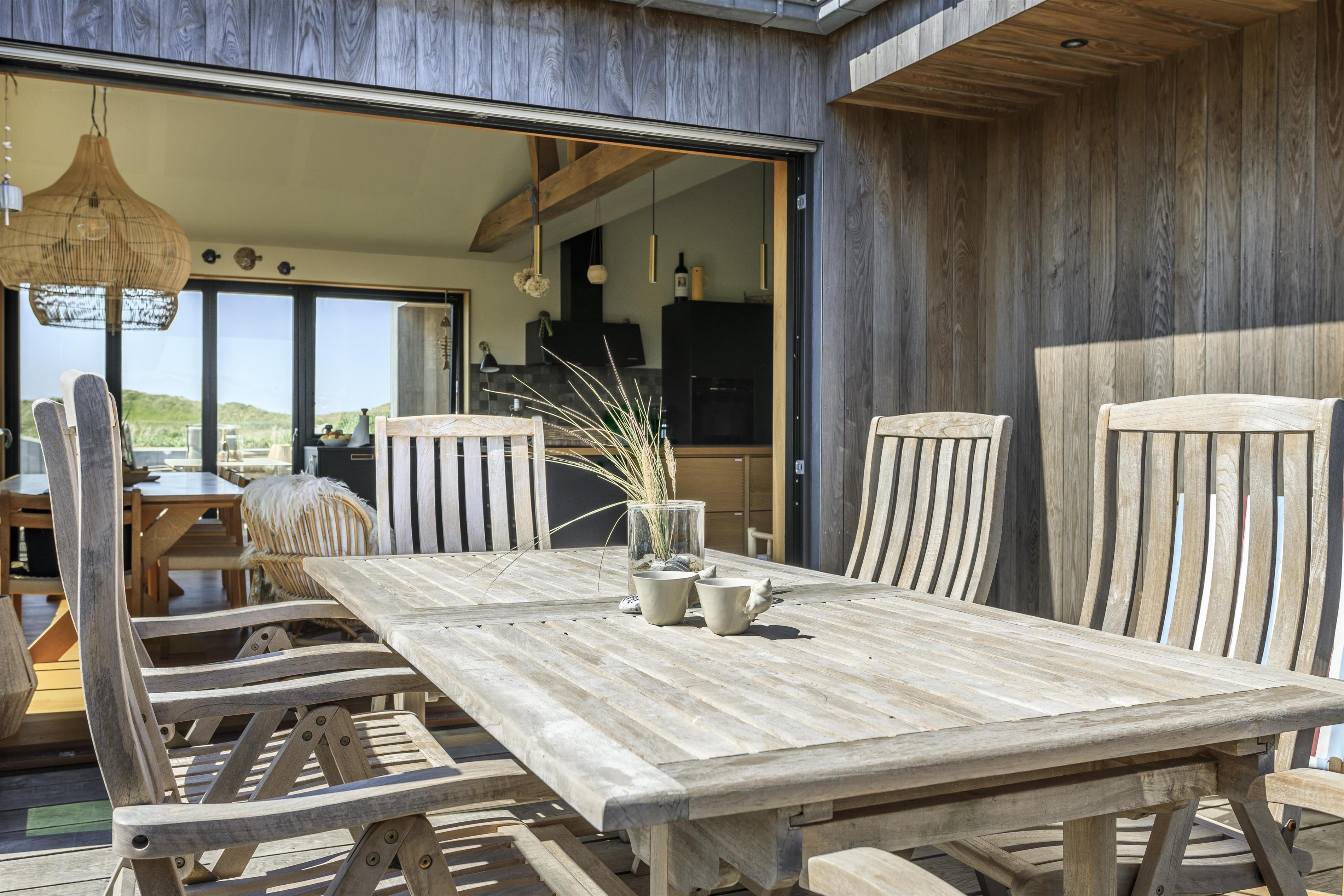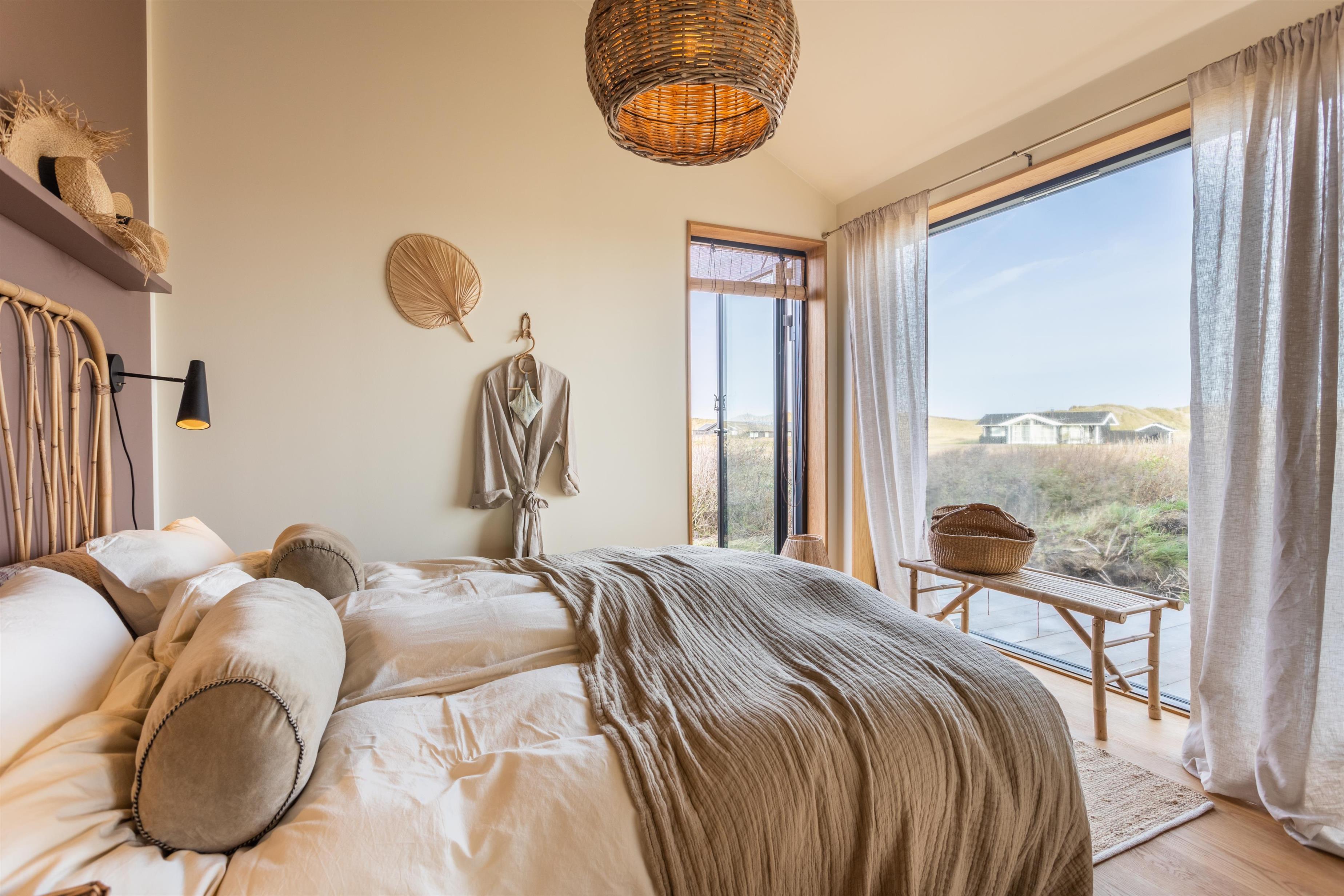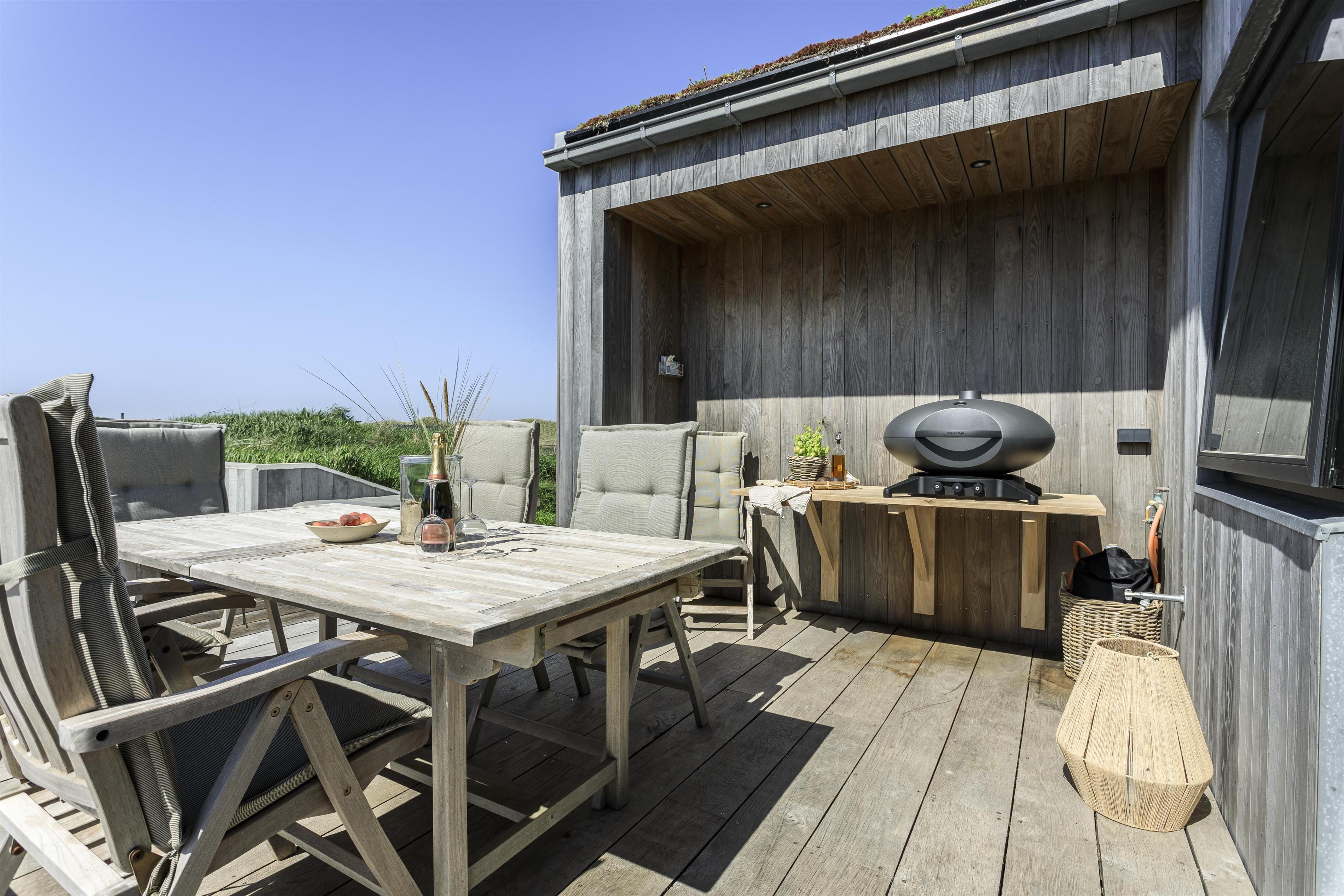 Feriehuset er placeret midt i det skønne klitlandskab, hvilket giver en fantastisk udsigt og ro. Huset byder på to gode træterrasser, så I kan få mest muligt ud af solen uanset tid på dagen. Start dagen med en tur under udebruseren, som også er praktisk efter en dag ved stranden, eller nyd en hyggelig stund i den store udespa, hvor du samtidig kan nyde den friske luft og udsigten.
