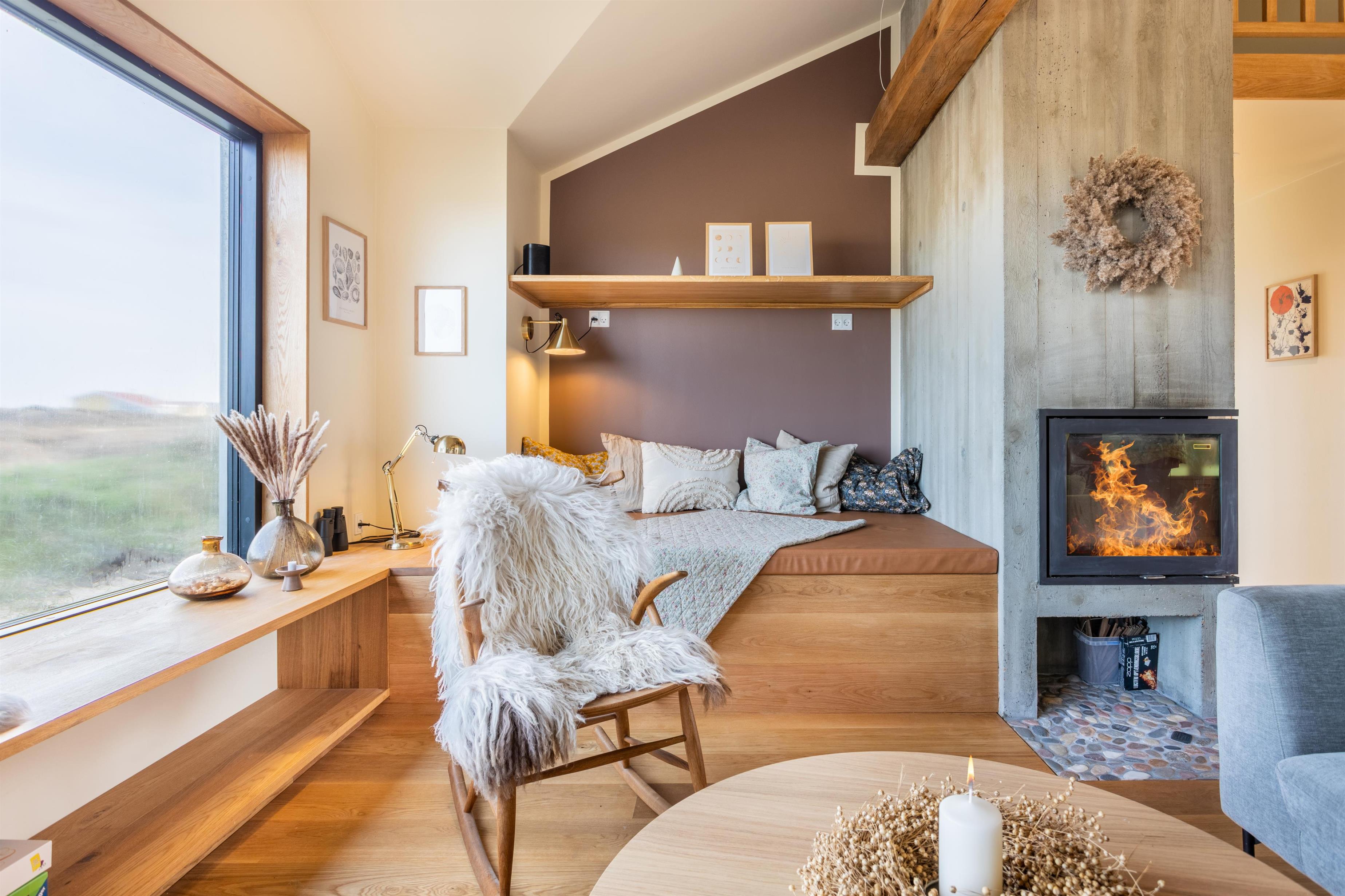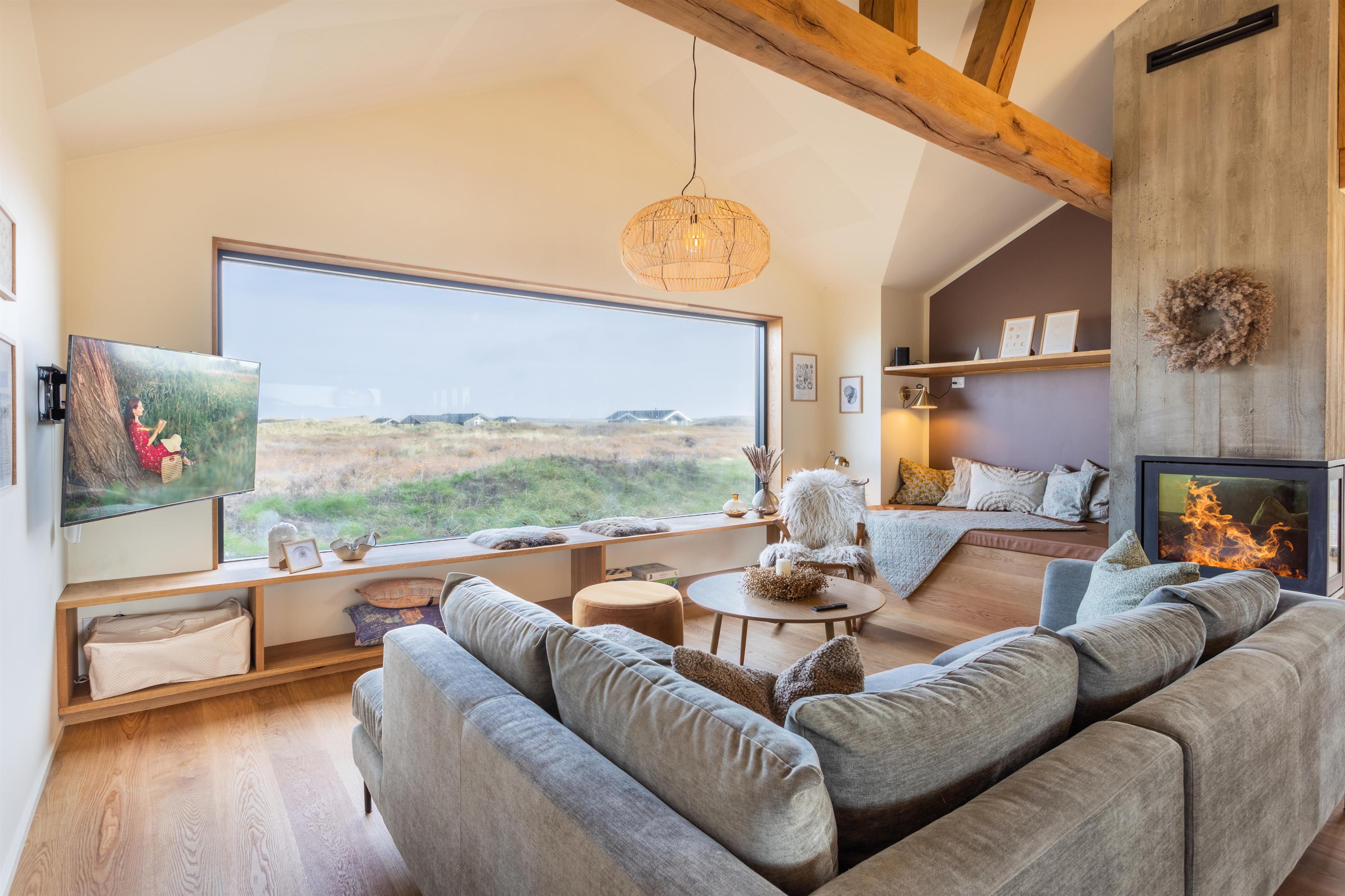 Uanset årstiden er Strandly et ideelt feriehus. Om sommeren kan I nyde de solrige dage og lange aftenener på terrassen, eller I kan slentre den korte tur ned til stranden for en dukkert. Planlægger I ferie i vinterhalvåret, kan I se frem til at tænde op i brændeovnen efter en god lang gåtur ved vesterhavet. Sæt jer godt tilrette i vinduet, og se vinden suse gennem marehalmen, mens brændeovnen knitrer i baggrunden.