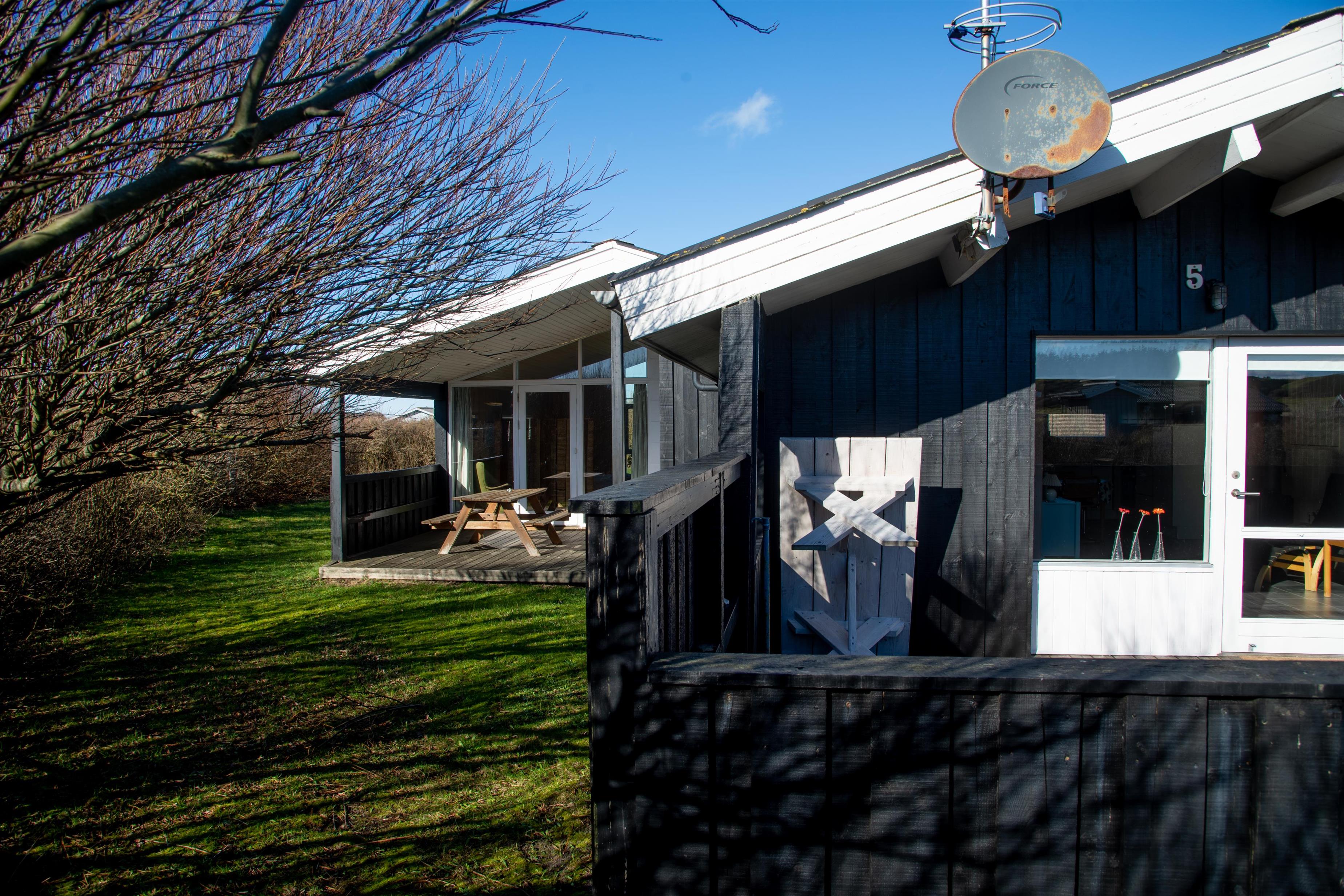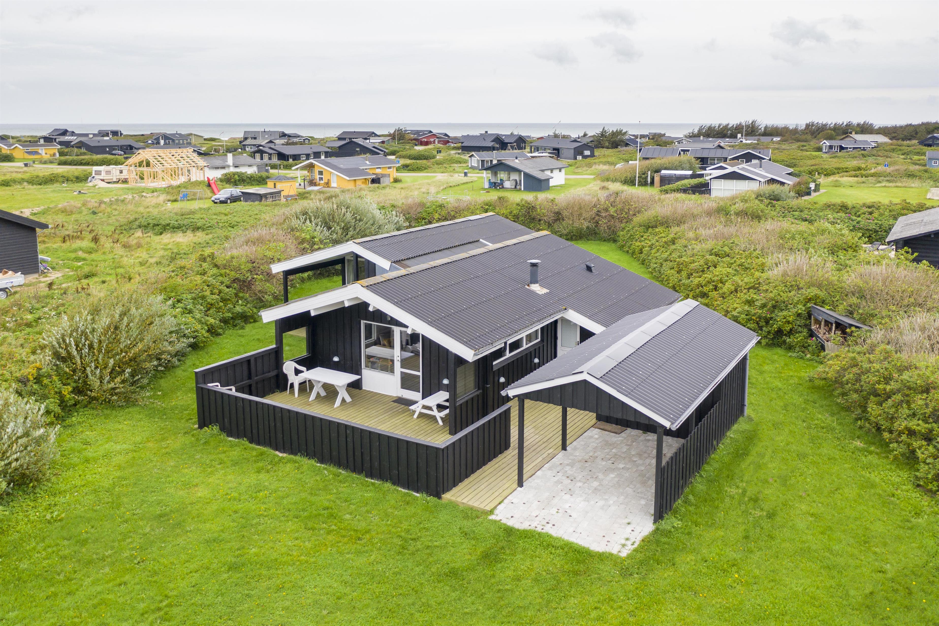 Sommerhuset har flere hyggelige terrasser, der inviterer til afslapning og samvær. Den ene terrasse er delvist overdækket, mens den anden er helt overdækket – perfekt til både solrige dage og hyggelige aftener i læ for vejret. Her kan I i ro og mag nyde morgenkaffen eller feriens måltider med udsigten til de flotte indlandsklitter. Haven og terrasserne skaber en privat og rolig atmosfære, hvor I kan nyde ferielivet i fulde drag.