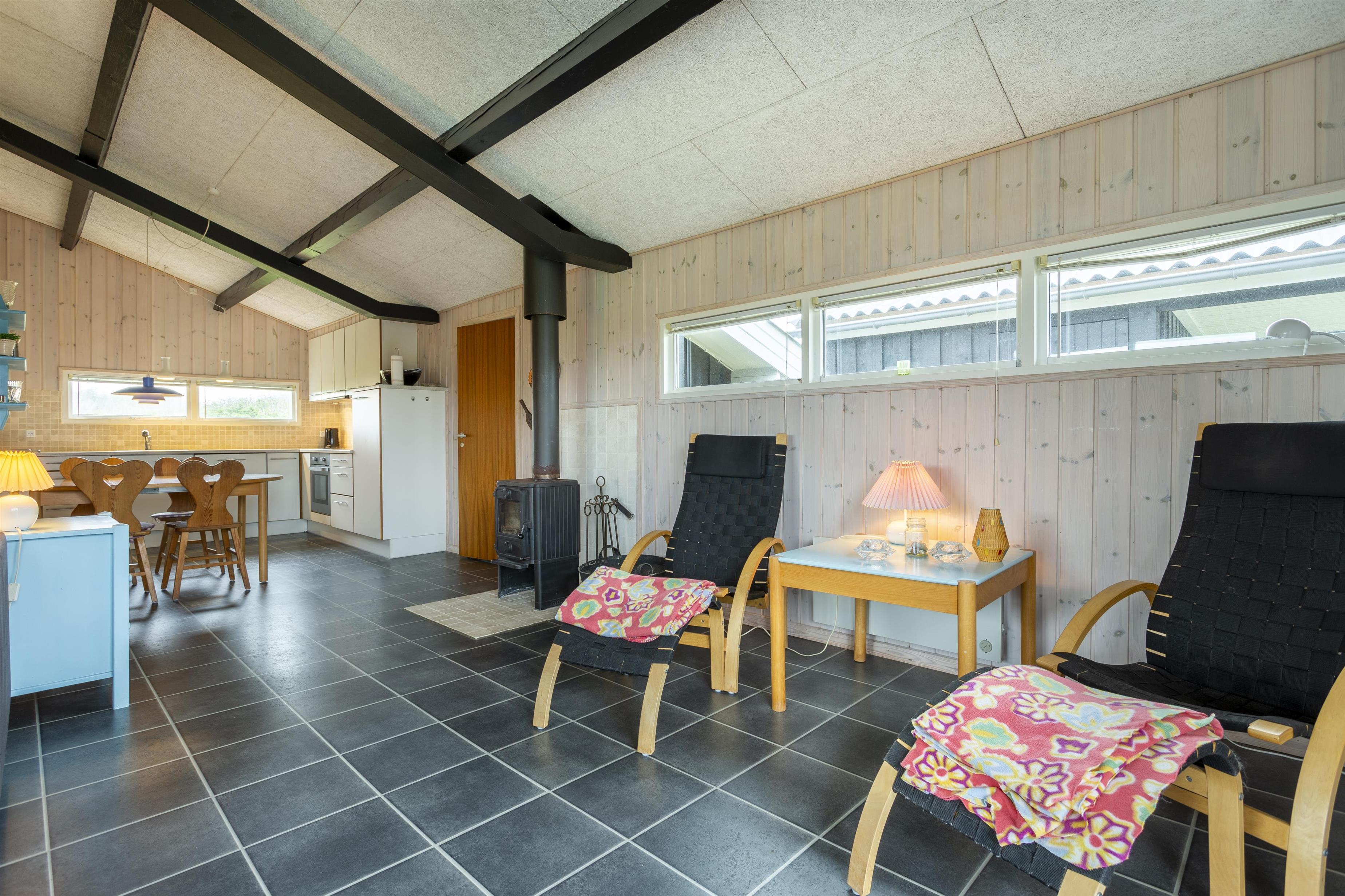 Det hyggelige og praktiske feriehus er perfekt til familien, der ønsker at tilbringe tid sammen på ferien. Køkkenet ligger i åben forbindelse med den hyggelige stue, hvor man efter en lang gåtur på stranden, kan varme sig ved ilden fra brændeovnen. Stuen er hjemmets hjerte, hvor I kan nyde tid med hinanden og slappe af i dejlige omgivelser. Huset er indrettet med tre rummelige værelser, der giver komfort og plads til hele familien. Derudover er der et fint badeværelse med bruseniche. Her kan I skabe de perfekte rammer for hyggelige feriestunder.