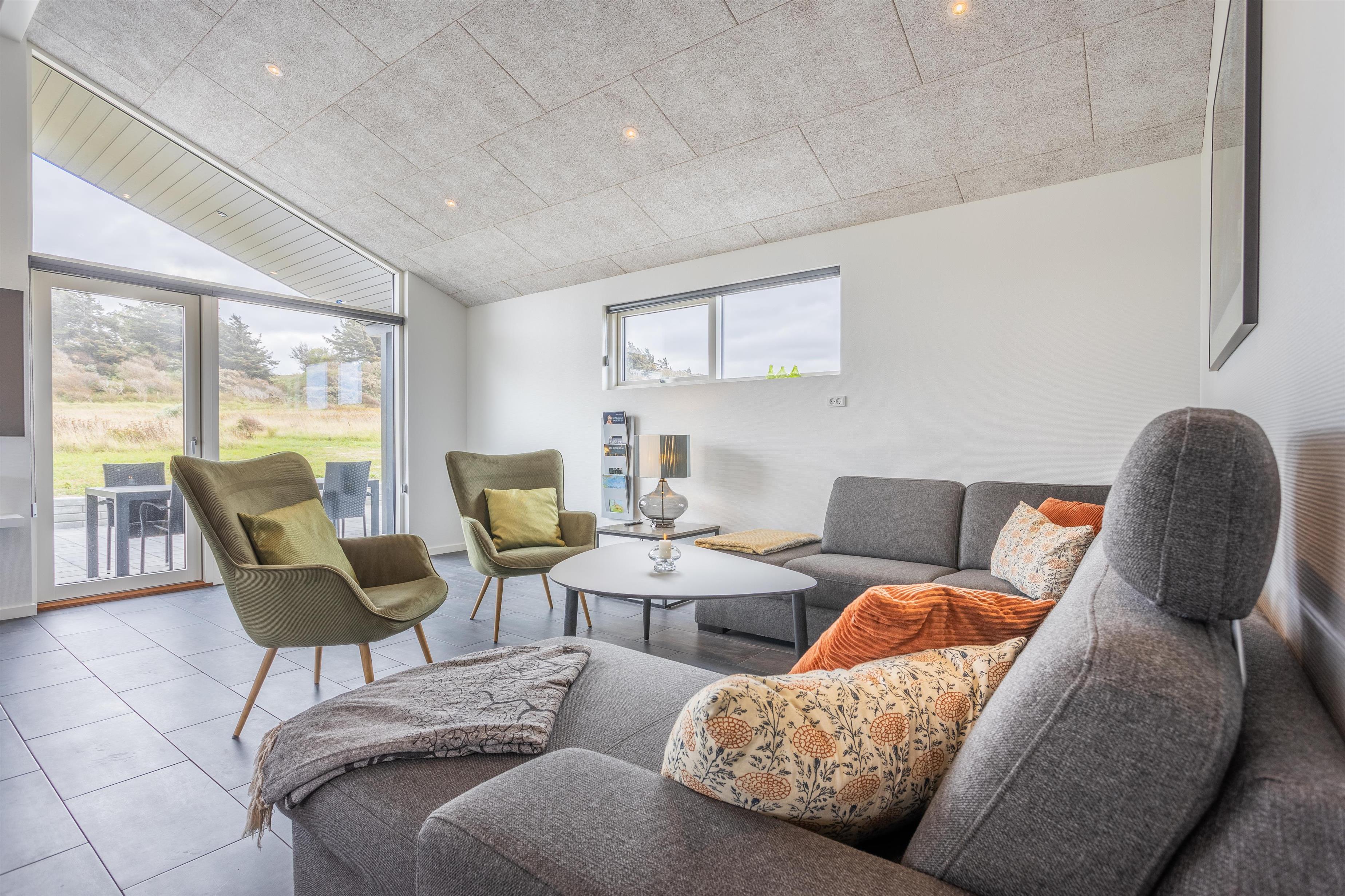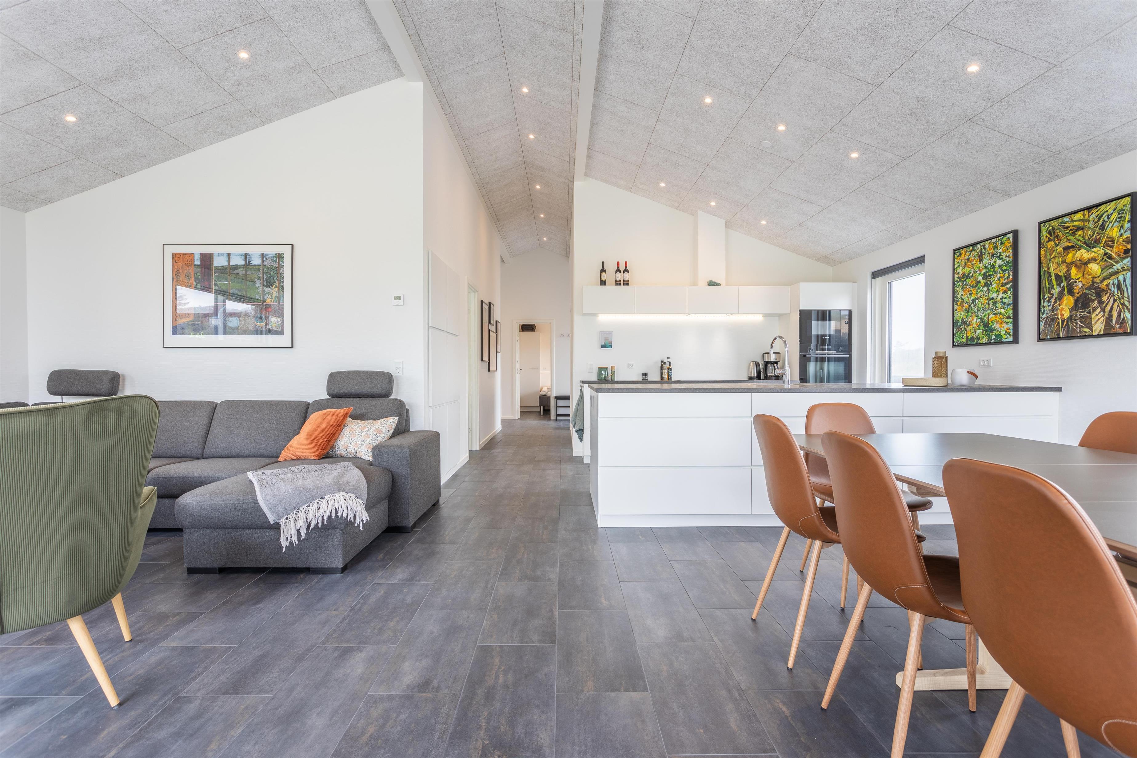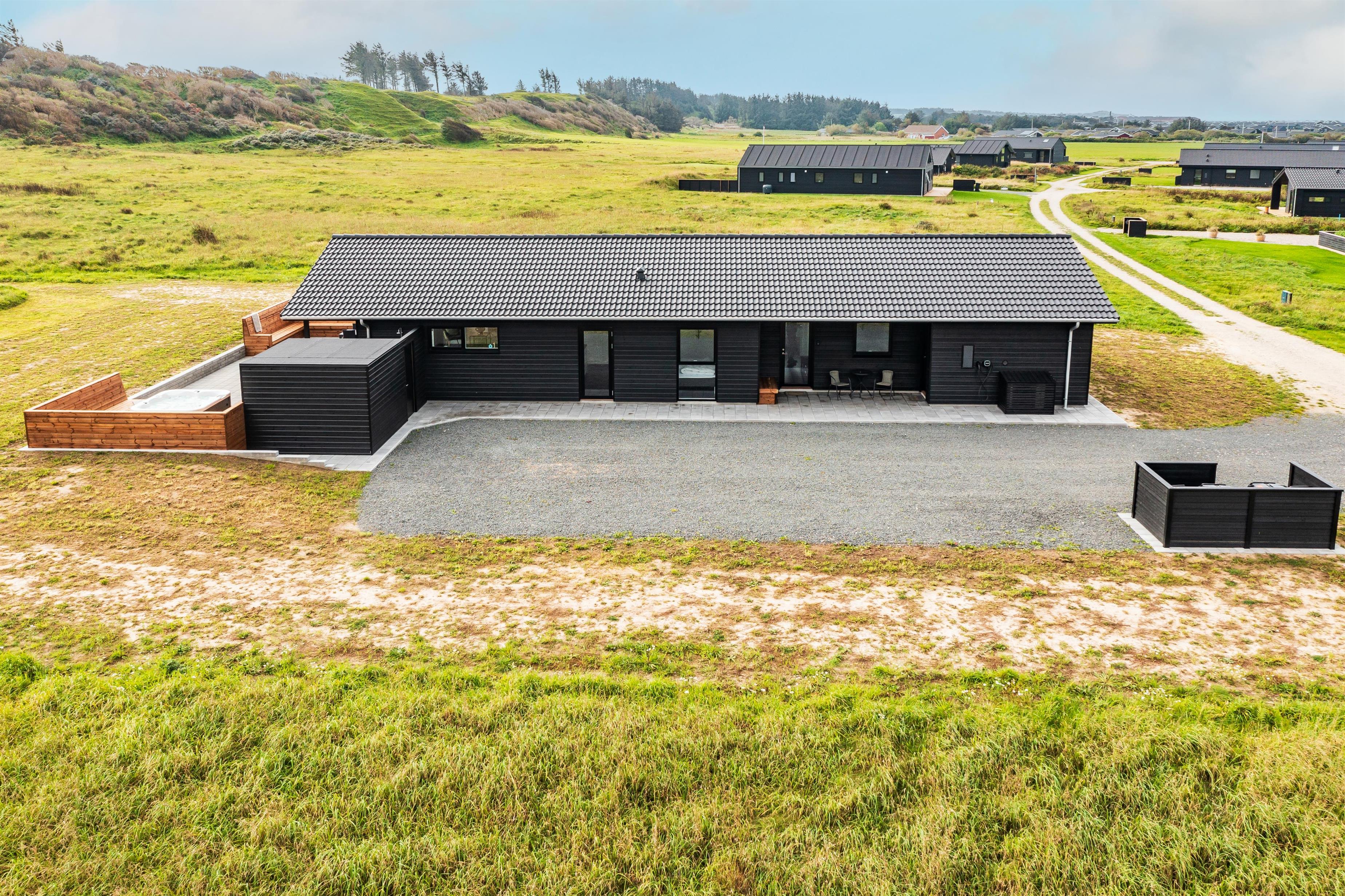 Dette helt nye feriehus er smagfuldt indrettet og har en skøn beliggenhed op af det kuperede og ugenerede landskab i Nørlev. Fra huset er der kun en kort gåtur til den skønne sandstrand. Huset er bygget i skønne materialer, og der er tænkt over detaljerne for at give jer den bedste ferieoplevelse. Tag et koldt bad under den udendørs bruser, hop i den varme udendørs spa og slut af i den dejlig varme udendørs sauna - dette er ren afslapning for krop og sjæl. Nyd ferien i dette store moderne feriehus, som hører til kategorien af huse i topkvalitet. I dette hus er alt opført i de bedste materialer. Med loft til kip og de store vinduer inviteres sollyset og naturen indenfor.