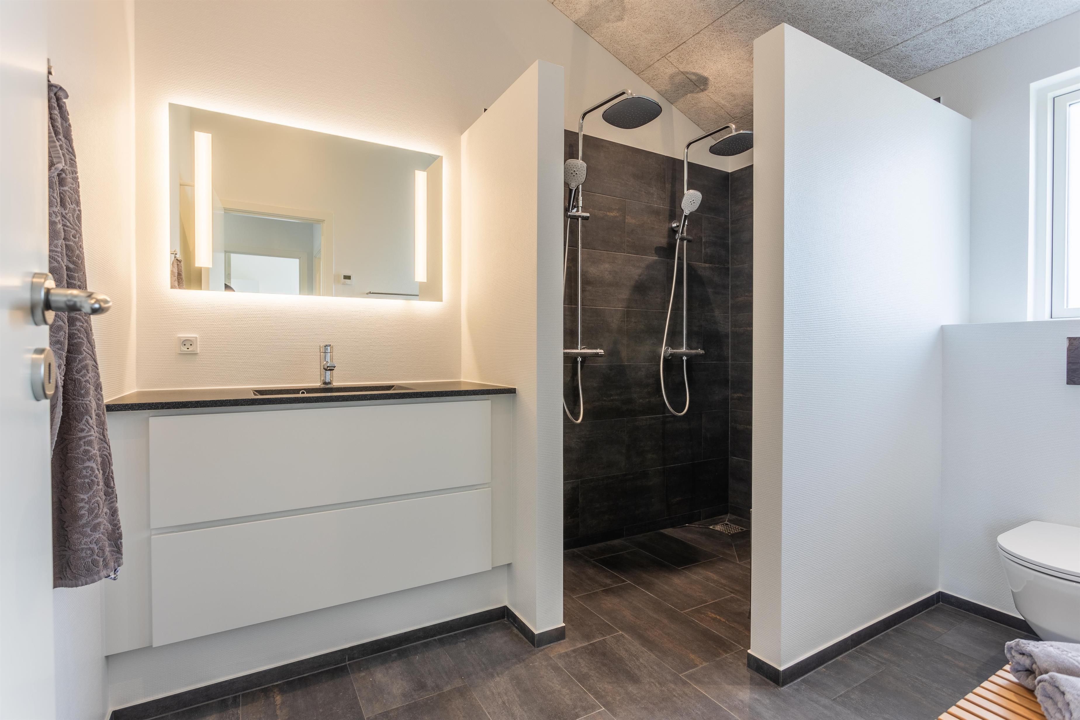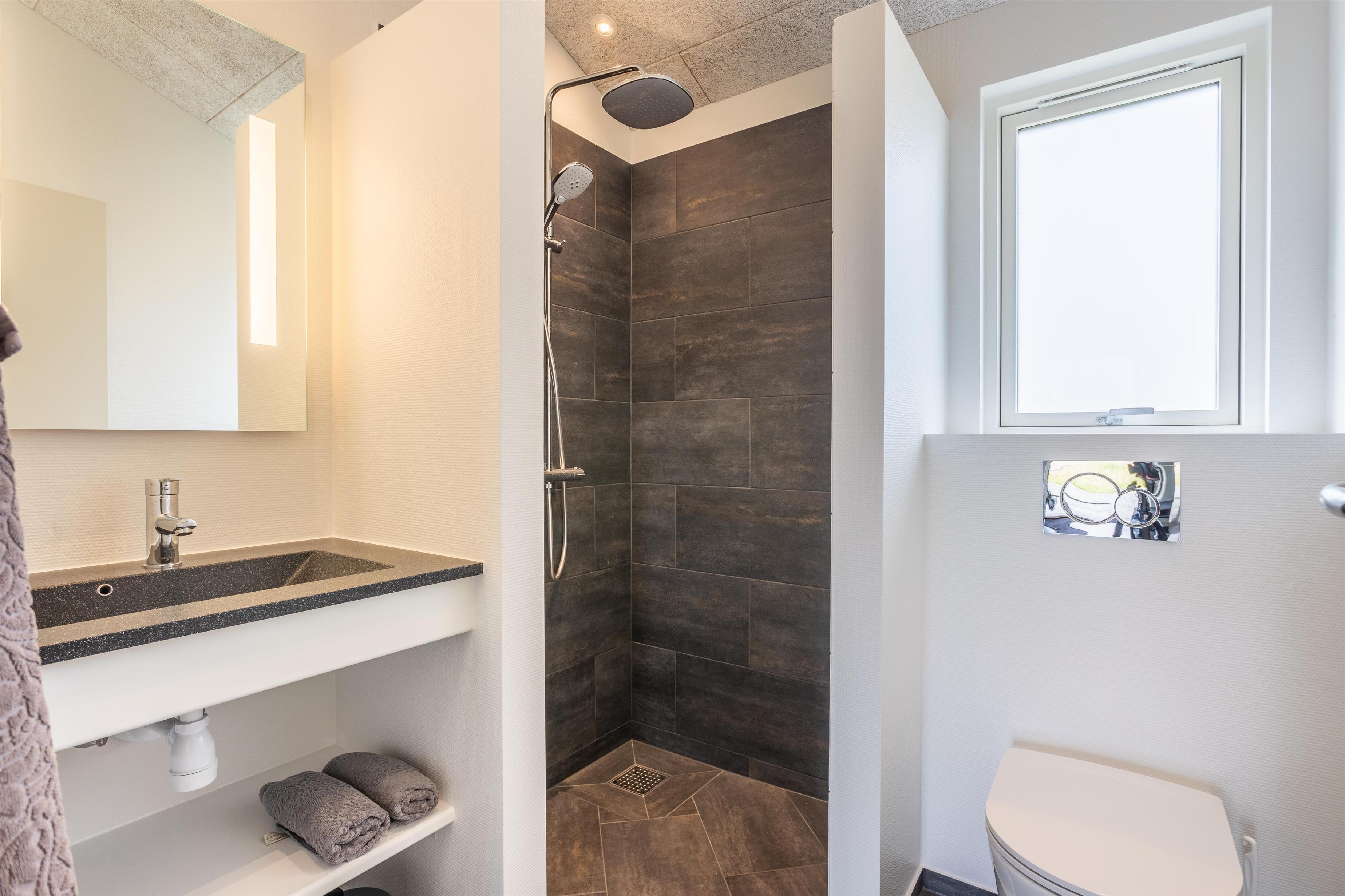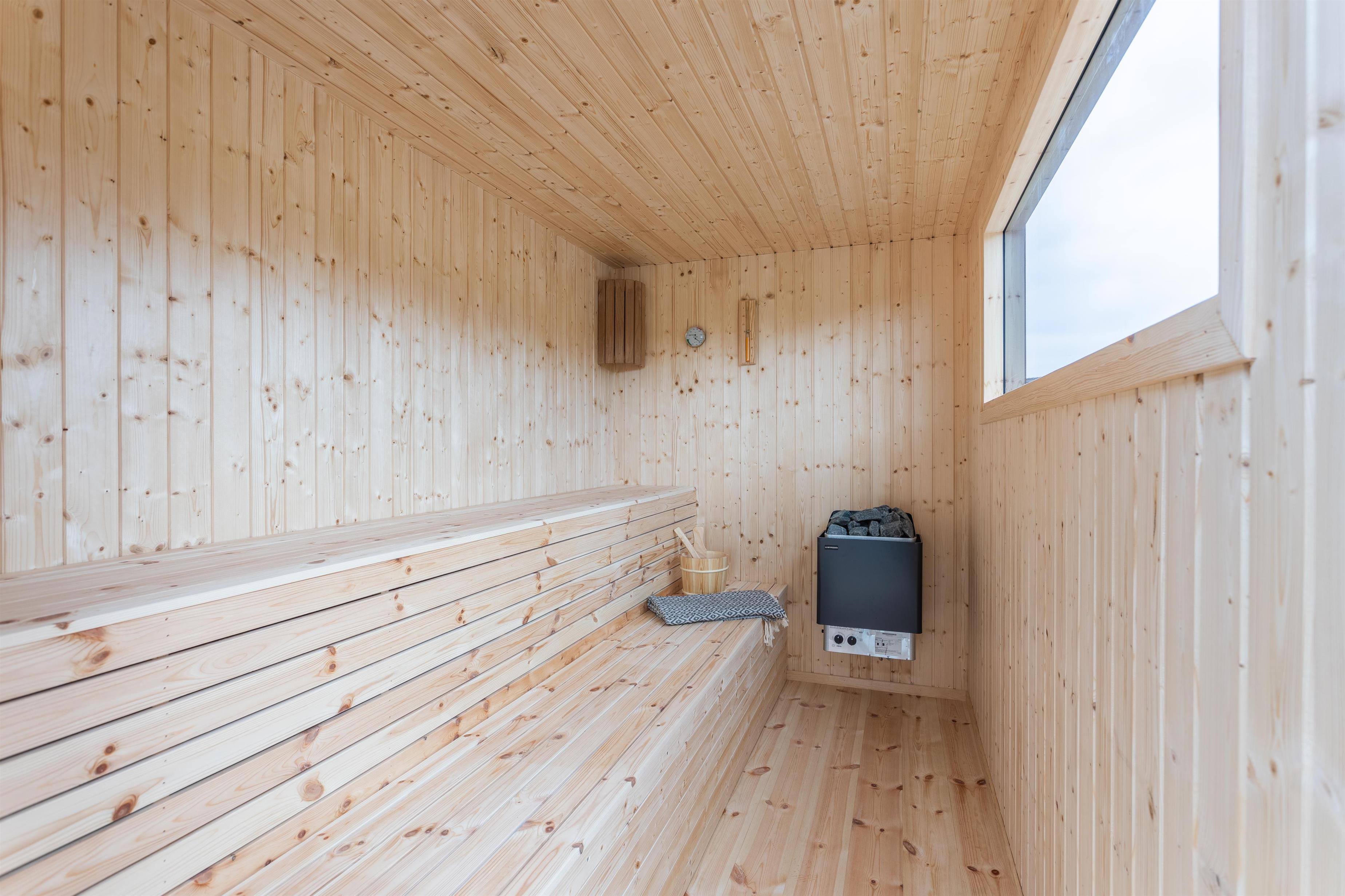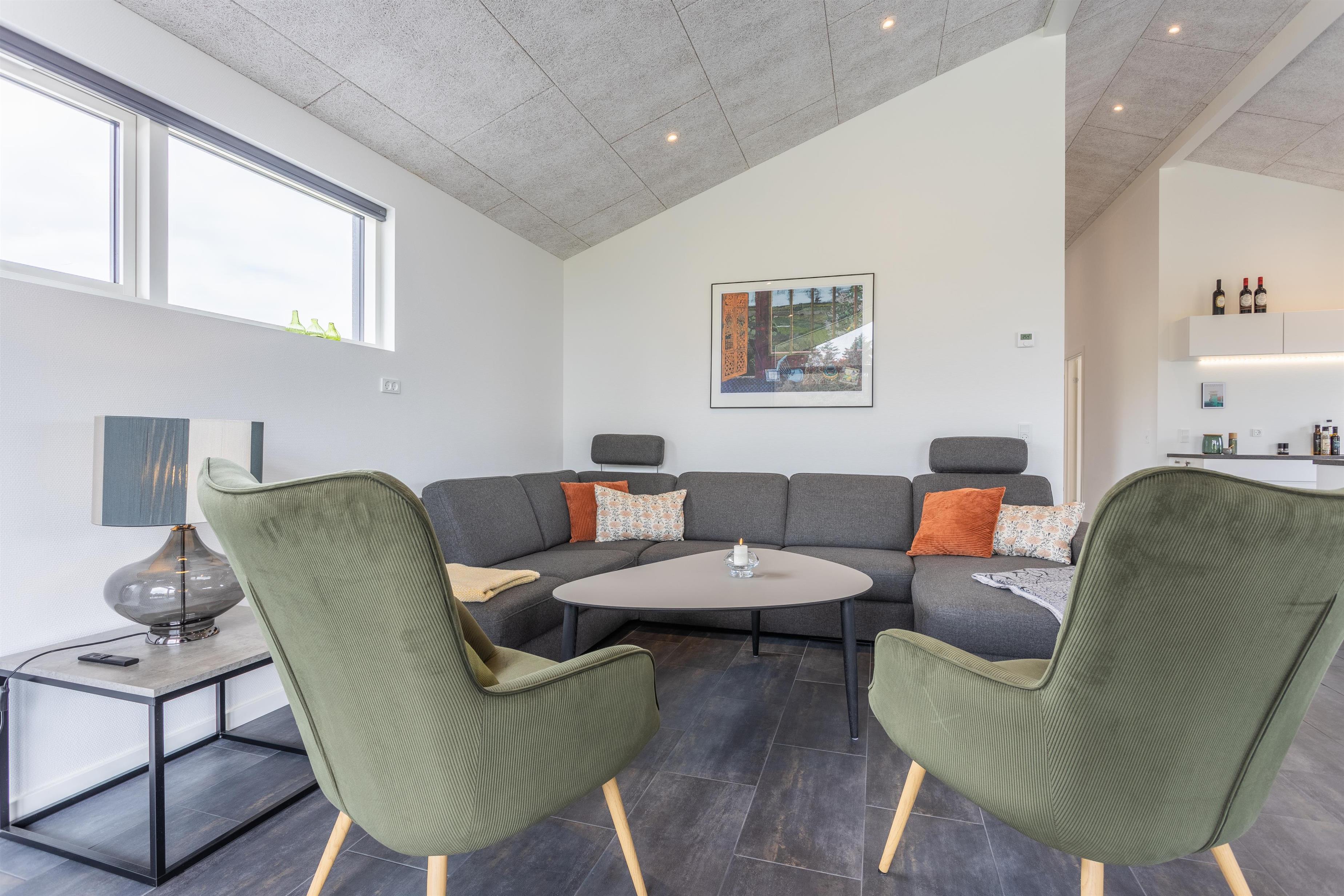 Dette helt nye feriehus er smagfuldt indrettet og har en skøn beliggenhed op af det kuperede og ugenerede landskab i Nørlev. Fra huset er der kun en kort gåtur til den skønne sandstrand. Huset er bygget i skønne materialer, og der er tænkt over detaljerne for at give jer den bedste ferieoplevelse. Tag et koldt bad under den udendørs bruser, hop i den varme udendørs spa og slut af i den dejlig varme udendørs sauna - dette er ren afslapning for krop og sjæl. Nyd ferien i dette store moderne feriehus, som hører til kategorien af huse i topkvalitet. I dette hus er alt opført i de bedste materialer. Med loft til kip og de store vinduer inviteres sollyset og naturen indenfor.