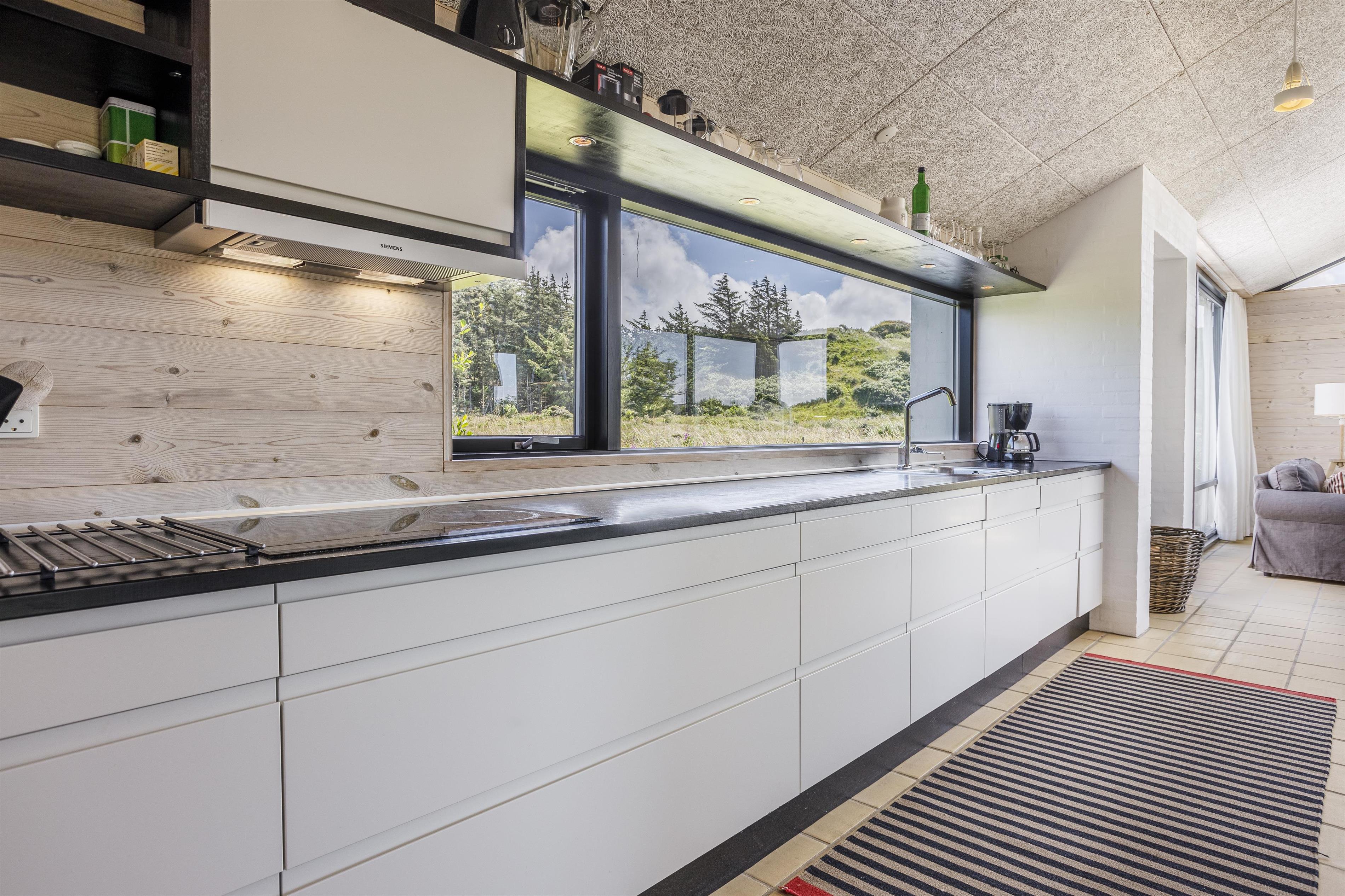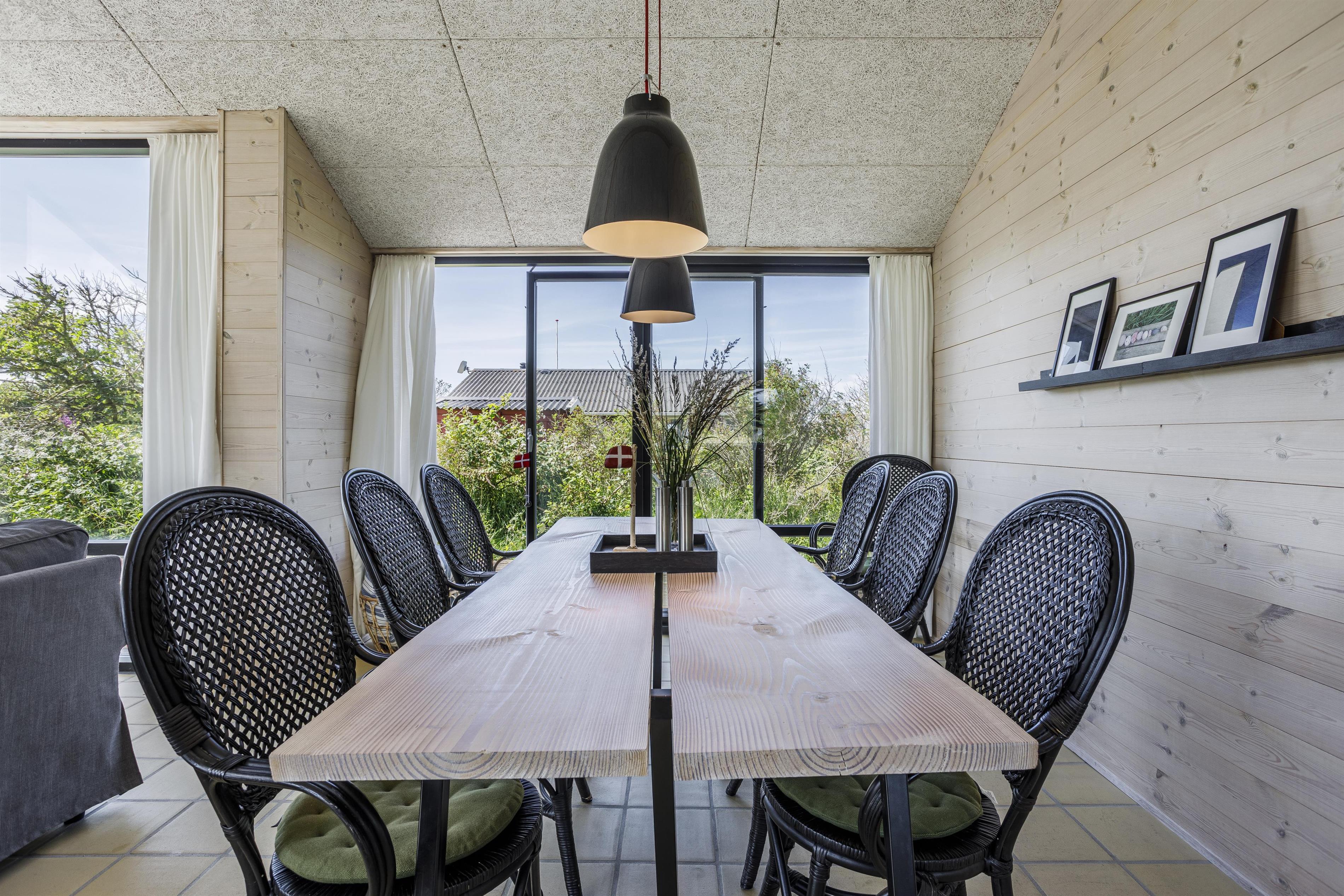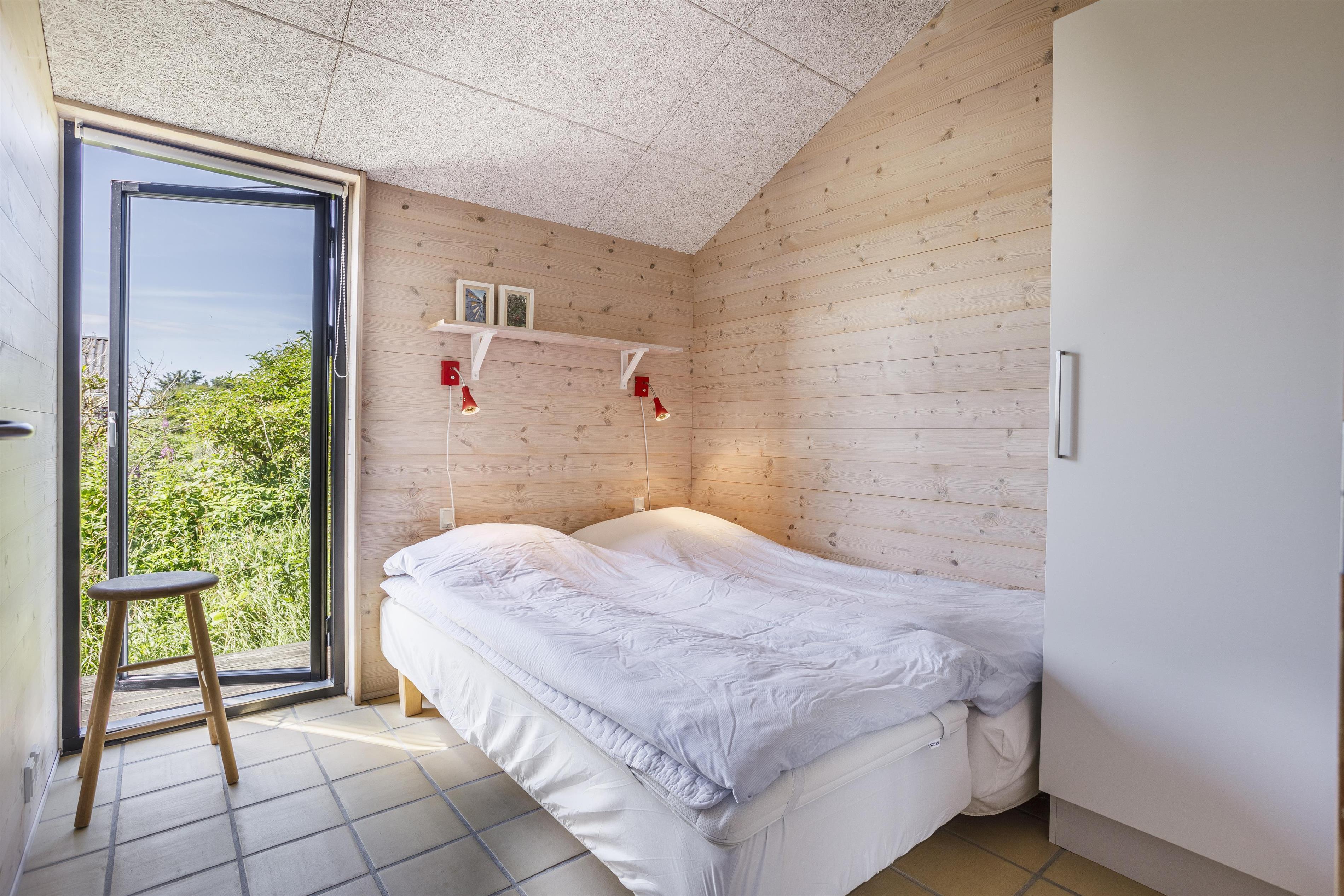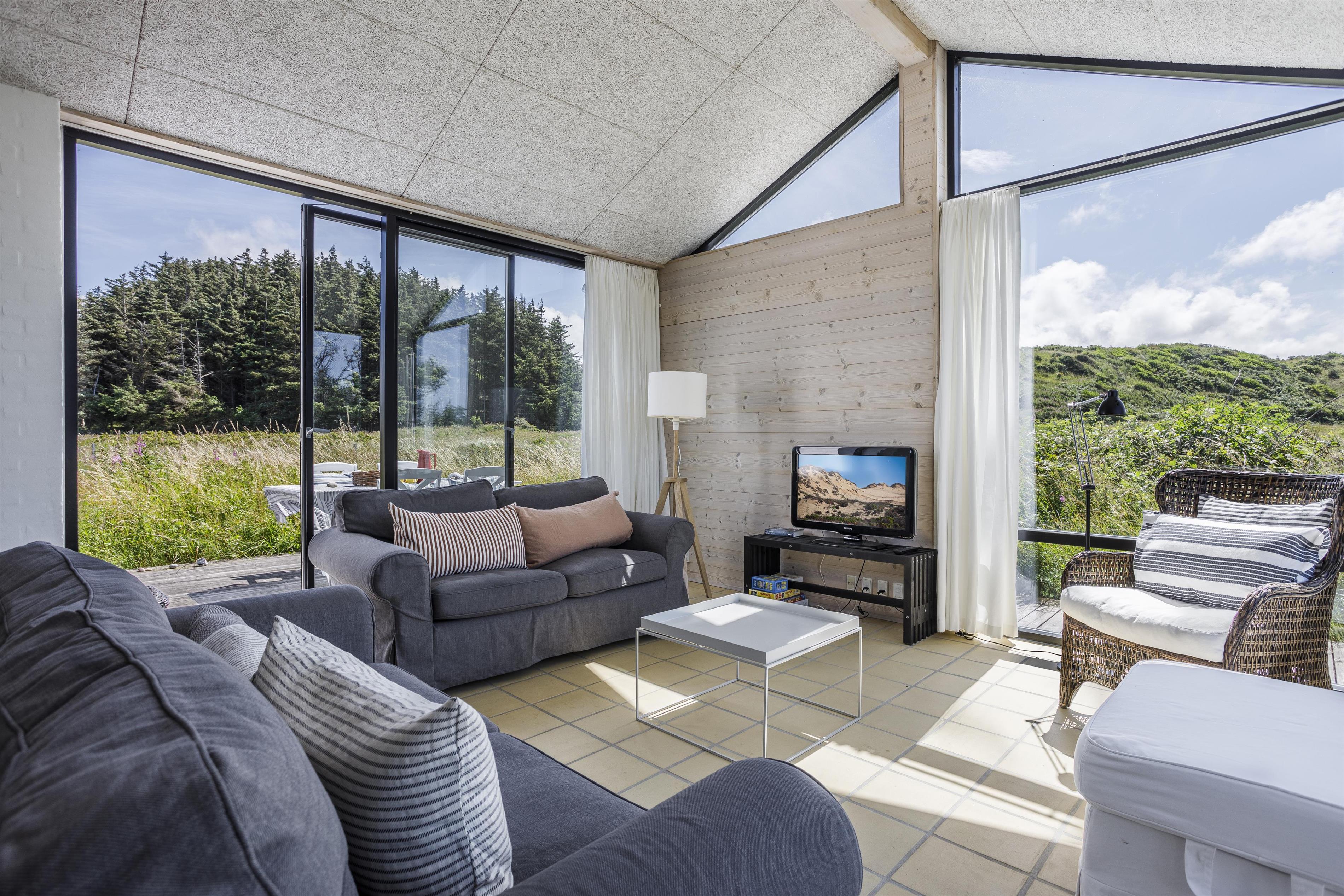 Sommerhuset er arkitekttegnet og med en god indretning er pladsen derfor maksimalt udnyttet, så der er plads til hele familien. Huset har plads til 6 personer og er indrettet med et moderne køkken i direkte forlængelse af alrummet med spiseplads og en dejlig stue, hvor I kan finde ro og slappe af efter en dag fyldt med oplevelser. Store vinduespartier mod syd, øst og vest sikrer et fantastisk lysindfald og inviterer naturen indenfor, hvilket skaber en lys og indbydende atmosfære i hele huset. Huset består desuden af 3 gode soveværelser med udgang til terrassen samt et rummeligt badeværelse med bruser. Huset er indrettet med alle de bekvemmeligheder, du har brug for, herunder et fuldt udstyret køkken, komfortable møbler og moderne faciliteter, som gør dit ophold både bekvemt og hyggeligt.