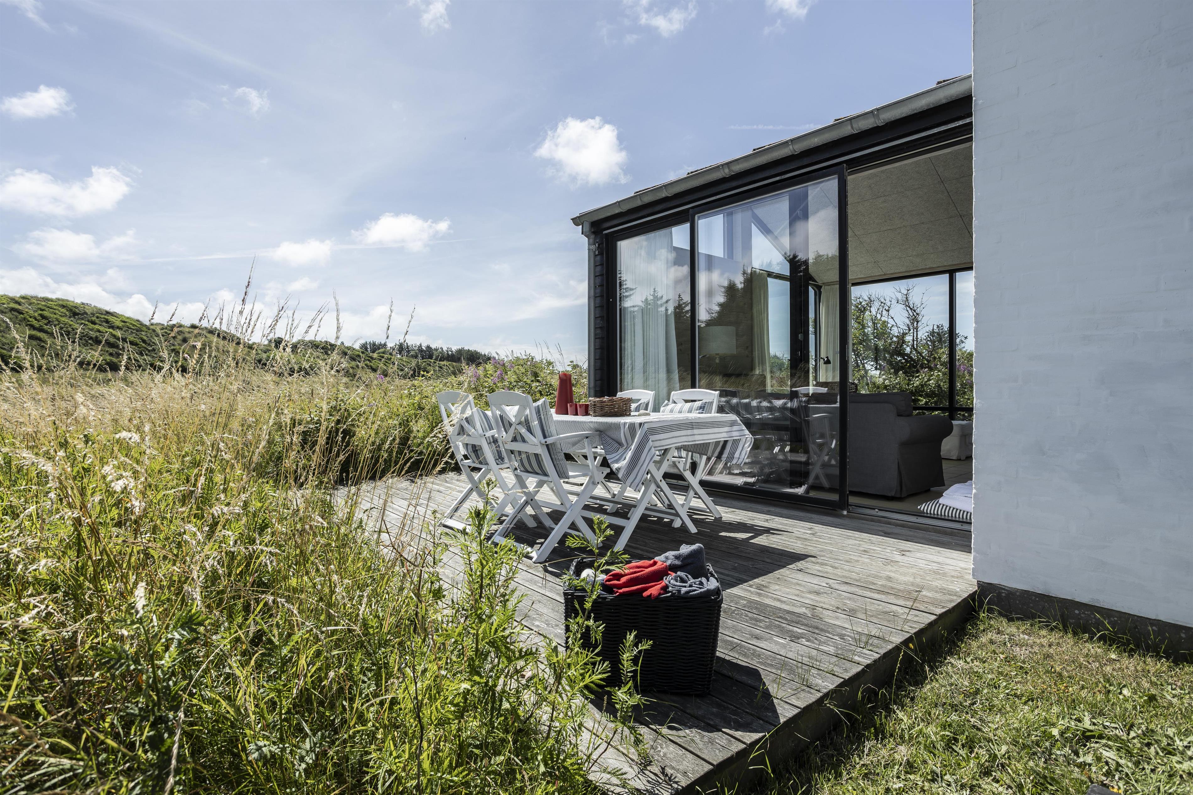 Nyd morgenkaffen på den dejlige træterrasse, som løber næsten hele vejen rundt om huset, mens du lytter til fuglesang og mærker havbrisen. Efter en dag på stranden kan I samles til en hyggelig grillaften, hvor solen går ned i horisonten.